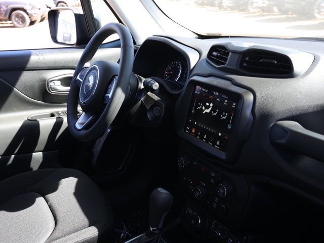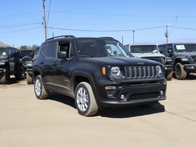 NewBlack Clearcoat 2023 Jeep Renegade Latitude 4X4 SUV 4WD 9-Speed 948TE Automatic 1.3L I4 Backup Camera, Apple Car Play/Android Auto, Automatic Climate Control, KARR Bluetooth Security System Anti-Theft Vehicle Security System & Protection Program, Global Positioning Tracking System (S.W.A.T.) Guaranteed Protection & Recovery Program, NitroFill Advantage Nitrogen Filled Tires & Protection Program, Finishing Touch Complete Synthetic Paint Sealant Application & Protection Program, Genuine Mopar Wheel Locks Anti-Theft Vehicle Wheel Protection, ParkView® / Park Assist Rear Back–Up Camera, Blind–Spot and Cross–Path Detection, SiriusXM® Satelite Radio, Power Moonroof, Bluetooth, Renegade Latitude 4X4 SUV, 4D Sport Utility, 1.3L I4, 9-Speed 948TE Automatic, 4WD, Black Clearcoat, Black w/Cloth Bucket Seats or Latitude Cloth Bucket Seats or Deluxe Cloth High-Back Bucket Seats, 17″ x 7.0″ Aluminum Wheels, 3.734 Final Drive Ratio, 4-Wheel Disc Brakes, 6 Speakers, ABS brakes, Air Conditioning, Alloy wheels, AM/FM radio: SiriusXM, Ambient LED Interior Lighting, Anti-whiplash front head restraints, Apple CarPlay/Android Auto, Auto-Dimming Rear-View Mirror, Automatic Headlamps, Automatic temperature control, Brake assist, Cloth Bucket Seats, Compass, Cornering Front Fog Lamps, Delay-off headlights, Deluxe Cloth High-Back Bucket Seats, Driver door bin, Driver vanity mirror, Dual front impact airbags, Dual front side impact airbags, Dual-Pane Panoramic Power Sunroof, Electronic Stability Control, Emergency communication system: SiriusXM Guardian, Four wheel independent suspension, Front anti-roll bar, Front Bucket Seats, Front Center Armrest, Front dual zone A/C, Front reading lights, Heated door mirrors, Heated Front Seats, Heated Steering Wheel, Illuminated entry, Keyless Entry w/Panic Alarm, Knee airbag, Latitude Cloth Bucket Seats, Leather Wrapped Shift Knob, Leather Wrapped Steering Wheel, Low tire pressure warning, MOPAR All Weather Mats, Navigation System, Normal Duty Suspension, Occupant sensing airbag, Outside temperature display, Overhead airbag, ParkView Rear Back-Up Camera, Passenger door bin, Passenger vanity mirror, Power door mirrors, Power steering, Power windows, Premium Audio, Premium Cloth Low-Back Bucket Seats, Premium-Wrapped Steering Wheel, Quick Order Package 22B, Radio data system, Radio: Uconnect 4C Nav w/8.4″ Display, Rain Sensitive Windshield Wipers, Rear anti-roll bar, Rear window defroster, Rear window wiper, Remote keyless entry, Roof rack: rails only, Security system, Speed control, Split folding rear seat, Spoiler, Steering wheel mounted audio controls, Sun & Fun Group, Tachometer, Telescoping steering wheel, Tilt steering wheel, Traction control, Trip computer, Variably intermittent wipers, Voltmeter.23/29 City/Highway MPG