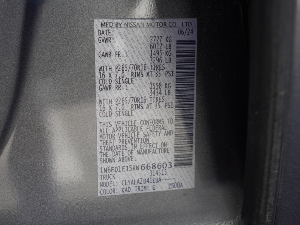 New2024 Gun Metallic Nissan Frontier S 4D Crew Cab $7,999 off MSRP!All vehicles subject to prior sale. New vehicle pricing includes all offers and incentives. The estimated selling price after dealer offers is for informational purposes only. You may not qualify for all offers, incentives, discounts, or financing. Offers, incentives, discounts, and financing are subject to expiration and other restrictions. See Temecula Nissan for qualifications and details or call (951) 972-8441. All prices plus government fees and taxes, any finance charges, $85 documentary fee, $33 electronic vehicle registration fee, emission testing charges, and $1.75 per new tire state tire fee. Advertised sale price does not apply to leases. Offers and prices not valid for other dealers, wholesalers, or brokers. For out-of-state purchases, customers must be present. If shipping is required, dealership must facilitate, no exceptions. Sales price may not be combined with other offers. Factory Rebates may not be available if you select a Special Alternative APR or Special Lease program. Some Factory Rebates are California resident-specific and may vary for residents of other states. Advertised price does not include optional dealer pre-installed accessories or aftermarket lift kits available for additional cost. Accessory Pricing: GPS (S.W.A.T. Anti-Theft Vehicle Security System): $1,980, Finishing Touch (Synthetic Paint Sealant): $895, NitroFill (Nitrogen Tires): $595, Genuine Nissan Wheel Locks: $525. Sales price includes factory rebates and trade-in incentives valid only on cash/financed purchases by individuals for personal use. All prices honored as cash.Apple Car Play/Android Auto, Automatic Climate Control, Backup Camera, Frontier S, 4D Crew Cab, 9-Speed Automatic with Overdrive, RWD, Gun Metallic.Don’t Wait—Drive Today! At Temecula Nissan, we’re dedicated to helping everyone, no matter your credit situation! Bad credit? Bankruptcy? First-time buyer? No problem! Hablamos Español y Negociamos en su idioma! Our unbeatable prices ensure you receive exceptional value on vehicles that fit your budget and exceed your expectations. Priced to Go! Our dynamic pricing guarantees the best deals on vehicles designed to provide the most value for your hard-earned money. Enjoy zero to no money down and payments as low as $199 a month! Don’t miss your chance—schedule your test drive now before your dream car is gone! Call us at (951) 972-8441 or visit us online at temeculanissan.com to get started! Join the ranks of our satisfied customers from Palm Springs, Inland Empire, Riverside, Menifee, Murrieta, Temecula, Moreno Valley, Perris, Escondido, Corona, and San Diego & Imperial Counties. They’ve discovered the exceptional value we offer, and you can too! Experience the thrill of driving your new dream car today—act fast and make it yours before its gone!18/24 City/Highway MPG $2,000 – Retail Trade in Savins Bonus – MY24. Exp. 01/05/2026 $1,500 – Preferred Lender Savings Bonus – MY24. Exp. 01/06/2026