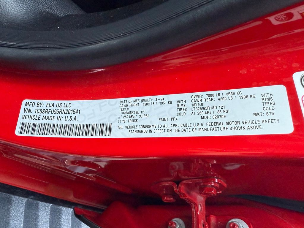 New2024 Flame Red Clearcoat Ram 1500 TRX 6.2L SuperCharged V8 Special Edition 4D Crew CabAll vehicles subject to prior sale. New vehicle pricing includes all offers and incentives. The estimated selling price that appears after calculating dealer offers is for informational purposes, only. You may not qualify for all the offers, incentives, discounts, or financing on this page. Offers, incentives, discounts, or financing are subject to expiration and other restrictions. See Lake Elsinore Chrysler Dodge Jeep Ram for qualifications and complete details or by calling (951) 291-9777. All prices plus government fees and taxes, any finance charges, $85 documentary fee, $33 electronic vehicle registration fee, any emission testing charge and $1.75 per new tire state tire fee. The advertised sale price does not apply to a lease. Offers and prices are not available to other dealers, wholesalers, or brokers. For out-of-state purchase customers, customers must be present to purchase. If shipping is required, dealership must facilitate, no exceptions. The sales price may not be combined with any other offer. The Factory Rebates may not be available on this vehicle if you elect to take advantage of a Special Alternative APR or Special Lease program. Some Factory Rebates are California Resident specific and may vary for residents of other states. The Advertised Price for any/all vehicles offered for sale does not include optional dealer pre-installed accessories or commercial upfits or aftermarket lift kit packages which can be purchased for an additional cost. Contact us for additional information at (951) 291-9773. The sales price includes factory rebates and trade in incentives on this vehicle that are valid on a cash or financed purchase only by an individual for their personal use. All prices will be honored as cash. Some Factory Rebates and trade in incentives are California Resident specific and may be qualifying based and they may also vary for residents of other states.Global Positioning Tracking System (S.W.A.T.) Guaranteed Protection & Recovery Program, Finishing Touch Complete Synthetic Paint Sealant Application & Protection Program, NitroFill Advantage Nitrogen Filled Tires & Protection Program, Genuine Mopar Wheel Locks Anti-Theft Vehicle Wheel Protection, ParkView® / Park Assist Rear Back–Up Camera, Blind–Spot and Cross–Path Detection, Bluetooth Car Audio Receiver, SiriusXM® Satelite Radio, McKinley/Nappa/Alcantara Leather Seats, Apple Car Play/Android Auto, Automatic Climate Control, Backup Camera, Power Moonroof, 18–Inch Aluminum Painted/Polished Wheels, Trailer Tow Package, Global Positioning System (S.W.A.T. Anti-Theft Vehicle Security System, 1500 TRX 6.2L SuperCharged V8 Special Edition Crew Cab 4X4, 4D Crew Cab, 6.2L Supercharged HEMI V8 SRT, 8-Speed Automatic, 4WD, Flame Red Clearcoat, Black w/Leather Trimmed Bucket Seats, #2 Seat Foam Cushion, 10 Speakers, 2-Door Passive Entry, Front Door Locks, 3.55 Rear Axle Ratio, 4 Way Front Headrests, 4-Wheel Disc Brakes, ABS brakes, Accent Color Door Handles, Adaptive suspension, Air Conditioning, Alloy wheels, AM/FM radio: SiriusXM with 360L, Apple CarPlay/Android Auto, Auto High-beam Headlights, Auto-dimming door mirrors, Auto-dimming Rear-View mirror, Automatic temperature control, Blind Spot & Cross Path Detection, Brake assist, Bucket Seats, Cloth/Vinyl Bucket Seats, Compass, Delay-off headlights, Digital Rearview Mirror, Dome Dual LED Reading Lamp, Driver door bin, Driver Seat Memory, Driver/Passenger Wrapped Assist Handles, Dual front impact airbags, Dual front side impact airbags, Dual-Pane Panoramic Sunroof, Electronic Stability Control, Exterior Mirrors Courtesy Lamps, Exterior Mirrors w/Heating Element, Exterior Mirrors w/Memory, Exterior Mirrors w/Supplemental Signals, Front anti-roll bar, Front Bucket Seats, Front Center Armrest w/Storage, Front Door Accent Lighting, Front dual zone A/C, Front fog lights, Front reading lights, Front Seat Back Map Poc