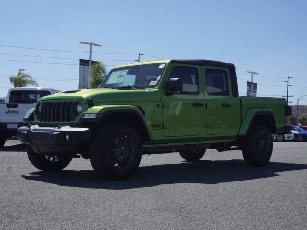 New2025 Mojito Jeep Gladiator Sport S Dark Sky Appearance Edition 4D Crew Cab $15,023 off MSRP!All vehicles subject to prior sale. New vehicle pricing includes all offers and incentives. The estimated selling price that appears after calculating dealer offers is for informational purposes, only. You may not qualify for all the offers, incentives, discounts, or financing on this page. Offers, incentives, discounts, or financing are subject to expiration and other restrictions. See Lake Elsinore Chrysler Dodge Jeep Ram for qualifications and complete details or by calling (951) 291-9777. All prices plus government fees and taxes, any finance charges, $85 documentary fee, $33 electronic vehicle registration fee, any emission testing charge and $1.75 per new tire state tire fee. The advertised sale price does not apply to a lease. Offers and prices are not available to other dealers, wholesalers, or brokers. For out-of-state purchase customers, customers must be present to purchase. If shipping is required, dealership must facilitate, no exceptions. The sales price may not be combined with any other offer. The Factory Rebates may not be available on this vehicle if you elect to take advantage of a Special Alternative APR or Special Lease program. Some Factory Rebates are California Resident specific and may vary for residents of other states. The Advertised Price for any/all vehicles offered for sale does not include optional dealer pre-installed accessories or commercial upfits or aftermarket lift kit packages which can be purchased for an additional cost. Contact us for additional information at (951) 291-9773. The sales price includes factory rebates and trade in incentives on this vehicle that are valid on a cash or financed purchase only by an individual for their personal use. All prices will be honored as cash. Some Factory Rebates and trade in incentives are California Resident specific and may be qualifying based and they may also vary for residents of other states.ABS brakes, Advanced Brake Assist, Automatic Headlamps, Body Color Fender Flares (2-Piece), Compass, Dark Sky Appearance Package, Daytime Running Lamp System, Deep Tint Sunscreen Windows, Electronic Stability Control, Enhanced Adaptive Cruise Control, Full Speed Forward Collision Warning Plus, Illuminated entry, Low tire pressure warning, Mold In Color Bumper w/Gloss Black, Normal Duty Plus Suspension, ParkView Rear Back-Up Camera, Performance Hood, Power Heated Mirrors, Premium Wrapped Steering Wheel, Quick Order Package 24S Sport S, Remote keyless entry, Security Alarm, Sun Visors w/Illuminated Vanity Mirrors, Traction control, Wheels: 17″ x 7.5″ Gray.Priced to Go! Unbeatable Prices: Our dynamic pricing ensures you get unbeatable prices on vehicles that not only fit your budget but also exceed your expectations. We understand the importance of getting the most value for your hard-earned money. Schedule Your Test Drive: Don’t miss out on this opportunity. Schedule your test drive now before the vehicle you de The equipment and photo display is intended to be used as an informational listing of the factory stock equipment and features for this vehicle. Equipment and features may have changed for this vehicle since its original digitally uploaded listing. All information is believed to be accurate but is not guaranteed. For specific accurate pricing information, mileage, availability, options, etc., please contact Lake Elsinore Chrysler Dodge Jeep Ram at (951) 291-9777. Applicable Incentives and Manufacturer Rebate and Expiration Breakdown’s for this vehicle are as follows. Net Cost Price does include:$1000 – 2025 West BC Retail Bonus Cash . Exp. 12/01/2025 $1500 – 2025 National Stellantis Loyalty Retail Bonus Cash . Exp. 12/01/2025 $2250 – 2025 National Bonus Cash . Exp. 12/01/2025 $500 – 2025 National 2025 Military Bonus Cash. Exp. 01/05/2026 $2,000 – Preferred Lender Savings Bonus . Exp. 12/03/2025 $2,500 – Retail Trade in Savings Bonus . Exp. 12/03/2025