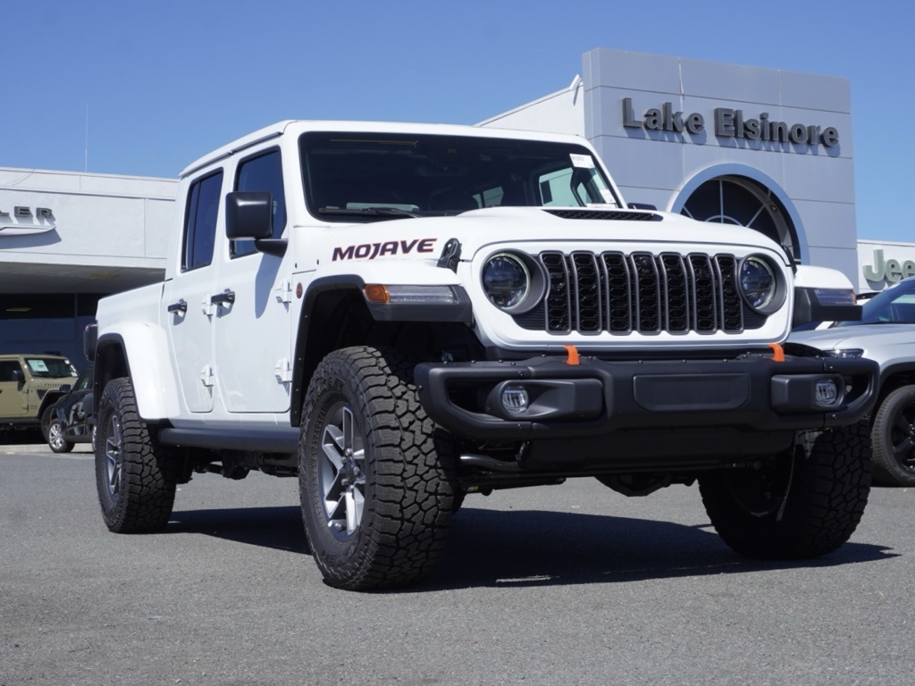 New2025 Bright White Clearcoat Jeep Gladiator Mojave X Edition 4D Crew Cab $19,825 off MSRP!All vehicles subject to prior sale. New vehicle pricing includes all offers and incentives. The estimated selling price that appears after calculating dealer offers is for informational purposes, only. You may not qualify for all the offers, incentives, discounts, or financing on this page. Offers, incentives, discounts, or financing are subject to expiration and other restrictions. See Lake Elsinore Chrysler Dodge Jeep Ram for qualifications and complete details or by calling (951) 291-9777. All prices plus government fees and taxes, any finance charges, $85 documentary fee, $33 electronic vehicle registration fee, any emission testing charge and $1.75 per new tire state tire fee. The advertised sale price does not apply to a lease. Offers and prices are not available to other dealers, wholesalers, or brokers. For out-of-state purchase customers, customers must be present to purchase. If shipping is required, dealership must facilitate, no exceptions. The sales price may not be combined with any other offer. The Factory Rebates may not be available on this vehicle if you elect to take advantage of a Special Alternative APR or Special Lease program. Some Factory Rebates are California Resident specific and may vary for residents of other states. The Advertised Price for any/all vehicles offered for sale does not include optional dealer pre-installed accessories or commercial upfits or aftermarket lift kit packages which can be purchased for an additional cost. Contact us for additional information at (951) 291-9773. The sales price includes factory rebates and trade in incentives on this vehicle that are valid on a cash or financed purchase only by an individual for their personal use. All prices will be honored as cash. Some Factory Rebates and trade in incentives are California Resident specific and may be qualifying based and they may also vary for residents of other states.4G LTE Wi-Fi Hot Spot, ABS brakes, Alexa Built-In, Alloy wheels, Alpine Premium Audio System, Apple CarPlay, Auto High Beam Headlamp Control, Auto-Dimming Rear-View Mirror, Blind Spot & Cross Path Detection, Bluetooth Wireless Speaker, Body Color 3-Piece Hard Top, Body Color Rubicon Highline Flare, Compass, Connected Travel & Traffic Services, Connectivity – US/Canada, Electronic Stability Control, Freedom Panel Storage Bag, Front dual zone A/C, Full Length Floor Console Premium Armrest, Google Android Auto, GPS Navigation, Heated door mirrors, Heated Front Seats, Heated Steering Wheel, Illuminated entry, Integrated Off-Road Camera, Integrated Voice Command w/Bluetooth, Leather Trimmed Bucket Seats, Leather Wrapped Park Brake Handle, Leather Wrapped Shift Knob, Low tire pressure warning, MOPAR Hardtop Headliner, No Soft Top, ParkSense Rear Park Assist System, Power 4-Way Driver Lumbar Adjust, Power 4-Way Passenger Lumbar Adjust, Power Adjust 8-Way Driver Seat, Power Adjust 8-Way Front Passenger Seat, Premium Door Trim Panel, Quick Order Package 24A Mojave X, Radio: Uconn The equipment and photo display is intended to be used as an informational listing of the factory stock equipment and features for this vehicle. Equipment and features may have changed for this vehicle since its original digitally uploaded listing. All information is believed to be accurate but is not guaranteed. For specific accurate pricing information, mileage, availability, options, etc., please contact Lake Elsinore Chrysler Dodge Jeep Ram at (951) 291-9777. Applicable Incentives and Manufacturer Rebate and Expiration Breakdown’s for this vehicle are as follows. Net Cost Price does include:$1500 – 2025 National Stellantis Loyalty Retail Bonus Cash . Exp. 12/01/2025 $500 – 2025 National 2025 Military Bonus Cash. Exp. 01/05/2026 $5500 – 2025 National Bonus Cash . Exp. 12/01/2025 $2,000 – Preferred Lender Savings Bonus . Exp. 12/03/2025 $2,500 – Retail Trade in Savings Bonus . Exp. 12/03/2025