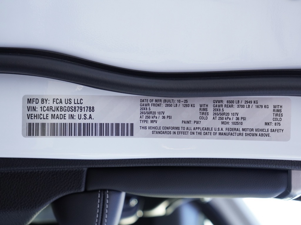 New2025 Bright White Clearcoat Jeep Grand Cherokee L Limited Black Appearance Edition 4D Sport Utility $5,357 off MSRP!All vehicles subject to prior sale. New vehicle pricing includes all offers and incentives. The estimated selling price that appears after calculating dealer offers is for informational purposes, only. You may not qualify for all the offers, incentives, discounts, or financing on this page. Offers, incentives, discounts, or financing are subject to expiration and other restrictions. See Lake Elsinore Chrysler Dodge Jeep Ram for qualifications and complete details or by calling (951) 291-9777. All prices plus government fees and taxes, any finance charges, $85 documentary fee, $33 electronic vehicle registration fee, any emission testing charge and $1.75 per new tire state tire fee. The advertised sale price does not apply to a lease. Offers and prices are not available to other dealers, wholesalers, or brokers. For out-of-state purchase customers, customers must be present to purchase. If shipping is required, dealership must facilitate, no exceptions. The sales price may not be combined with any other offer. The Factory Rebates may not be available on this vehicle if you elect to take advantage of a Special Alternative APR or Special Lease program. Some Factory Rebates are California Resident specific and may vary for residents of other states. The Advertised Price for any/all vehicles offered for sale does not include optional dealer pre-installed accessories or commercial upfits or aftermarket lift kit packages which can be purchased for an additional cost. Contact us for additional information at (951) 291-9773. The sales price includes factory rebates and trade in incentives on this vehicle that are valid on a cash or financed purchase only by an individual for their personal use. All prices will be honored as cash. Some Factory Rebates and trade in incentives are California Resident specific and may be qualifying based and they may also vary for residents of other states.Grand Cherokee L Limited Black Appearance Edition 4X4 SUV, 4D Sport Utility, 3.6L V6 24V VVT, 8-Speed Automatic, 4WD, Bright White Clearcoat, Global Black w/Capri Leatherette Seats or Capri Leatherette w/Axis II Seats, ABS brakes, Alloy wheels, Black Appearance Package, Compass, Electronic Stability Control, Emergency communication system, Front dual zone A/C, Gloss Black Exterior Accents, Heated door mirrors, Heated front seats, Heated rear seats, Illuminated entry, Low tire pressure warning, Navigation System, ParkView Rear Back-Up Camera, Power Liftgate, Quick Order Package 22E, Remote keyless entry, Traction control, Wheels: 20″ x 8.5″ Gloss Black Painted Aluminum.Priced to Go! Unbeatable Prices: Our dynamic pricing ensures you get unbeatable prices on vehicles that not only fit your budget but also exceed your expectations. We understand the importance of getting the most value for your hard-earned money. Schedule Your Test Drive: Don’t miss out on this opportunity. Schedule your test drive now before the vehicle you desire is gone. Call us at (951) 291-9773 or visit The equipment and photo display is intended to be used as an informational listing of the factory stock equipment and features for this vehicle. Equipment and features may have changed for this vehicle since its original digitally uploaded listing. All information is believed to be accurate but is not guaranteed. For specific accurate pricing information, mileage, availability, options, etc., please contact Lake Elsinore Chrysler Dodge Jeep Ram at (951) 291-9777. Applicable Incentives and Manufacturer Rebate and Expiration Breakdown’s for this vehicle are as follows. Net Cost Price does include:$1500 – 2025 National Stellantis Loyalty Retail Bonus Cash . Exp. 01/05/2026 $2000 – 2025 National Holiday Select Inventory Bonus Cash. Exp. 01/05/2026 $2500 – 2025 National Retail Bonus Cash . Exp. 01/05/2026 $500 – 2025 National 2025 Military Bonus Cash. Exp. 01/05/2026