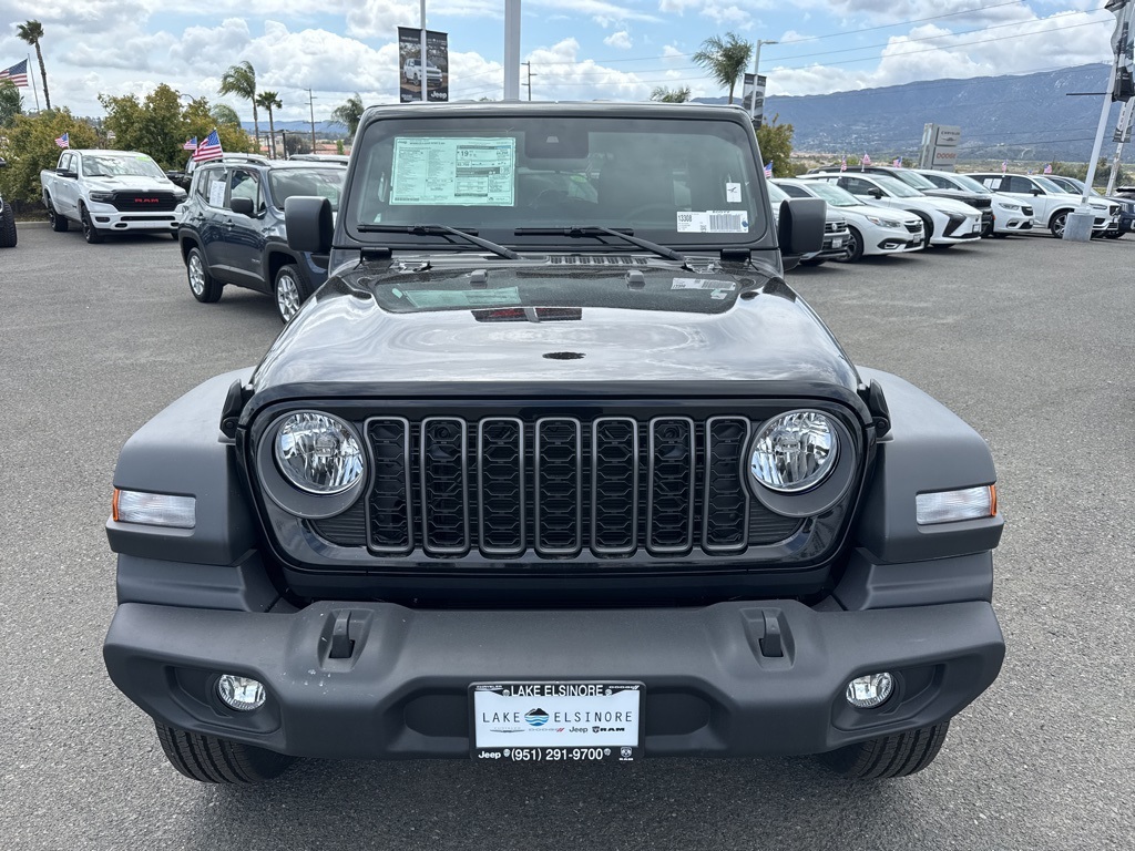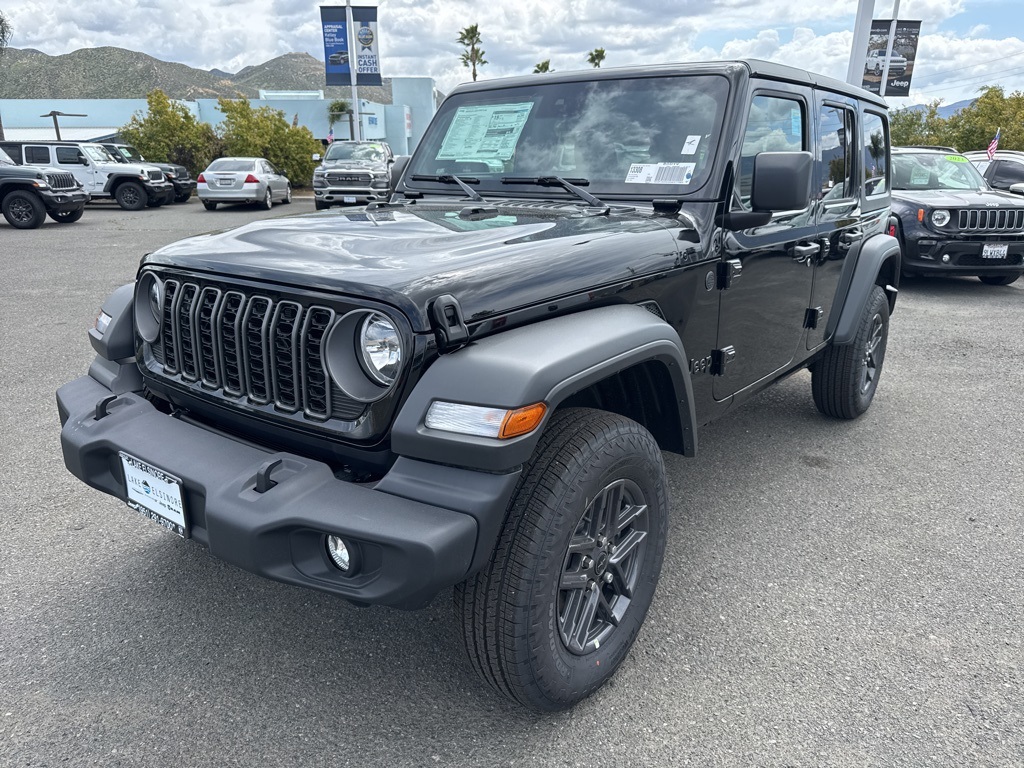 New2025 Black Clearcoat Jeep Wrangler 4-Door Sport 4D Sport Utility $18,970 off MSRP!All vehicles subject to prior sale. New vehicle pricing includes all offers and incentives. The estimated selling price that appears after calculating dealer offers is for informational purposes, only. You may not qualify for all the offers, incentives, discounts, or financing on this page. Offers, incentives, discounts, or financing are subject to expiration and other restrictions. See Lake Elsinore Chrysler Dodge Jeep Ram for qualifications and complete details or by calling (951) 291-9777. All prices plus government fees and taxes, any finance charges, $85 documentary fee, $33 electronic vehicle registration fee, any emission testing charge and $1.75 per new tire state tire fee. The advertised sale price does not apply to a lease. Offers and prices are not available to other dealers, wholesalers, or brokers. For out-of-state purchase customers, customers must be present to purchase. If shipping is required, dealership must facilitate, no exceptions. The sales price may not be combined with any other offer. The Factory Rebates may not be available on this vehicle if you elect to take advantage of a Special Alternative APR or Special Lease program. Some Factory Rebates are California Resident specific and may vary for residents of other states. The Advertised Price for any/all vehicles offered for sale does not include optional dealer pre-installed accessories or commercial upfits or aftermarket lift kit packages which can be purchased for an additional cost. Contact us for additional information at (951) 291-9773. The sales price includes factory rebates and trade in incentives on this vehicle that are valid on a cash or financed purchase only by an individual for their personal use. All prices will be honored as cash. Some Factory Rebates and trade in incentives are California Resident specific and may be qualifying based and they may also vary for residents of other states.KARR Bluetooth Security System Anti-Theft Vehicle Security System & Protection Program, Global Positioning Tracking System (S.W.A.T.) Guaranteed Protection & Recovery Program, Finishing Touch Complete Synthetic Paint Sealant Application & Protection Program, NitroFill Advantage Nitrogen Filled Tires & Protection Program, Genuine Mopar Wheel Locks Anti-Theft Vehicle Wheel Protection, ParkView® / Park Assist Rear Back–Up Camera, Blind–Spot and Cross–Path Detection, Bluetooth Car Audio Receiver, SiriusXM® Satelite Radio, Apple Car Play/Android Auto, Automatic Climate Control, Wrangler 4-Door Sport 4X4 SUV, 4D Sport Utility, 3.6L V6 24V VVT, 6-Speed Manual, 4WD, Black Clearcoat, Black w/Cloth Low-Back Bucket Seats, 110 MPH Vehicle Max Speed Calibration, 3.45 Overall Top Gear Ratio, 4-Wheel Disc Brakes, 8 Speakers, ABS brakes, Advanced Brake Assist, Air Conditioning, Apple CarPlay/Android Auto, Automatic Headlamps, Aux Battery, Black 3-Piece Hard Top, Brake assist, Cloth Low-Back Bucket Seats, Compass, Corning Gorilla Glass, Deep Tint Sunscreen Windows, Delay-off headlights, Driver door bin, Driver vanity The equipment and photo display is intended to be used as an informational listing of the factory stock equipment and features for this vehicle. Equipment and features may have changed for this vehicle since its original digitally uploaded listing. All information is believed to be accurate but is not guaranteed. For specific accurate pricing information, mileage, availability, options, etc., please contact Lake Elsinore Chrysler Dodge Jeep Ram at (951) 291-9777. Applicable Incentives and Manufacturer Rebate and Expiration Breakdown’s for this vehicle are as follows. Net Cost Price does include:$1000 – 2025 West BC Bonus Cash . Exp. 12/01/2025 $1500 – 2025 National Bonus Cash . Exp. 12/01/2025 $2500 – 2025 National Retail Bonus Cash . Exp. 12/01/2025 $2,000 – Preferred Lender Savings Bonus . Exp. 12/03/2025 $2,500 – Retail Trade in Savings Bonus . Exp. 12/03/2025