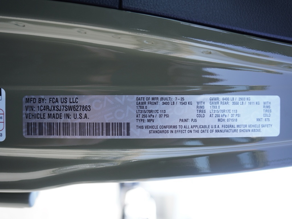 New2025 41 Jeep Wrangler 4-Door Rubicon 392 Final Edition 4D Sport Utility $9,000 off MSRP!All vehicles subject to prior sale. New vehicle pricing includes all offers and incentives. The estimated selling price that appears after calculating dealer offers is for informational purposes, only. You may not qualify for all the offers, incentives, discounts, or financing on this page. Offers, incentives, discounts, or financing are subject to expiration and other restrictions. See Lake Elsinore Chrysler Dodge Jeep Ram for qualifications and complete details or by calling (951) 291-9777. All prices plus government fees and taxes, any finance charges, $85 documentary fee, $33 electronic vehicle registration fee, any emission testing charge and $1.75 per new tire state tire fee. The advertised sale price does not apply to a lease. Offers and prices are not available to other dealers, wholesalers, or brokers. For out-of-state purchase customers, customers must be present to purchase. If shipping is required, dealership must facilitate, no exceptions. The sales price may not be combined with any other offer. The Factory Rebates may not be available on this vehicle if you elect to take advantage of a Special Alternative APR or Special Lease program. Some Factory Rebates are California Resident specific and may vary for residents of other states. The Advertised Price for any/all vehicles offered for sale does not include optional dealer pre-installed accessories or commercial upfits or aftermarket lift kit packages which can be purchased for an additional cost. Contact us for additional information at (951) 291-9773. The sales price includes factory rebates and trade in incentives on this vehicle that are valid on a cash or financed purchase only by an individual for their personal use. All prices will be honored as cash. Some Factory Rebates and trade in incentives are California Resident specific and may be qualifying based and they may also vary for residents of other states.Global Positioning Tracking System (S.W.A.T.) Guaranteed Protection & Recovery Program, Finishing Touch Complete Synthetic Paint Sealant Application & Protection Program, NitroFill Advantage Nitrogen Filled Tires & Protection Program, Genuine Mopar Wheel Locks Anti-Theft Vehicle Wheel Protection, ParkView® / Park Assist Rear Back–Up Camera, Blind–Spot and Cross–Path Detection, Bluetooth Car Audio Receiver, SiriusXM® Satelite Radio, McKinley/Nappa/Alcantara Leather Seats, Apple Car Play/Android Auto, Automatic Climate Control, Backup Camera, Global Positioning System (S.W.A.T. Anti-Theft Vehicle Security System, Wrangler 4-Door Rubicon 392 Final Edition 4X4 SUV, 4D Sport Utility, SRT HEMI 6.4L V8 MDS, 8-Speed Automatic, 4WD, 41, Black w/392 Final Edition Nappa Leather Seat, ABS brakes, Active Cruise Control, Alloy wheels, Compass, Electronic Stability Control, Front dual zone A/C, Heated door mirrors, Heated front seats, Illuminated entry, Low tire pressure warn The equipment and photo display is intended to be used as an informational listing of the factory stock equipment and features for this vehicle. Equipment and features may have changed for this vehicle since its original digitally uploaded listing. All information is believed to be accurate but is not guaranteed. For specific accurate pricing information, mileage, availability, options, etc., please contact Lake Elsinore Chrysler Dodge Jeep Ram at (951) 291-9777. Applicable Incentives and Manufacturer Rebate and Expiration Breakdown’s for this vehicle are as follows. Net Cost Price does include:$1500 – 2025 National Stellantis Loyalty Retail Bonus Cash . Exp. 02/02/2026 , $2,500 – Retail Trade in Assistance HE2000. Exp. 01/30/2026 Overaged Inventory Bonus Cash applies to specific Vin and is only applied to qualifying customers. Validate by calling dealer to see if you qualify, all customers who qualify must have proper documentation if needed in order to obtain this Rebate $2,000 – Exp. 01/31/2026