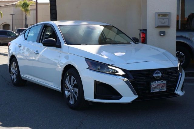 NewThis 2025 Glacier White Nissan Altima 2.5 S FWD is well equipped and includes these features and benefits: CVT with Xtronic, 4-Wheel Disc Brakes, 6 Speakers, ABS brakes, Air Conditioning, AM/FM radio: SiriusXM, Auto High-beam Headlights, Blind Spot Warning, Body-Colored Splash Guards, Brake assist, Bumpers: body-color, Cloth Seat Trim, Delay-off headlights, Driver door bin, Driver vanity mirror, Dual front impact airbags, Dual front side impact airbags, Electronic Stability Control, Floor Mats/Trunk Mat/Hideaway Net, Four wheel independent suspension, Front anti-roll bar, Front Bucket Seats, Front Center Armrest, Front reading lights, Fully automatic headlights, Illuminated entry, Knee airbag, Low tire pressure warning, NissanConnect featuring Apple CarPlay and Android Auto, Occupant sensing airbag, Outside temperature display, Overhead airbag, Overhead console, Panic alarm, Passenger door bin, Passenger vanity mirror, Power door mirrors, Power steering, Power windows, Radio data system, Radio: AM/FM Audio System, Rear anti-roll bar, Rear Parking Sensors, Rear reading lights, Rear seat center armrest, Rear side impact airbag, Rear window defroster, Remote keyless entry, Security system, Speed control, Speed-sensing steering, Speed-Sensitive Wipers, Split folding rear seat, Steering wheel mounted audio controls, Tachometer, Telescoping steering wheel, Tilt steering wheel, Traction control, Trip computer, USB Charging Cable Set – Nissan, Variably intermittent wipers, and Wheels: 16″ x 7″ Steel w/Full Wheel Covers Plus 3 Month 3000 Mile Warranty. See Dealer For Details. Apple Car Play/Android Auto, Automatic Climate Control, Backup Camera, CVT with Xtronic.27/39 City/Highway MPG• MSRP is the Manufacturer’s Suggested Retail Price, which is not necessarily the sale price and is not the advertised price. For specific pricing information, please contact Pedder Nissan at (951) 766-1446. Price does include: • The Advertised Price for any/all vehicles offered for sale does not include dealer installed accessories. These accessories can be purchased for an additional cost. Price does include: • All vehicles subject to prior sale. All prices plus government fees and taxes, any finance charges, any dealer document processing charges ($85), any electronic filing charge, and any emission testing charge. Offers and prices not available to other dealers, wholesalers, or brokers. For out of state purchase customers, customers must be present to purchase. If shipping is required, dealership must facilitate; no exceptions. Special financing in lieu of any rebates. This price may not be combined with any other offer. Price does include: • All information is believed to be accurate but is not guaranteed. For accurate pricing, mileage, availability, options, etc, please contact Pedder Nissan at (951) 766-1446. The sales price includes factory rebates and trade in incentives on this vehicle that are valid on a cash or financed purchase only by an individual for their personal use. All prices will be honored as cash. The sale price does not apply to a lease. The factory rebates may not be available on this vehicle if you elect to take advantage of a Special Alternative APR or Special Lease program. Some Factory Rebates and trade in incentives are California Resident specific and may be qualifying based and they may also vary for residents of other states. Applicable Trade in Incentives and Manufacturer Rebate and Expiration Breakdown’s for this vehicle are as follows. Price does include:$500 – Nissan Conditional Offer – Military Discount. Exp. 02/02/2026