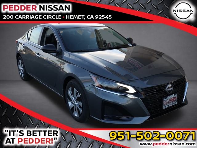 NewThis 2025 Gun Metallic Nissan Altima 2.5 S FWD is well equipped and includes these features and benefits: CVT with Xtronic, 4-Wheel Disc Brakes, 6 Speakers, ABS brakes, Air Conditioning, AM/FM radio: SiriusXM, Auto High-beam Headlights, Blind Spot Warning, Body-Colored Splash Guards, Brake assist, Bumpers: body-color, Cloth Seat Trim, Delay-off headlights, Driver door bin, Driver vanity mirror, Dual front impact airbags, Dual front side impact airbags, Electronic Stability Control, Floor Mats/Trunk Mat/Hideaway Net, Four wheel independent suspension, Front anti-roll bar, Front Bucket Seats, Front Center Armrest, Front reading lights, Fully automatic headlights, Illuminated entry, Knee airbag, Low tire pressure warning, NissanConnect featuring Apple CarPlay and Android Auto, Occupant sensing airbag, Outside temperature display, Overhead airbag, Overhead console, Panic alarm, Passenger door bin, Passenger vanity mirror, Power door mirrors, Power steering, Power windows, Radio data system, Radio: AM/FM Audio System, Rear anti-roll bar, Rear Parking Sensors, Rear reading lights, Rear seat center armrest, Rear side impact airbag, Rear window defroster, Remote keyless entry, Security system, Speed control, Speed-sensing steering, Speed-Sensitive Wipers, Split folding rear seat, Steering wheel mounted audio controls, Tachometer, Telescoping steering wheel, Tilt steering wheel, Traction control, Trip computer, USB Charging Cable Set – Nissan, Variably intermittent wipers, and Wheels: 16″ x 7″ Steel w/Full Wheel Covers Plus 3 Month 3000 Mile Warranty. See Dealer For Details. Apple Car Play/Android Auto, Automatic Climate Control, Backup Camera, CVT with Xtronic.27/39 City/Highway MPG• MSRP is the Manufacturer’s Suggested Retail Price, which is not necessarily the sale price and is not the advertised price. For specific pricing information, please contact Pedder Nissan at (951) 766-1446. Price does include: • The Advertised Price for any/all vehicles offered for sale does not include dealer installed accessories. These accessories can be purchased for an additional cost. Price does include: • All vehicles subject to prior sale. All prices plus government fees and taxes, any finance charges, any dealer document processing charges ($85), any electronic filing charge, and any emission testing charge. Offers and prices not available to other dealers, wholesalers, or brokers. For out of state purchase customers, customers must be present to purchase. If shipping is required, dealership must facilitate; no exceptions. Special financing in lieu of any rebates. This price may not be combined with any other offer. Price does include: • All information is believed to be accurate but is not guaranteed. For accurate pricing, mileage, availability, options, etc, please contact Pedder Nissan at (951) 766-1446. The sales price includes factory rebates and trade in incentives on this vehicle that are valid on a cash or financed purchase only by an individual for their personal use. All prices will be honored as cash. The sale price does not apply to a lease. The factory rebates may not be available on this vehicle if you elect to take advantage of a Special Alternative APR or Special Lease program. Some Factory Rebates and trade in incentives are California Resident specific and may be qualifying based and they may also vary for residents of other states. Applicable Trade in Incentives and Manufacturer Rebate and Expiration Breakdown’s for this vehicle are as follows. Price does include:$500 – Nissan Conditional Offer – Military Discount. Exp. 03/02/2026
