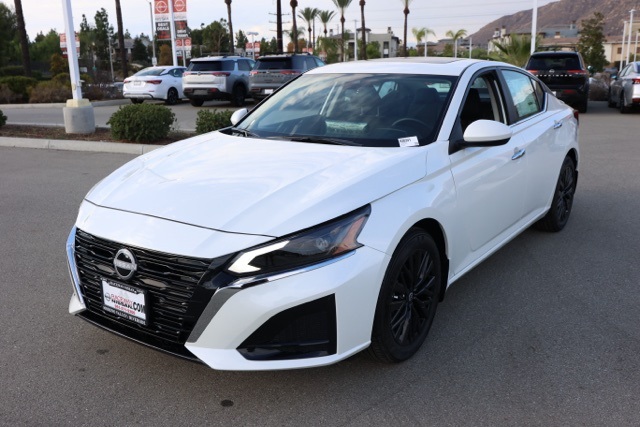 NewPearl White Tricoat 2025 Nissan Altima 2.5 SV FWD CVT with Xtronic 2.5L 4-Cylinder DOHC 16V Automatic Climate Control, Backup Camera, CVT with Xtronic.This 2025 Pearl White Tricoat Nissan Altima 2.5 SV FWD is well equipped and includes these features and benefits: SV Special Edition Package (Body-Color Outside Mirrors, Carbon Fiber Look Center Console Finisher, Dual Zone Automatic HVAC, NissanConnect, Rear Spoiler (Accessory Part), Remote Engine Start w/Intelligent Climate Control, Single Panel Moonroof, Visible Rear Exhaust w/Finisher, and Wheels: 17″ Gloss Black Alloy), CVT with Xtronic, 17″ Machined Alloy Wheels, 4-Wheel Disc Brakes, 6 Speakers, ABS brakes, Air Conditioning, Alloy wheels, AM/FM radio: SiriusXM, Auto High-beam Headlights, Blind Spot Warning, Body-Colored Splash Guards, Brake assist, Bumpers: body-color, Cloth Seat Trim, Delay-off headlights, Driver door bin, Driver vanity mirror, Dual front impact airbags, Dual front side impact airbags, Electronic Stability Control, Floor Mats/Trunk Mat/Hideaway Net, Four wheel independent suspension, Front anti-roll bar, Front Bucket Seats, Front Center Armrest, Front reading lights, Fully automatic headlights, Illuminated entry, Knee airbag, Low tire pressure warning, NissanConnect featuring Apple CarPlay and Android Auto, Occupant sensing airbag, Outside temperature display, Overhead airbag, Overhead console, Panic alarm, Passenger door bin, Passenger vanity mirror, Power door mirrors, Power driver seat, Power steering, Power windows, Premium Paint, Radio data system, Radio: AM/FM Audio System, Rear anti-roll bar, Rear Parking Sensors, Rear reading lights, Rear seat center armrest, Rear side impact airbag, Rear window defroster, Remote keyless entry, Security system, Speed control, Speed-sensing steering, Speed-Sensitive Wipers, Split folding rear seat, Steering wheel mounted audio controls, Tachometer, Telescoping steering wheel, Tilt steering wheel, Traction control, Trip computer, Trunk Organizer Tray, and Variably intermittent wipers. Recent Arrival! 27/39 City/Highway MPGWe have many different makes and models available including a wide selection of cars, trucks, vans, and SUVs. Raceway Nissan in Riverside County has access to thousands of new and used vehicles which means we can find the right vehicle for you and your family. We are proud to serve the city of Riverside, all of the Metro Riverside County area, and the Inland Empire from our location in Moreno Valley. We are conveniently located in Riverside near the cities of San Bernardino, Redlands, Ontario, Corona, Perris, Beaumont, Temecula, Hemet and many others. We offer military discounts and work with many Credit Unions.
