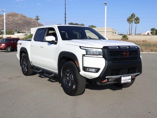 NewGlacier White 2025 Nissan Frontier PRO-4X 4WD 9-Speed Automatic with Overdrive 3.8L DI DOHC 24V V6 Automatic Climate Control, Backup Camera, 4WD.This 2025 Glacier White Nissan Frontier PRO-4X 4WD is well equipped and includes these features and benefits: 4WD, 17″ Painted Alloy Wheels, 3.692 Axle Ratio, 4-Wheel Disc Brakes, 6 Speakers, ABS brakes, Air Conditioning, Alloy wheels, AM/FM radio: SiriusXM, Anti-whiplash front head restraints, Auto High-beam Headlights, Automatic temperature control, Blind Spot Warning, Brake assist, Bumpers: body-color, Delay-off headlights, Driver door bin, Driver vanity mirror, Dual front impact airbags, Dual front side impact airbags, Electronic Stability Control, Emergency communication system, Front anti-roll bar, Front Bucket Seats, Front Center Armrest, Front dual zone A/C, Front fog lights, Front reading lights, Front wheel independent suspension, Fully automatic headlights, Illuminated entry, Knee airbag, Leather Shift Knob, Leather steering wheel, Low tire pressure warning, Occupant sensing airbag, Overhead airbag, Overhead console, Panic alarm, Passenger door bin, Passenger vanity mirror, Power door mirrors, Power driver seat, Power passenger seat, Power steering, Power windows, PRO Embroidered Premium Cloth Seat Trim, Radio data system, Radio: SXM/AM/FM/AUX/USB Audio System, Rear anti-roll bar, Rear seat center armrest, Rear side impact airbag, Rear step bumper, Remote keyless entry, Security system, Speed control, Speed-sensing steering, Split folding rear seat, Steering wheel mounted audio controls, Tachometer, Telescoping steering wheel, Tilt steering wheel, Traction control, Trip computer, Variably intermittent wipers, Voltmeter, and Wireless Apple CarPlay/Wireless Android Auto.We have many different makes and models available including a wide selection of cars, trucks, vans, and SUVs. Raceway Nissan in Riverside County has access to thousands of new and used vehicles which means we can find the right vehicle for you and your family. We are proud to serve the city of Riverside, all of the Metro Riverside County area, and the Inland Empire from our location in Moreno Valley. We are conveniently located in Riverside near the cities of San Bernardino, Redlands, Ontario, Corona, Perris, Beaumont, Temecula, Hemet and many others. We offer military discounts and work with many Credit Unions. Price includes: $3500 – Nissan Customer Cash. Exp. 12/01/2025 $500 – Nissan MY25 Frontier Selldown Bonus Cash. Exp. 12/01/2025