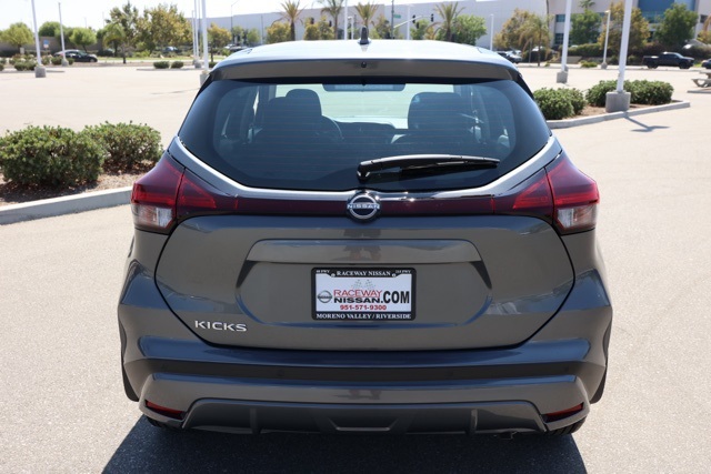 Gun Metallic 2025 Nissan Kicks Play S FWD CVT with Xtronic 1.6L 4-Cylinder DOHC 16V Automatic Climate Control, Backup Camera.This 2025 Gun Metallic Nissan Kicks Play S FWD is well equipped and includes these features and benefits: 16″ Steel Wheels w/Full Covers, 6 Speakers, ABS brakes, Air Conditioning, AM/FM radio, Apple CarPlay/Android Auto, Auto High-beam Headlights, Blind Spot Warning, Brake assist, Bumpers: body-color, Carpeted Floor Mats w/Cargo Mat, Center Armrest w/Storage, Cloth Seat Trim w/Single Stitch, Driver door bin, Driver vanity mirror, Driver’s Seat Mounted Armrest, Dual front impact airbags, Dual front side impact airbags, Electronic Stability Control, Front anti-roll bar, Front Bucket Seats, Front reading lights, Front wheel independent suspension, Fully automatic headlights, Illuminated entry, Knee airbag, Low tire pressure warning, Occupant sensing airbag, Outside temperature display, Overhead airbag, Panic alarm, Passenger door bin, Passenger vanity mirror, Power door mirrors, Power steering, Power windows, Radio data system, Radio: AM/FM Audio System, Rear Parking Sensors, Rear reading lights, Rear side impact airbag, Rear window defroster, Rear window wiper, Remote keyless entry, Speed control, Splash Guards Grain (4 Piece), Split folding rear seat, Sport steering wheel, Steering wheel mounted audio controls, Tachometer, Telescoping steering wheel, Tilt steering wheel, Traction control, Trip computer, and Variably intermittent wipers. 31/36 City/Highway MPGWe have many different makes and models available including a wide selection of cars, trucks, vans, and SUVs. Raceway Nissan in Riverside County has access to thousands of new and used vehicles which means we can find the right vehicle for you and your family. We are proud to serve the city of Riverside, all of the Metro Riverside County area, and the Inland Empire from our location in Moreno Valley. We are conveniently located in Riverside near the cities of San Bernardino, Redlands, Ontario, Corona, Perris, Beaumont, Temecula, Hemet and many others. We offer military discounts and work with many Credit Unions.