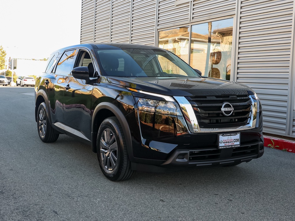 NewSuper Black 2025 Nissan Pathfinder S FWD 9-Speed Automatic 3.5L V6 DOHC Automatic Climate Control, Backup Camera.This 2025 Super Black Nissan Pathfinder S FWD is well equipped and includes these features and benefits: 3rd row seats: bench, 4-Wheel Disc Brakes, 6 Speakers, ABS brakes, Air Conditioning, Alloy wheels, AM/FM radio: SiriusXM, Auto High-beam Headlights, Automatic temperature control, Bench Seat Carpeted Floor Mats (set of 4), Blind Spot Warning, Brake assist, Bumpers: body-color, Cloth Seating Surfaces, Delay-off headlights, Driver door bin, Driver vanity mirror, Dual front impact airbags, Dual front side impact airbags, Electronic Stability Control, Four wheel independent suspension, Front anti-roll bar, Front Bucket Seats, Front Center Armrest, Front dual zone A/C, Front reading lights, Fully automatic headlights, Illuminated entry, Knee airbag, Low tire pressure warning, NissanConnect featuring Apple CarPlay and Android Auto, Occupant sensing airbag, Outside temperature display, Overhead airbag, Overhead console, Panic alarm, Passenger door bin, Passenger vanity mirror, Power door mirrors, Power steering, Power windows, Radio data system, Radio: AM/FM Audio System with NissanConnect, Rear air conditioning, Rear anti-roll bar, Rear Parking Sensors, Rear reading lights, Rear side impact airbag, Rear window defroster, Rear window wiper, Reclining 3rd row seat, Remote keyless entry, Security system, Speed control, Speed-sensing steering, Split folding rear seat, Spoiler, Steering wheel mounted audio controls, Tachometer, Telescoping steering wheel, Tilt steering wheel, Traction control, Trip computer, Variably intermittent wipers, and Wheels: 18″ x 8J Painted Alloy. Recent Arrival! 20/27 City/Highway MPGWe have many different makes and models available including a wide selection of cars, trucks, vans, and SUVs. Raceway Nissan in Riverside County has access to thousands of new and used vehicles which means we can find the right vehicle for you and your family. We are proud to serve the city of Riverside, all of the Metro Riverside County area, and the Inland Empire from our location in Moreno Valley. We are conveniently located in Riverside near the cities of San Bernardino, Redlands, Ontario, Corona, Perris, Beaumont, Temecula, Hemet and many others. We offer military discounts and work with many Credit Unions. Price includes: $500 – Nissan Conditional Offer – Military Discount. Exp. 01/05/2026 $5000 – Nissan Customer Cash. Exp. 01/05/2026