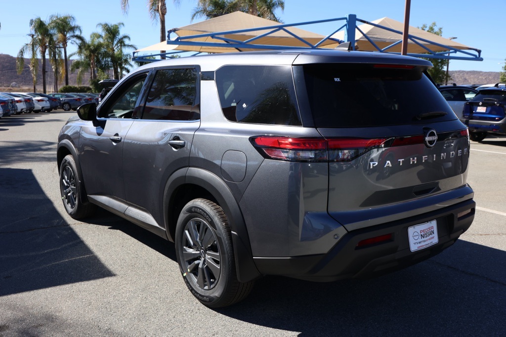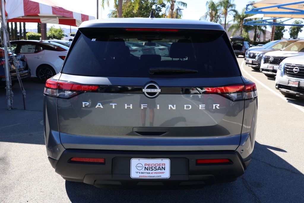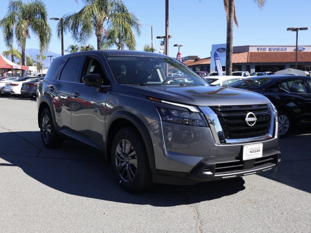 NewThis 2025 Gun Metallic Nissan Pathfinder S FWD is well equipped and includes these features and benefits: 3rd row seats: bench, 4-Wheel Disc Brakes, 6 Speakers, ABS brakes, Air Conditioning, Alloy wheels, AM/FM radio: SiriusXM, Auto High-beam Headlights, Automatic temperature control, Bench Seat Carpeted Floor Mats (Set of 4), Blind Spot Warning, Brake assist, Bumpers: body-color, Cloth Seating Surfaces, Delay-off headlights, Driver door bin, Driver vanity mirror, Dual front impact airbags, Dual front side impact airbags, Electronic Stability Control, Four wheel independent suspension, Front anti-roll bar, Front Bucket Seats, Front Center Armrest, Front dual zone A/C, Front reading lights, Fully automatic headlights, Illuminated entry, Knee airbag, Low tire pressure warning, NissanConnect featuring Apple CarPlay and Android Auto, Occupant sensing airbag, Outside temperature display, Overhead airbag, Overhead console, Panic alarm, Passenger door bin, Passenger vanity mirror, Power door mirrors, Power steering, Power windows, Radio data system, Radio: AM/FM Audio System w/NissanConnect, Rear air conditioning, Rear anti-roll bar, Rear Parking Sensors, Rear reading lights, Rear side impact airbag, Rear window defroster, Rear window wiper, Reclining 3rd row seat, Remote keyless entry, Security system, Speed control, Speed-sensing steering, Split folding rear seat, Spoiler, Steering wheel mounted audio controls, Tachometer, Telescoping steering wheel, Tilt steering wheel, Traction control, Trip computer, Variably intermittent wipers, and Wheels: 18″ x 8J Painted Alloy Plus 3 Month 3000 Mile Warranty. See Dealer For Details. Apple Car Play/Android Auto, Automatic Climate Control, Backup Camera.20/27 City/Highway MPG• MSRP is the Manufacturer’s Suggested Retail Price, which is not necessarily the sale price and is not the advertised price. For specific pricing information, please contact Pedder Nissan at (951) 766-1446. Price does include: • The Advertised Price for any/all vehicles offered for sale does not include dealer installed accessories. These accessories can be purchased for an additional cost. Price does include: • All vehicles subject to prior sale. All prices plus government fees and taxes, any finance charges, any dealer document processing charges ($85), any electronic filing charge, and any emission testing charge. Offers and prices not available to other dealers, wholesalers, or brokers. For out of state purchase customers, customers must be present to purchase. If shipping is required, dealership must facilitate; no exceptions. Special financing in lieu of any rebates. This price may not be combined with any other offer. Price does include: • All information is believed to be accurate but is not guaranteed. For accurate pricing, mileage, availability, options, etc, please contact Pedder Nissan at (951) 766-1446. The sales price includes factory rebates and trade in incentives on this vehicle that are valid on a cash or financed purchase only by an individual for their personal use. All prices will be honored as cash. The sale price does not apply to a lease. The factory rebates may not be available on this vehicle if you elect to take advantage of a Special Alternative APR or Special Lease program. Some Factory Rebates and trade in incentives are California Resident specific and may be qualifying based and they may also vary for residents of other states. Applicable Trade in Incentives and Manufacturer Rebate and Expiration Breakdown’s for this vehicle are as follows. Price does include:$5000 – Nissan Customer Cash. Exp. 11/03/2025