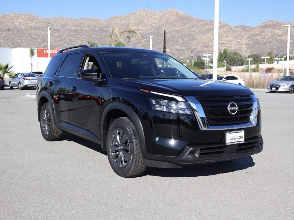 NewSuper Black 2025 Nissan Pathfinder SV FWD 9-Speed Automatic 3.5L V6 DOHC Automatic Climate Control, Backup Camera.This 2025 Super Black Nissan Pathfinder SV FWD is well equipped and includes these features and benefits: Cargo Package (Cargo Area Protector, Cargo Net, and First Aid), 3rd row seats: bench, 4-Wheel Disc Brakes, 6 Speakers, ABS brakes, Air Conditioning, Alloy wheels, AM/FM radio: SiriusXM, Auto High-beam Headlights, Automatic temperature control, Bench Seat Carpeted Floor Mats (Set of 4), Brake assist, Bumpers: body-color, Cloth Seating Surfaces, Cross Bars, Delay-off headlights, Driver door bin, Driver vanity mirror, Dual front impact airbags, Dual front side impact airbags, Electronic Stability Control, Emergency communication system, Four wheel independent suspension, Front anti-roll bar, Front Bucket Seats, Front Center Armrest, Front dual zone A/C, Front reading lights, Fully automatic headlights, Heated door mirrors, Heated Front Bucket Seats, Heated front seats, Illuminated entry, Knee airbag, Leather steering wheel, Low tire pressure warning, Nissan USB Charging Cable Set, NissanConnect featuring Apple CarPlay and Android Auto, Occupant sensing airbag, Outside temperature display, Overhead airbag, Overhead console, Panic alarm, Passenger door bin, Passenger vanity mirror, Power door mirrors, Power driver seat, Power Liftgate, Power steering, Power windows, Radio data system, Radio: AM/FM Audio System w/NissanConnect, Rear air conditioning, Rear anti-roll bar, Rear Parking Sensors, Rear reading lights, Rear seat center armrest, Rear side impact airbag, Rear window defroster, Rear window wiper, Reclining 3rd row seat, Remote keyless entry, Security system, Speed control, Speed-sensing steering, Split folding rear seat, Spoiler, Steering wheel mounted audio controls, Tachometer, Telescoping steering wheel, Tilt steering wheel, Traction control, Trip computer, Turn signal indicator mirrors, Variably intermittent wipers, and Wheels: 18″ x 8J Painted Alloy. 20/27 City/Highway MPGWe have many different makes and models available including a wide selection of cars, trucks, vans, and SUVs. Raceway Nissan in Riverside County has access to thousands of new and used vehicles which means we can find the right vehicle for you and your family. We are proud to serve the city of Riverside, all of the Metro Riverside County area, and the Inland Empire from our location in Moreno Valley. We are conveniently located in Riverside near the cities of San Bernardino, Redlands, Ontario, Corona, Perris, Beaumont, Temecula, Hemet and many others. We offer military discounts and work with many Credit Unions. Price includes: $5000 – Nissan Customer Cash. Exp. 11/03/2025