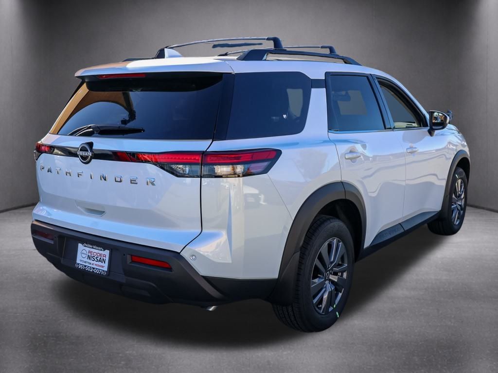 NewThis 2025 Everest White Pearl Tricoat Nissan Pathfinder SV FWD is well equipped and includes these features and benefits: 3rd row seats: bench, 4-Wheel Disc Brakes, 6 Speakers, ABS brakes, Air Conditioning, Alloy wheels, AM/FM radio: SiriusXM, Auto High-beam Headlights, Automatic temperature control, Bench Seat Carpeted Floor Mats (set of 4), Brake assist, Bumpers: body-color, Cloth Seating Surfaces, Cross Bars, Delay-off headlights, Driver door bin, Driver vanity mirror, Dual front impact airbags, Dual front side impact airbags, Electronic Stability Control, Emergency communication system, Four wheel independent suspension, Front anti-roll bar, Front Bucket Seats, Front Center Armrest, Front dual zone A/C, Front reading lights, Fully automatic headlights, Heated door mirrors, Heated Front Bucket Seats, Heated front seats, Illuminated entry, Knee airbag, Leather steering wheel, Low tire pressure warning, NissanConnect featuring Apple CarPlay and Android Auto, Occupant sensing airbag, Outside temperature display, Overhead airbag, Overhead console, Panic alarm, Passenger door bin, Passenger vanity mirror, Power door mirrors, Power driver seat, Power Liftgate, Power steering, Power windows, Premium Paint, Radio data system, Radio: AM/FM Audio System with NissanConnect, Rear air conditioning, Rear anti-roll bar, Rear Parking Sensors, Rear reading lights, Rear seat center armrest, Rear side impact airbag, Rear window defroster, Rear window wiper, Reclining 3rd row seat, Remote keyless entry, Security system, Speed control, Speed-sensing steering, Split folding rear seat, Spoiler, Steering wheel mounted audio controls, Tachometer, Telescoping steering wheel, Tilt steering wheel, Traction control, Trip computer, Turn signal indicator mirrors, Variably intermittent wipers, and Wheels: 18″ x 8J Painted Alloy Plus 3 Month 3000 Mile Warranty. See Dealer For Details. Apple Car Play/Android Auto, Automatic Climate Control, Backup Camera.20/27 City/Highway MPG• MSRP is the Manufacturer’s Suggested Retail Price, which is not necessarily the sale price and is not the advertised price. For specific pricing information, please contact Pedder Nissan at (951) 766-1446. Price does include: • The Advertised Price for any/all vehicles offered for sale does not include dealer installed accessories. These accessories can be purchased for an additional cost. Price does include: • All vehicles subject to prior sale. All prices plus government fees and taxes, any finance charges, any dealer document processing charges ($85), any electronic filing charge, and any emission testing charge. Offers and prices not available to other dealers, wholesalers, or brokers. For out of state purchase customers, customers must be present to purchase. If shipping is required, dealership must facilitate; no exceptions. Special financing in lieu of any rebates. This price may not be combined with any other offer. Price does include: • All information is believed to be accurate but is not guaranteed. For accurate pricing, mileage, availability, options, etc, please contact Pedder Nissan at (951) 766-1446. The sales price includes factory rebates and trade in incentives on this vehicle that are valid on a cash or financed purchase only by an individual for their personal use. All prices will be honored as cash. The sale price does not apply to a lease. The factory rebates may not be available on this vehicle if you elect to take advantage of a Special Alternative APR or Special Lease program. Some Factory Rebates and trade in incentives are California Resident specific and may be qualifying based and they may also vary for residents of other states. Applicable Trade in Incentives and Manufacturer Rebate and Expiration Breakdown’s for this vehicle are as follows. Price does include:$500 – Nissan Conditional Offer – Military Discount. Exp. 02/02/2026