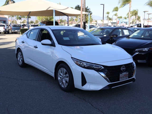 NewThis 2025 Fresh Powder Nissan Sentra S FWD is well equipped and includes these features and benefits: CVT with Xtronic, Charcoal Cloth, 16″ Steel Wheels w/Full Wheel Covers, 4 Speakers, ABS brakes, Air Conditioning, AM/FM radio, Auto High-beam Headlights, Blind Spot Warning, Body Colored Splash Guards (4-Piece), Brake assist, Bumpers: body-color, Carpeted Floor Mats w/Trunk Mat, Clear Rear Bumper Protector, Cloth Seat Trim, Delay-off headlights, Driver door bin, Driver vanity mirror, Dual front impact airbags, Dual front side impact airbags, Electronic Stability Control, Four wheel independent suspension, Front anti-roll bar, Front Bucket Seats, Front Center Armrest, Front reading lights, Fully automatic headlights, Illuminated entry, Knee airbag, Low tire pressure warning, NissanConnect featuring Apple CarPlay and Android Auto, Occupant sensing airbag, Outside temperature display, Overhead airbag, Overhead console, Panic alarm, Passenger door bin, Passenger vanity mirror, Power door mirrors, Power steering, Power windows, Radio data system, Radio: AM/FM w/RDS/MP3/Aux-In, Rear anti-roll bar, Rear Parking Sensors, Rear side impact airbag, Rear window defroster, Remote keyless entry, Speed control, Speed-sensing steering, Split folding rear seat, Steering wheel mounted audio controls, Tachometer, Telescoping steering wheel, Tilt steering wheel, Traction control, Trip computer, and Variably intermittent wipers Plus 3 Month 3000 Mile Warranty. See Dealer For Details. Apple Car Play/Android Auto, Automatic Climate Control, Backup Camera, CVT with Xtronic, Charcoal Cloth.30/40 City/Highway MPG• MSRP is the Manufacturer’s Suggested Retail Price, which is not necessarily the sale price and is not the advertised price. For specific pricing information, please contact Pedder Nissan at (951) 766-1446. Price does include: • The Advertised Price for any/all vehicles offered for sale does not include dealer installed accessories. These accessories can be purchased for an additional cost. Price does include: • All vehicles subject to prior sale. All prices plus government fees and taxes, any finance charges, any dealer document processing charges ($85), any electronic filing charge, and any emission testing charge. Offers and prices not available to other dealers, wholesalers, or brokers. For out of state purchase customers, customers must be present to purchase. If shipping is required, dealership must facilitate; no exceptions. Special financing in lieu of any rebates. This price may not be combined with any other offer. Price does include: • All information is believed to be accurate but is not guaranteed. For accurate pricing, mileage, availability, options, etc, please contact Pedder Nissan at (951) 766-1446. The sales price includes factory rebates and trade in incentives on this vehicle that are valid on a cash or financed purchase only by an individual for their personal use. All prices will be honored as cash. The sale price does not apply to a lease. The factory rebates may not be available on this vehicle if you elect to take advantage of a Special Alternative APR or Special Lease program. Some Factory Rebates and trade in incentives are California Resident specific and may be qualifying based and they may also vary for residents of other states. Applicable Trade in Incentives and Manufacturer Rebate and Expiration Breakdown’s for this vehicle are as follows. Price does include:$500 – Nissan MY25 Sentra Bonus Cash. Exp. 12/01/2025