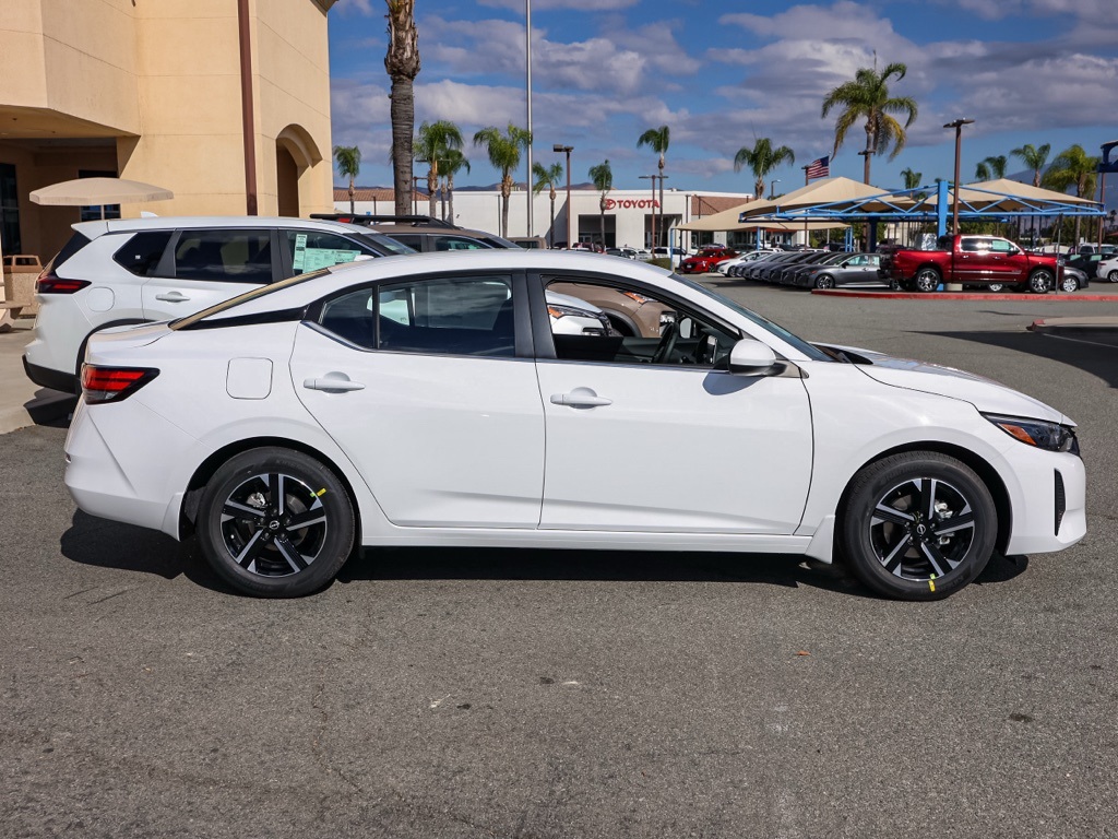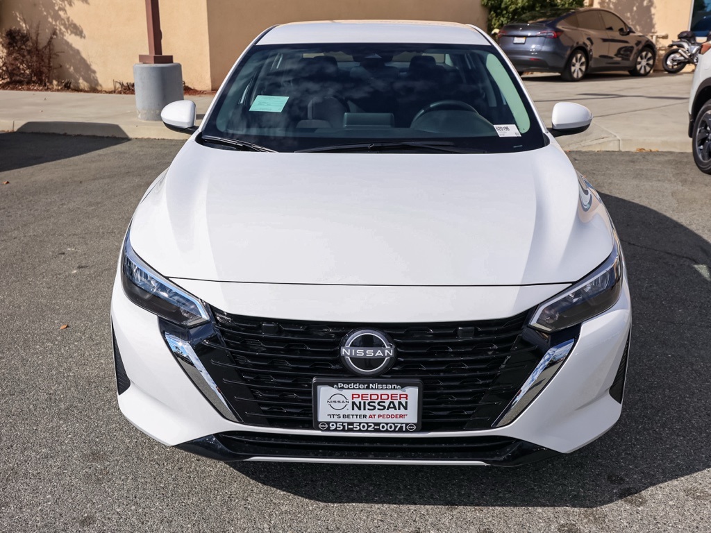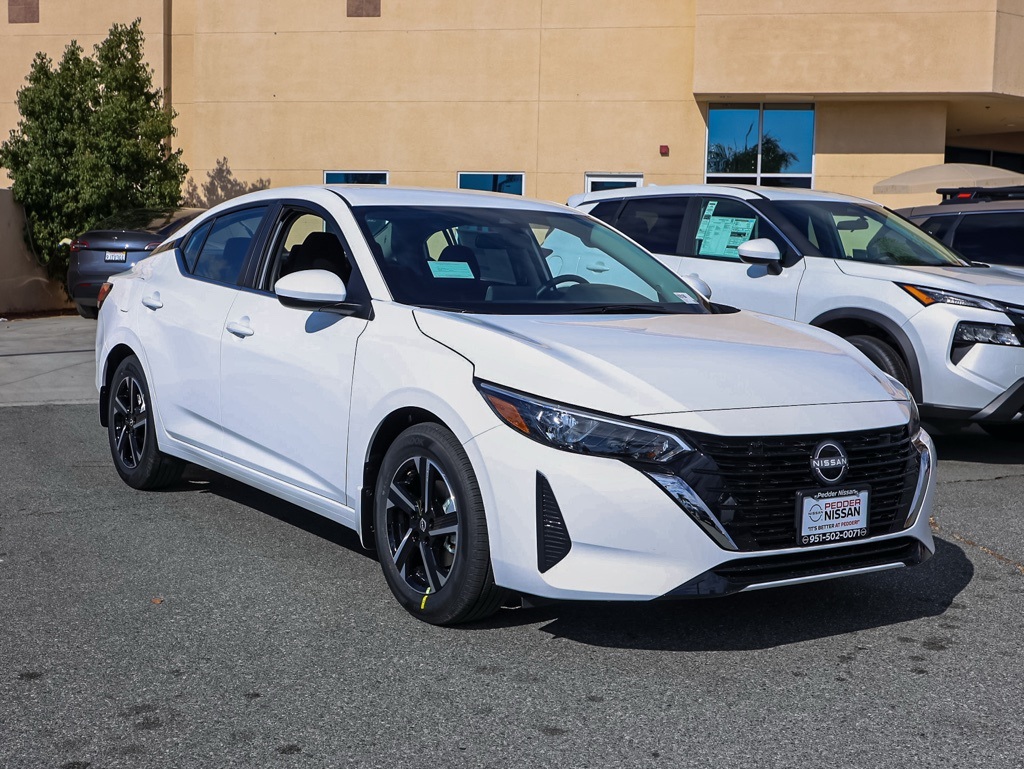 This 2025 Fresh Powder Nissan Sentra SV FWD is well equipped and includes these features and benefits: CVT with Xtronic, Charcoal Cloth, 16″ Alloy Wheels, 4-Wheel Disc Brakes, 8 Speakers, ABS brakes, Air Conditioning, Alloy wheels, AM/FM radio: SiriusXM, Auto High-beam Headlights, Blind Spot Warning, Body Colored Splash Guards (4-Piece), Brake assist, Bumpers: body-color, Carpeted Floor Mats w/Trunk Mat, Clear Rear Bumper Protector, Delay-off headlights, Door Sill Plates, Driver door bin, Driver vanity mirror, Dual front impact airbags, Dual front side impact airbags, Electronic Stability Control, Four wheel independent suspension, Front anti-roll bar, Front Bucket Seats, Front Center Armrest, Front reading lights, Fully automatic headlights, Illuminated entry, Knee airbag, Low tire pressure warning, NissanConnect featuring Apple CarPlay and Android Auto, Occupant sensing airbag, Outside temperature display, Overhead airbag, Overhead console, Panic alarm, Passenger door bin, Passenger vanity mirror, Power door mirrors, Power steering, Power windows, Radio data system, Radio: AM/FM w/RDS/MP3/Aux-In, Rear anti-roll bar, Rear Parking Sensors, Rear side impact airbag, Rear window defroster, Remote keyless entry, Security system, Speed control, Speed-sensing steering, Split folding rear seat, Steering wheel mounted audio controls, Tachometer, Telescoping steering wheel, Tilt steering wheel, Traction control, Trip computer, Upgraded Cloth Seat Trim, and Variably intermittent wipers Plus 3 Month 3000 Mile Warranty. See Dealer For Details. Apple Car Play/Android Auto, Automatic Climate Control, Backup Camera, CVT with Xtronic, Charcoal Cloth.30/40 City/Highway MPG• MSRP is the Manufacturer’s Suggested Retail Price, which is not necessarily the sale price and is not the advertised price. For specific pricing information, please contact Pedder Nissan at (951) 766-1446. Price does include: • The Advertised Price for any/all vehicles offered for sale does not include dealer installed accessories. These accessories can be purchased for an additional cost. Price does include: • All vehicles subject to prior sale. All prices plus government fees and taxes, any finance charges, any dealer document processing charges ($85), any electronic filing charge, and any emission testing charge. Offers and prices not available to other dealers, wholesalers, or brokers. For out of state purchase customers, customers must be present to purchase. If shipping is required, dealership must facilitate; no exceptions. Special financing in lieu of any rebates. This price may not be combined with any other offer. Price does include: • All information is believed to be accurate but is not guaranteed. For accurate pricing, mileage, availability, options, etc, please contact Pedder Nissan at (951) 766-1446. The sales price includes factory rebates and trade in incentives on this vehicle that are valid on a cash or financed purchase only by an individual for their personal use. All prices will be honored as cash. The sale price does not apply to a lease. The factory rebates may not be available on this vehicle if you elect to take advantage of a Special Alternative APR or Special Lease program. Some Factory Rebates and trade in incentives are California Resident specific and may be qualifying based and they may also vary for residents of other states. Applicable Trade in Incentives and Manufacturer Rebate and Expiration Breakdown’s for this vehicle are as follows.  Price does include:$500 – Nissan MY25 Sentra Bonus Cash. Exp. 12/01/2025 $750 – Nissan WR LA MY25 Sentra (Excl. S) Customer Cash – November. Exp. 12/01/2025