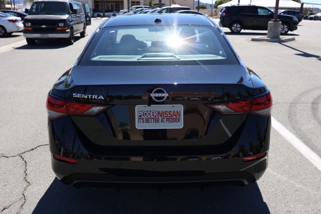NewThis 2025 Super Black Nissan Sentra SV FWD is well equipped and includes these features and benefits: CVT with Xtronic, Charcoal Cloth, 16″ Alloy Wheels, 4-Wheel Disc Brakes, 8 Speakers, ABS brakes, Air Conditioning, Alloy wheels, AM/FM radio: SiriusXM, Auto High-beam Headlights, Blind Spot Warning, Body Colored Splash Guards (4-Piece), Brake assist, Bumpers: body-color, Carpeted Floor Mats w/Trunk Mat, Clear Rear Bumper Protector, Delay-off headlights, Door Sill Plates, Driver door bin, Driver vanity mirror, Dual front impact airbags, Dual front side impact airbags, Electronic Stability Control, Four wheel independent suspension, Front anti-roll bar, Front Bucket Seats, Front Center Armrest, Front reading lights, Fully automatic headlights, Illuminated entry, Knee airbag, Low tire pressure warning, NissanConnect featuring Apple CarPlay and Android Auto, Occupant sensing airbag, Outside temperature display, Overhead airbag, Overhead console, Panic alarm, Passenger door bin, Passenger vanity mirror, Power door mirrors, Power steering, Power windows, Radio data system, Radio: AM/FM w/RDS/MP3/Aux-In, Rear anti-roll bar, Rear Parking Sensors, Rear side impact airbag, Rear window defroster, Remote keyless entry, Security system, Speed control, Speed-sensing steering, Split folding rear seat, Steering wheel mounted audio controls, Tachometer, Telescoping steering wheel, Tilt steering wheel, Traction control, Trip computer, Upgraded Cloth Seat Trim, and Variably intermittent wipers Plus 3 Month 3000 Mile Warranty. See Dealer For Details. Apple Car Play/Android Auto, Automatic Climate Control, Backup Camera, CVT with Xtronic, Charcoal Cloth.30/40 City/Highway MPG• MSRP is the Manufacturer’s Suggested Retail Price, which is not necessarily the sale price and is not the advertised price. For specific pricing information, please contact Pedder Nissan at (951) 766-1446. Price does include: • The Advertised Price for any/all vehicles offered for sale does not include dealer installed accessories. These accessories can be purchased for an additional cost. Price does include: • All vehicles subject to prior sale. All prices plus government fees and taxes, any finance charges, any dealer document processing charges ($85), any electronic filing charge, and any emission testing charge. Offers and prices not available to other dealers, wholesalers, or brokers. For out of state purchase customers, customers must be present to purchase. If shipping is required, dealership must facilitate; no exceptions. Special financing in lieu of any rebates. This price may not be combined with any other offer. Price does include: • All information is believed to be accurate but is not guaranteed. For accurate pricing, mileage, availability, options, etc, please contact Pedder Nissan at (951) 766-1446. The sales price includes factory rebates and trade in incentives on this vehicle that are valid on a cash or financed purchase only by an individual for their personal use. All prices will be honored as cash. The sale price does not apply to a lease. The factory rebates may not be available on this vehicle if you elect to take advantage of a Special Alternative APR or Special Lease program. Some Factory Rebates and trade in incentives are California Resident specific and may be qualifying based and they may also vary for residents of other states. Applicable Trade in Incentives and Manufacturer Rebate and Expiration Breakdown’s for this vehicle are as follows. Price does include:$500 – Nissan MY25 Sentra Bonus Cash. Exp. 11/03/2025 $750 – Nissan Los Angeles – MY25 Sentra (Excl S) Customer Cash – October. Exp. 11/03/2025