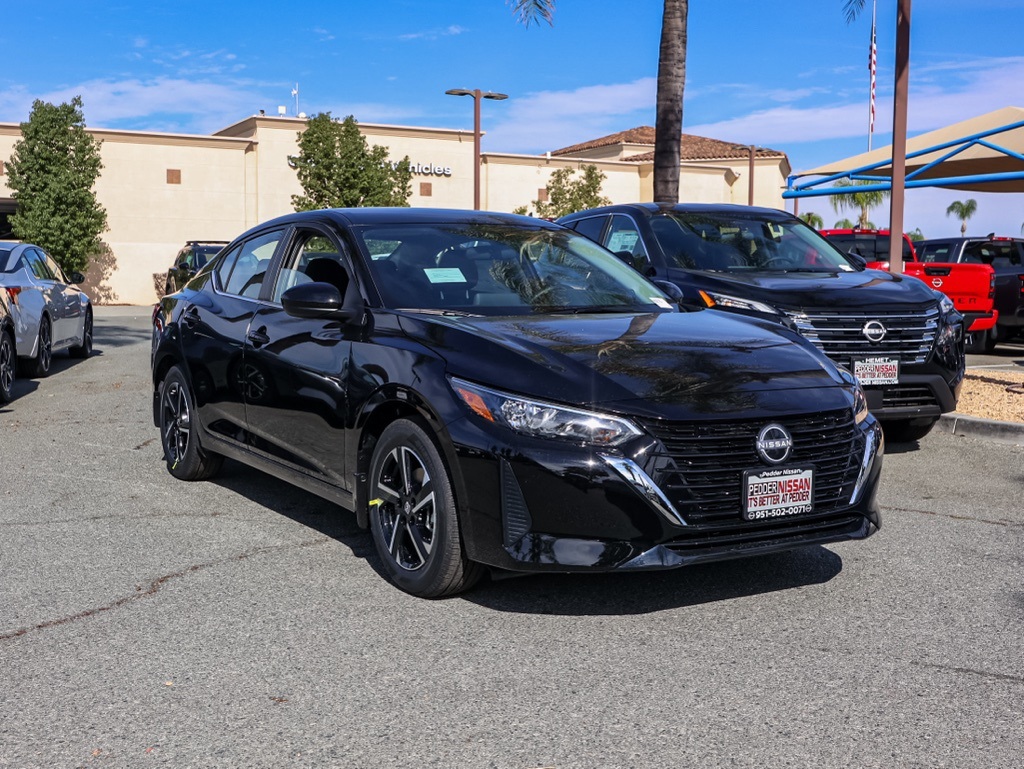 This 2025 Super Black Nissan Sentra SV FWD is well equipped and includes these features and benefits: CVT with Xtronic, Charcoal Cloth, 16″ Alloy Wheels, 4-Wheel Disc Brakes, 8 Speakers, ABS brakes, Air Conditioning, Alloy wheels, AM/FM radio: SiriusXM, Auto High-beam Headlights, Blind Spot Warning, Body Colored Splash Guards (4-Piece), Brake assist, Bumpers: body-color, Carpeted Floor Mats w/Trunk Mat, Clear Rear Bumper Protector, Delay-off headlights, Door Sill Plates, Driver door bin, Driver vanity mirror, Dual front impact airbags, Dual front side impact airbags, Electronic Stability Control, Four wheel independent suspension, Front anti-roll bar, Front Bucket Seats, Front Center Armrest, Front reading lights, Fully automatic headlights, Illuminated entry, Knee airbag, Low tire pressure warning, NissanConnect featuring Apple CarPlay and Android Auto, Occupant sensing airbag, Outside temperature display, Overhead airbag, Overhead console, Panic alarm, Passenger door bin, Passenger vanity mirror, Power door mirrors, Power steering, Power windows, Radio data system, Radio: AM/FM w/RDS/MP3/Aux-In, Rear anti-roll bar, Rear Parking Sensors, Rear side impact airbag, Rear window defroster, Remote keyless entry, Security system, Speed control, Speed-sensing steering, Split folding rear seat, Steering wheel mounted audio controls, Tachometer, Telescoping steering wheel, Tilt steering wheel, Traction control, Trip computer, Upgraded Cloth Seat Trim, and Variably intermittent wipers Plus 3 Month 3000 Mile Warranty. See Dealer For Details. Apple Car Play/Android Auto, Automatic Climate Control, Backup Camera, CVT with Xtronic, Charcoal Cloth.30/40 City/Highway MPG• MSRP is the Manufacturer’s Suggested Retail Price, which is not necessarily the sale price and is not the advertised price. For specific pricing information, please contact Pedder Nissan at (951) 766-1446. Price does include: • The Advertised Price for any/all vehicles offered for sale does not include dealer installed accessories. These accessories can be purchased for an additional cost. Price does include: • All vehicles subject to prior sale. All prices plus government fees and taxes, any finance charges, any dealer document processing charges ($85), any electronic filing charge, and any emission testing charge. Offers and prices not available to other dealers, wholesalers, or brokers. For out of state purchase customers, customers must be present to purchase. If shipping is required, dealership must facilitate; no exceptions. Special financing in lieu of any rebates. This price may not be combined with any other offer. Price does include: • All information is believed to be accurate but is not guaranteed. For accurate pricing, mileage, availability, options, etc, please contact Pedder Nissan at (951) 766-1446. The sales price includes factory rebates and trade in incentives on this vehicle that are valid on a cash or financed purchase only by an individual for their personal use. All prices will be honored as cash. The sale price does not apply to a lease. The factory rebates may not be available on this vehicle if you elect to take advantage of a Special Alternative APR or Special Lease program. Some Factory Rebates and trade in incentives are California Resident specific and may be qualifying based and they may also vary for residents of other states. Applicable Trade in Incentives and Manufacturer Rebate and Expiration Breakdown’s for this vehicle are as follows.  Price does include:$500 – Nissan MY25 Sentra Bonus Cash. Exp. 12/01/2025 $750 – Nissan WR LA MY25 Sentra (Excl. S) Customer Cash – November. Exp. 12/01/2025