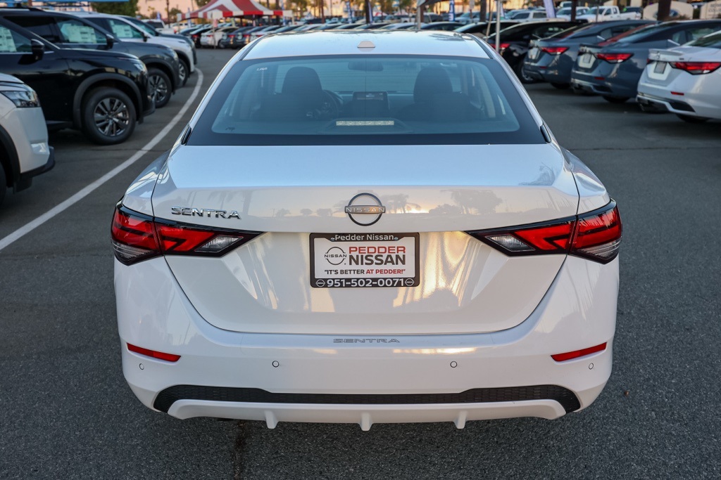 NewThis 2025 Fresh Powder Nissan Sentra SV FWD is well equipped and includes these features and benefits: CVT with Xtronic, Charcoal Cloth, 16″ Alloy Wheels, 4-Wheel Disc Brakes, 8 Speakers, ABS brakes, Air Conditioning, Alloy wheels, AM/FM radio: SiriusXM, Auto High-beam Headlights, Blind Spot Warning, Body Colored Splash Guards (4-Piece), Brake assist, Bumpers: body-color, Carpeted Floor Mats w/Trunk Mat, Clear Rear Bumper Protector, Delay-off headlights, Door Sill Plates, Driver door bin, Driver vanity mirror, Dual front impact airbags, Dual front side impact airbags, Electronic Stability Control, Four wheel independent suspension, Front anti-roll bar, Front Bucket Seats, Front Center Armrest, Front reading lights, Fully automatic headlights, Illuminated entry, Knee airbag, Low tire pressure warning, NissanConnect featuring Apple CarPlay and Android Auto, Occupant sensing airbag, Outside temperature display, Overhead airbag, Overhead console, Panic alarm, Passenger door bin, Passenger vanity mirror, Power door mirrors, Power steering, Power windows, Radio data system, Radio: AM/FM w/RDS/MP3/Aux-In, Rear anti-roll bar, Rear Parking Sensors, Rear side impact airbag, Rear window defroster, Remote keyless entry, Security system, Speed control, Speed-sensing steering, Split folding rear seat, Steering wheel mounted audio controls, Tachometer, Telescoping steering wheel, Tilt steering wheel, Traction control, Trip computer, Upgraded Cloth Seat Trim, and Variably intermittent wipers Plus 3 Month 3000 Mile Warranty. See Dealer For Details. Apple Car Play/Android Auto, Automatic Climate Control, Backup Camera, CVT with Xtronic, Charcoal Cloth.30/40 City/Highway MPG• MSRP is the Manufacturer’s Suggested Retail Price, which is not necessarily the sale price and is not the advertised price. For specific pricing information, please contact Pedder Nissan at (951) 766-1446. Price does include: • The Advertised Price for any/all vehicles offered for sale does not include dealer installed accessories. These accessories can be purchased for an additional cost. Price does include: • All vehicles subject to prior sale. All prices plus government fees and taxes, any finance charges, any dealer document processing charges ($85), any electronic filing charge, and any emission testing charge. Offers and prices not available to other dealers, wholesalers, or brokers. For out of state purchase customers, customers must be present to purchase. If shipping is required, dealership must facilitate; no exceptions. Special financing in lieu of any rebates. This price may not be combined with any other offer. Price does include: • All information is believed to be accurate but is not guaranteed. For accurate pricing, mileage, availability, options, etc, please contact Pedder Nissan at (951) 766-1446. The sales price includes factory rebates and trade in incentives on this vehicle that are valid on a cash or financed purchase only by an individual for their personal use. All prices will be honored as cash. The sale price does not apply to a lease. The factory rebates may not be available on this vehicle if you elect to take advantage of a Special Alternative APR or Special Lease program. Some Factory Rebates and trade in incentives are California Resident specific and may be qualifying based and they may also vary for residents of other states. Applicable Trade in Incentives and Manufacturer Rebate and Expiration Breakdown’s for this vehicle are as follows. Price does include:$500 – Nissan MY25 Sentra Bonus Cash. Exp. 11/03/2025 $750 – Nissan Los Angeles – MY25 Sentra (Excl S) Customer Cash – October. Exp. 11/03/2025