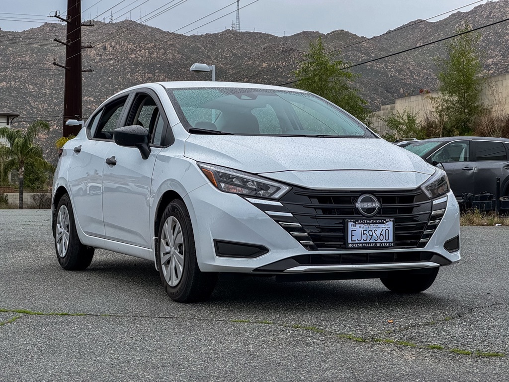 NewFresh Powder 2025 Nissan Versa 1.6 S FWD CVT 1.6L I4 DOHC 16V Automatic Climate Control, Backup Camera.This 2025 Fresh Powder Nissan Versa 1.6 S FWD is well equipped and includes these features and benefits: Trunk Package (Shopping Bag Hooks and Trunk Net), 15″ Steel Wheels w/Full Wheel Covers, 4 Speakers, ABS brakes, Air Conditioning, AM/FM radio, Armrest, Auto High-beam Headlights, Brake assist, Bumpers: body-color, Carpeted Floor Mats, Cloth Seat Trim, Delay-off headlights, Driver door bin, Driver vanity mirror, Dual front impact airbags, Dual front side impact airbags, Electronic Stability Control, Front anti-roll bar, Front Bucket Seats, Front reading lights, Front wheel independent suspension, Fully automatic headlights, Illuminated entry, Knee airbag, Low tire pressure warning, Occupant sensing airbag, Outside temperature display, Overhead airbag, Panic alarm, Passenger door bin, Passenger vanity mirror, Power door mirrors, Power steering, Power windows, Radio data system, Radio: AM/FM Audio System, Rear Parking Sensors, Rear side impact airbag, Rear window defroster, Speed control, Splash Guards, Steering wheel mounted audio controls, Tachometer, Telescoping steering wheel, Tilt steering wheel, Traction control, Trip computer, and Variably intermittent wipers. 32/40 City/Highway MPGWe have many different makes and models available including a wide selection of cars, trucks, vans, and SUVs. Raceway Nissan in Riverside County has access to thousands of new and used vehicles which means we can find the right vehicle for you and your family. We are proud to serve the city of Riverside, all of the Metro Riverside County area, and the Inland Empire from our location in Moreno Valley. We are conveniently located in Riverside near the cities of San Bernardino, Redlands, Ontario, Corona, Perris, Beaumont, Temecula, Hemet and many others. We offer military discounts and work with many Credit Unions. Photos & equipment shown are for informational purposes & reflect factory stock features actual vehicle features may differ. All information including pricing and availability is believed accurate but not guaranteed. Net cost price includes applicable rebates and incentives for which not all customers may qualify. Rebates and incentives may vary by residency, financing, and other factors and are subject to change or expiration without notice. For the most current details on pricing, rebates & eligibility contact Temecula Nissan at 951-972-8441. Price Includes: $500 – Nissan Conditional Offer – Military Discount. Exp. 02/02/2026 $750 – Nissan MY25 Versa Bonus Cash. Exp. 02/02/2026