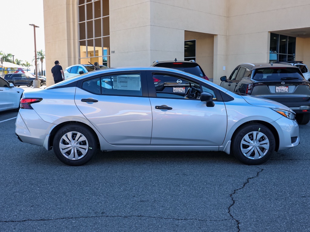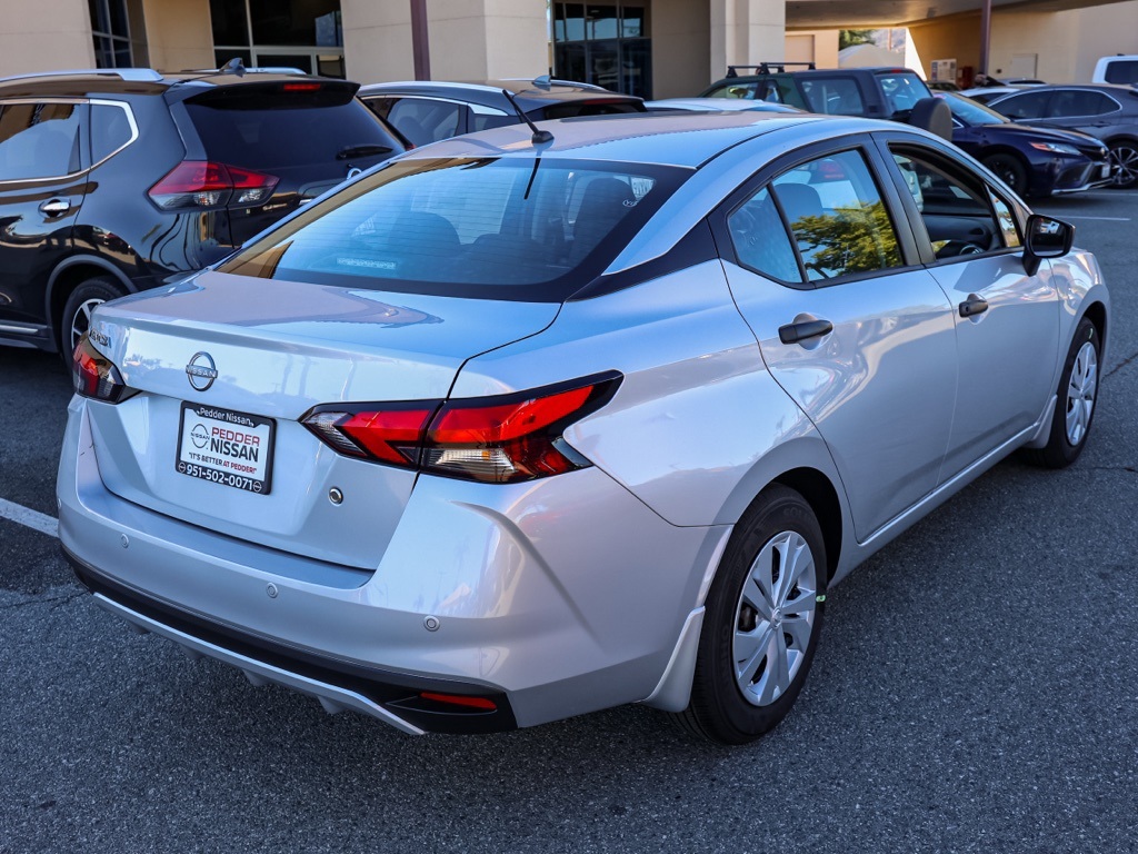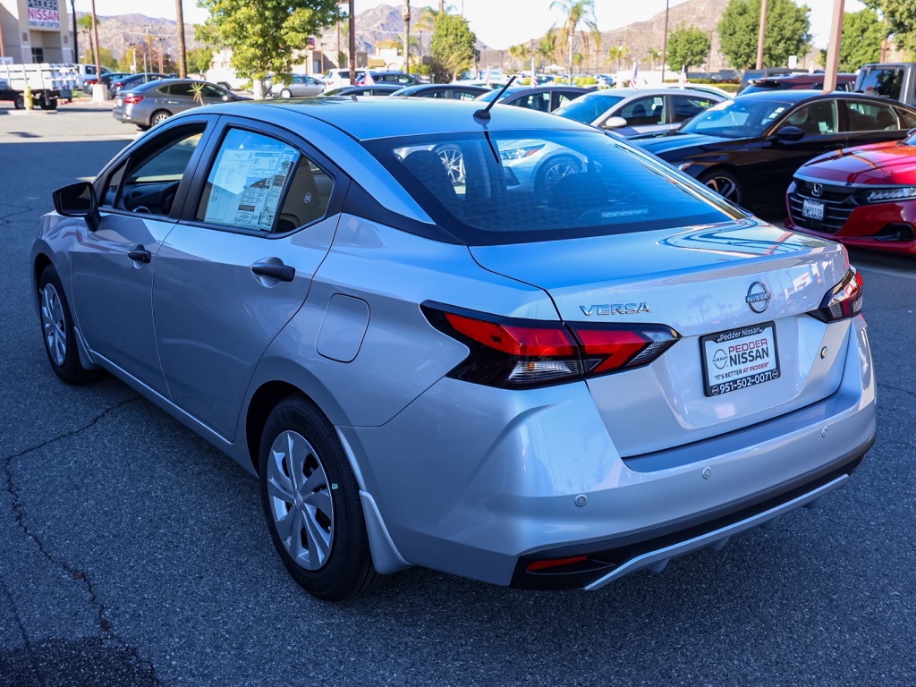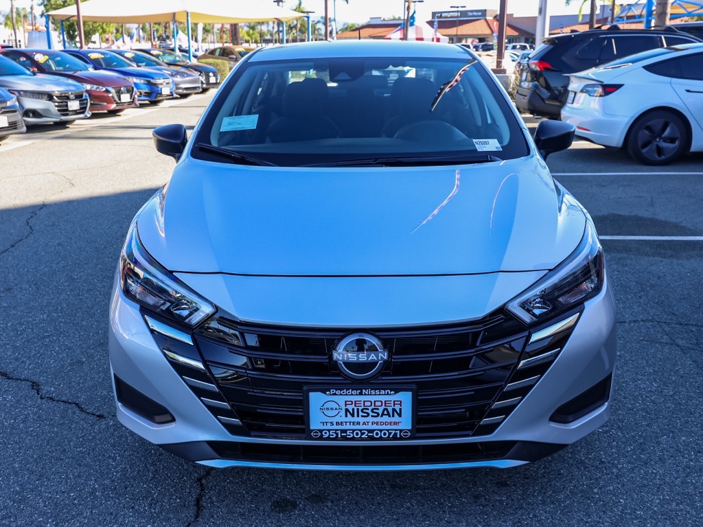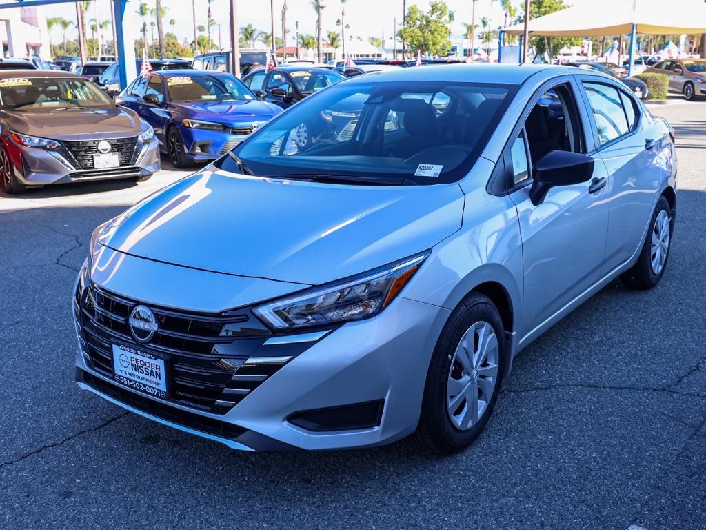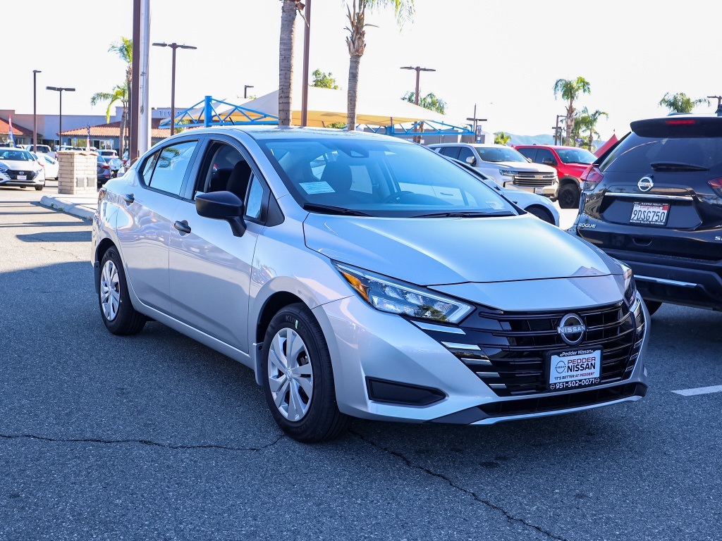 NewThis 2025 Brilliant Silver Metallic Nissan Versa 1.6 S FWD is well equipped and includes these features and benefits: Trunk Package (Shopping Bag Hooks and Trunk Net), 15″ Steel Wheels w/Full Wheel Covers, 4 Speakers, ABS brakes, Air Conditioning, AM/FM radio, Auto High-beam Headlights, Brake assist, Bumpers: body-color, Carpeted Floor Mats, Cloth Seat Trim, Delay-off headlights, Driver door bin, Driver vanity mirror, Dual front impact airbags, Dual front side impact airbags, Electronic Stability Control, Front anti-roll bar, Front Bucket Seats, Front reading lights, Front wheel independent suspension, Fully automatic headlights, Illuminated entry, Knee airbag, Low tire pressure warning, Occupant sensing airbag, Outside temperature display, Overhead airbag, Panic alarm, Passenger door bin, Passenger vanity mirror, Power door mirrors, Power steering, Power windows, Radio data system, Radio: AM/FM Audio System, Rear Parking Sensors, Rear side impact airbag, Rear window defroster, Speed control, Splash Guards, Steering wheel mounted audio controls, Tachometer, Telescoping steering wheel, Tilt steering wheel, Traction control, Trip computer, and Variably intermittent wipers Plus 3 Month 3000 Mile Warranty. See Dealer For Details. Apple Car Play/Android Auto, Automatic Climate Control, Backup Camera.32/40 City/Highway MPG• MSRP is the Manufacturer’s Suggested Retail Price, which is not necessarily the sale price and is not the advertised price. For specific pricing information, please contact Pedder Nissan at (951) 766-1446. Price does include: • The Advertised Price for any/all vehicles offered for sale does not include dealer installed accessories. These accessories can be purchased for an additional cost. Price does include: • All vehicles subject to prior sale. All prices plus government fees and taxes, any finance charges, any dealer document processing charges ($85), any electronic filing charge, and any emission testing charge. Offers and prices not available to other dealers, wholesalers, or brokers. For out of state purchase customers, customers must be present to purchase. If shipping is required, dealership must facilitate; no exceptions. Special financing in lieu of any rebates. This price may not be combined with any other offer. Price does include: • All information is believed to be accurate but is not guaranteed. For accurate pricing, mileage, availability, options, etc, please contact Pedder Nissan at (951) 766-1446. The sales price includes factory rebates and trade in incentives on this vehicle that are valid on a cash or financed purchase only by an individual for their personal use. All prices will be honored as cash. The sale price does not apply to a lease. The factory rebates may not be available on this vehicle if you elect to take advantage of a Special Alternative APR or Special Lease program. Some Factory Rebates and trade in incentives are California Resident specific and may be qualifying based and they may also vary for residents of other states. Applicable Trade in Incentives and Manufacturer Rebate and Expiration Breakdown’s for this vehicle are as follows. Price does include:$750 – Nissan MY25 Versa Bonus Cash (All Markets) – November. Exp. 12/01/2025