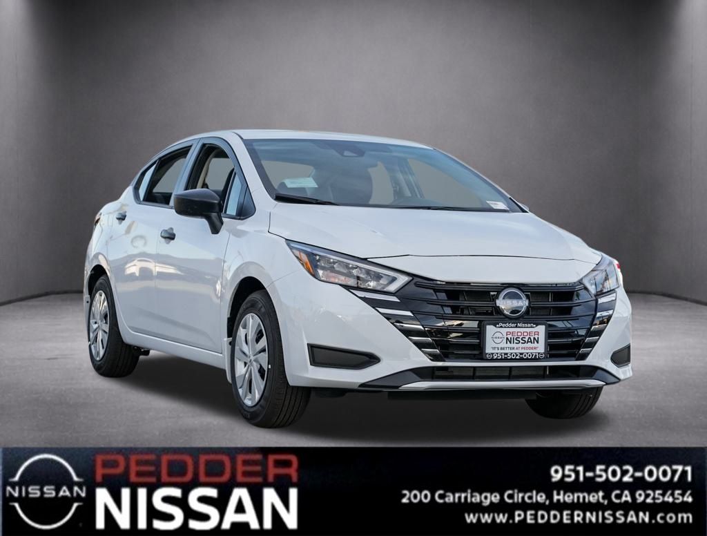 NewThis 2025 Fresh Powder Nissan Versa 1.6 S FWD is well equipped and includes these features and benefits: Trunk Package (Shopping Bag Hooks and Trunk Net), 15″ Steel Wheels w/Full Wheel Covers, 4 Speakers, ABS brakes, Air Conditioning, AM/FM radio, Auto High-beam Headlights, Brake assist, Bumpers: body-color, Carpeted Floor Mats, Cloth Seat Trim, Delay-off headlights, Driver door bin, Driver vanity mirror, Dual front impact airbags, Dual front side impact airbags, Electronic Stability Control, Front anti-roll bar, Front Bucket Seats, Front reading lights, Front wheel independent suspension, Fully automatic headlights, Illuminated entry, Knee airbag, Low tire pressure warning, Occupant sensing airbag, Outside temperature display, Overhead airbag, Panic alarm, Passenger door bin, Passenger vanity mirror, Power door mirrors, Power steering, Power windows, Radio data system, Radio: AM/FM Audio System, Rear Parking Sensors, Rear side impact airbag, Rear window defroster, Speed control, Splash Guards, Steering wheel mounted audio controls, Tachometer, Telescoping steering wheel, Tilt steering wheel, Traction control, Trip computer, and Variably intermittent wipers Plus 3 Month 3000 Mile Warranty. See Dealer For Details. Apple Car Play/Android Auto, Automatic Climate Control, Backup Camera.32/40 City/Highway MPG• MSRP is the Manufacturer’s Suggested Retail Price, which is not necessarily the sale price and is not the advertised price. For specific pricing information, please contact Pedder Nissan at (951) 766-1446. Price does include: • The Advertised Price for any/all vehicles offered for sale does not include dealer installed accessories. These accessories can be purchased for an additional cost. Price does include: • All vehicles subject to prior sale. All prices plus government fees and taxes, any finance charges, any dealer document processing charges ($85), any electronic filing charge, and any emission testing charge. Offers and prices not available to other dealers, wholesalers, or brokers. For out of state purchase customers, customers must be present to purchase. If shipping is required, dealership must facilitate; no exceptions. Special financing in lieu of any rebates. This price may not be combined with any other offer. Price does include: • All information is believed to be accurate but is not guaranteed. For accurate pricing, mileage, availability, options, etc, please contact Pedder Nissan at (951) 766-1446. The sales price includes factory rebates and trade in incentives on this vehicle that are valid on a cash or financed purchase only by an individual for their personal use. All prices will be honored as cash. The sale price does not apply to a lease. The factory rebates may not be available on this vehicle if you elect to take advantage of a Special Alternative APR or Special Lease program. Some Factory Rebates and trade in incentives are California Resident specific and may be qualifying based and they may also vary for residents of other states. Applicable Trade in Incentives and Manufacturer Rebate and Expiration Breakdown’s for this vehicle are as follows. Price does include:$500 – Nissan Conditional Offer – Military Discount. Exp. 02/02/2026 $750 – Nissan MY25 Versa Bonus Cash. Exp. 02/02/2026