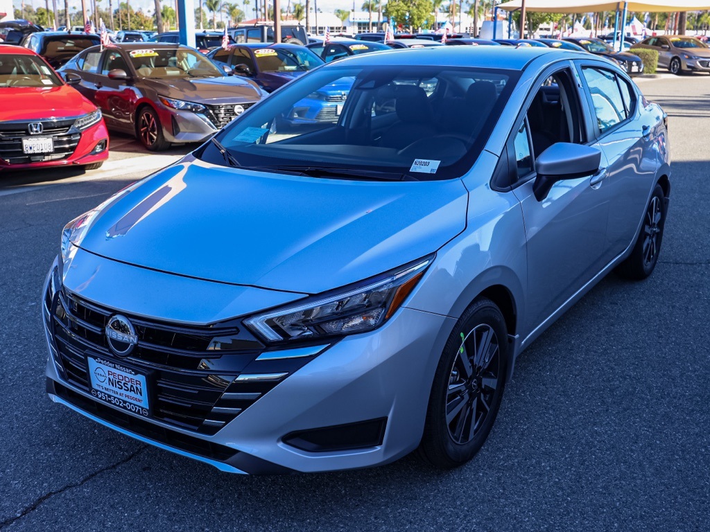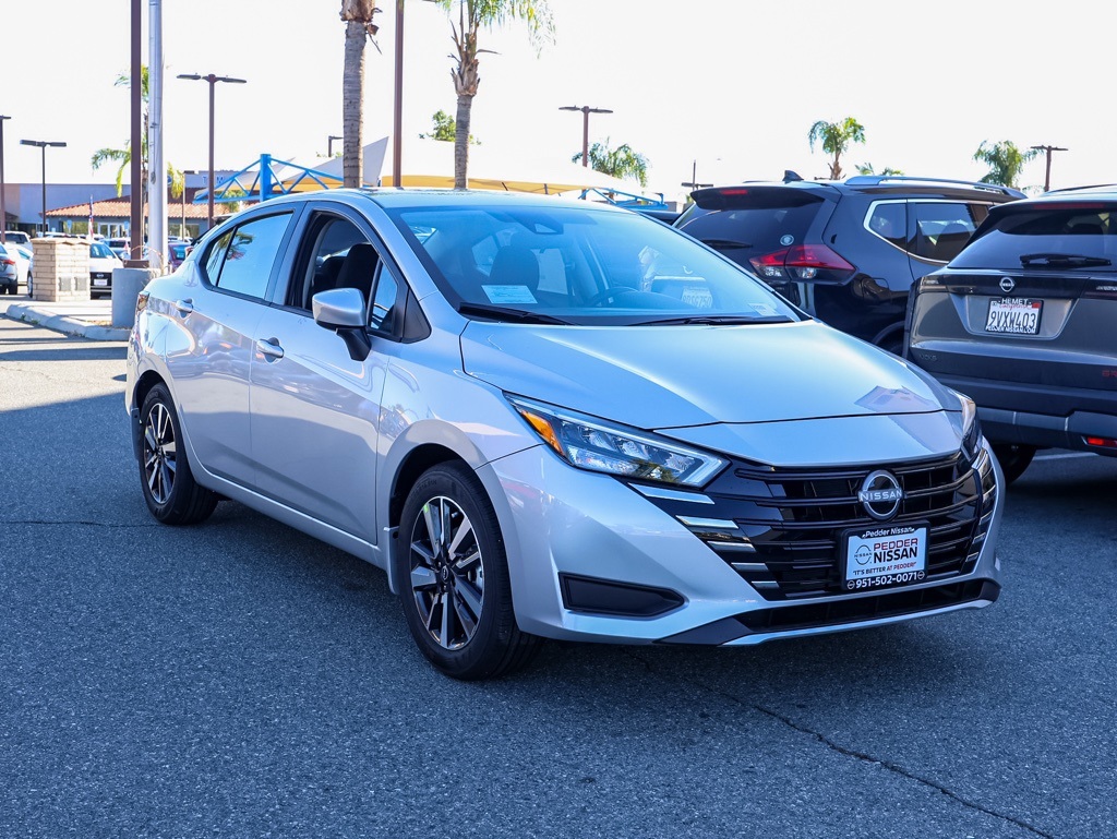 NewThis 2025 Brilliant Silver Metallic Nissan Versa 1.6 SV FWD is well equipped and includes these features and benefits: Trunk Package (Shopping Bag Hooks and Trunk Net), 16″ Aluminum Alloy Wheels, 4 Speakers, ABS brakes, Air Conditioning, Alloy wheels, Apple CarPlay/Android Auto, Auto High-beam Headlights, Blind Spot Warning, Brake assist, Bumpers: body-color, Carpeted Floor Mats & Trunk Mat (5-Piece Set), Delay-off headlights, Driver door bin, Driver vanity mirror, Dual front impact airbags, Dual front side impact airbags, Electronic Stability Control, Front anti-roll bar, Front Bucket Seats, Front Center Armrest, Front reading lights, Front wheel independent suspension, Fully automatic headlights, Heated door mirrors, Illuminated entry, Knee airbag, Low tire pressure warning, Occupant sensing airbag, Outside temperature display, Overhead airbag, Panic alarm, Passenger door bin, Passenger vanity mirror, Power door mirrors, Power steering, Power windows, Radio data system, Radio: AM/FM Audio System, Rear Parking Sensors, Rear side impact airbag, Rear window defroster, Remote keyless entry, Speed control, Splash Guards, Split folding rear seat, Steering wheel mounted audio controls, Tachometer, Telescoping steering wheel, Tilt steering wheel, Traction control, Trip computer, Upgraded Cloth Seat Trim, and Variably intermittent wipers Plus 3 Month 3000 Mile Warranty. See Dealer For Details. Apple Car Play/Android Auto, Automatic Climate Control, Backup Camera.32/40 City/Highway MPG• MSRP is the Manufacturer’s Suggested Retail Price, which is not necessarily the sale price and is not the advertised price. For specific pricing information, please contact Pedder Nissan at (951) 766-1446. Price does include: • The Advertised Price for any/all vehicles offered for sale does not include dealer installed accessories. These accessories can be purchased for an additional cost. Price does include: • All vehicles subject to prior sale. All prices plus government fees and taxes, any finance charges, any dealer document processing charges ($85), any electronic filing charge, and any emission testing charge. Offers and prices not available to other dealers, wholesalers, or brokers. For out of state purchase customers, customers must be present to purchase. If shipping is required, dealership must facilitate; no exceptions. Special financing in lieu of any rebates. This price may not be combined with any other offer. Price does include: • All information is believed to be accurate but is not guaranteed. For accurate pricing, mileage, availability, options, etc, please contact Pedder Nissan at (951) 766-1446. The sales price includes factory rebates and trade in incentives on this vehicle that are valid on a cash or financed purchase only by an individual for their personal use. All prices will be honored as cash. The sale price does not apply to a lease. The factory rebates may not be available on this vehicle if you elect to take advantage of a Special Alternative APR or Special Lease program. Some Factory Rebates and trade in incentives are California Resident specific and may be qualifying based and they may also vary for residents of other states. Applicable Trade in Incentives and Manufacturer Rebate and Expiration Breakdown’s for this vehicle are as follows. Price does include:$750 – Nissan MY25 Versa Bonus Cash (All Markets) – November. Exp. 12/01/2025