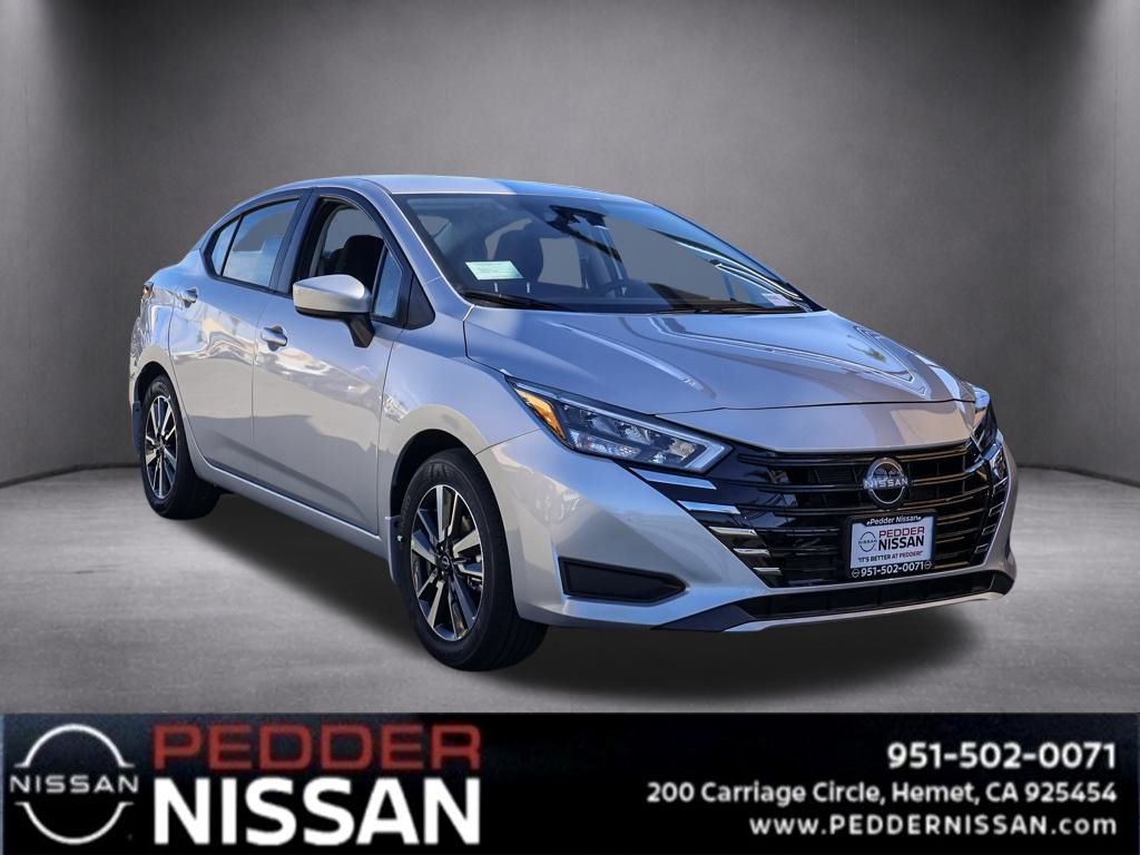 NewThis 2025 Brilliant Silver Metallic Nissan Versa 1.6 SV FWD is well equipped and includes these features and benefits: Trunk Package (Shopping Bag Hooks and Trunk Net), 16″ Aluminum Alloy Wheels, 4 Speakers, ABS brakes, Air Conditioning, Alloy wheels, Apple CarPlay/Android Auto, Auto High-beam Headlights, Blind Spot Warning, Brake assist, Bumpers: body-color, Carpeted Floor Mats & Trunk Mat (5-Piece Set), Delay-off headlights, Driver door bin, Driver vanity mirror, Dual front impact airbags, Dual front side impact airbags, Electronic Stability Control, Front anti-roll bar, Front Bucket Seats, Front Center Armrest, Front reading lights, Front wheel independent suspension, Fully automatic headlights, Heated door mirrors, Illuminated entry, Knee airbag, Low tire pressure warning, Occupant sensing airbag, Outside temperature display, Overhead airbag, Panic alarm, Passenger door bin, Passenger vanity mirror, Power door mirrors, Power steering, Power windows, Radio data system, Radio: AM/FM Audio System, Rear Parking Sensors, Rear side impact airbag, Rear window defroster, Remote keyless entry, Speed control, Splash Guards, Split folding rear seat, Steering wheel mounted audio controls, Tachometer, Telescoping steering wheel, Tilt steering wheel, Traction control, Trip computer, Upgraded Cloth Seat Trim, USB Charging Cable Set, and Variably intermittent wipers Plus 3 Month 3000 Mile Warranty. See Dealer For Details. Apple Car Play/Android Auto, Automatic Climate Control, Backup Camera.32/40 City/Highway MPG• MSRP is the Manufacturer’s Suggested Retail Price, which is not necessarily the sale price and is not the advertised price. For specific pricing information, please contact Pedder Nissan at (951) 766-1446. Price does include: • The Advertised Price for any/all vehicles offered for sale does not include dealer installed accessories. These accessories can be purchased for an additional cost. Price does include: • All vehicles subject to prior sale. All prices plus government fees and taxes, any finance charges, any dealer document processing charges ($85), any electronic filing charge, and any emission testing charge. Offers and prices not available to other dealers, wholesalers, or brokers. For out of state purchase customers, customers must be present to purchase. If shipping is required, dealership must facilitate; no exceptions. Special financing in lieu of any rebates. This price may not be combined with any other offer. Price does include: • All information is believed to be accurate but is not guaranteed. For accurate pricing, mileage, availability, options, etc, please contact Pedder Nissan at (951) 766-1446. The sales price includes factory rebates and trade in incentives on this vehicle that are valid on a cash or financed purchase only by an individual for their personal use. All prices will be honored as cash. The sale price does not apply to a lease. The factory rebates may not be available on this vehicle if you elect to take advantage of a Special Alternative APR or Special Lease program. Some Factory Rebates and trade in incentives are California Resident specific and may be qualifying based and they may also vary for residents of other states. Applicable Trade in Incentives and Manufacturer Rebate and Expiration Breakdown’s for this vehicle are as follows. Price does include:$500 – Nissan Conditional Offer – Military Discount. Exp. 02/02/2026 $750 – Nissan MY25 Versa Bonus Cash. Exp. 02/02/2026