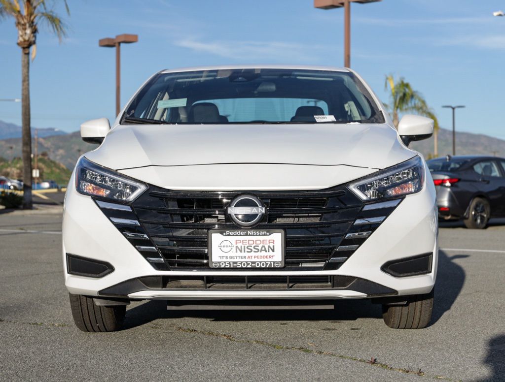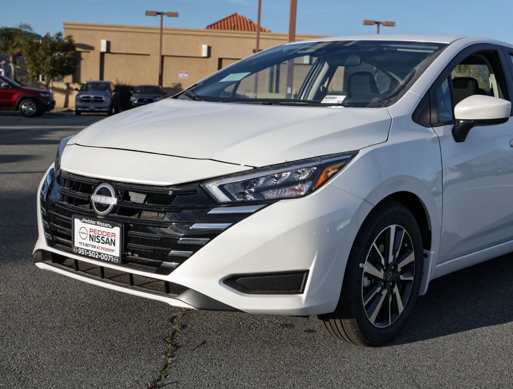NewThis 2025 Aspen White Tricoat Nissan Versa 1.6 SV FWD is well equipped and includes these features and benefits: Trunk Package (Shopping Bag Hooks and Trunk Net), 16″ Aluminum Alloy Wheels, 4 Speakers, ABS brakes, Air Conditioning, Alloy wheels, Apple CarPlay/Android Auto, Auto High-beam Headlights, Blind Spot Warning, Brake assist, Bumpers: body-color, Carpeted Floor Mats & Trunk Mat (5-Piece Set), Delay-off headlights, Driver door bin, Driver vanity mirror, Dual front impact airbags, Dual front side impact airbags, Electronic Stability Control, Front anti-roll bar, Front Bucket Seats, Front Center Armrest, Front reading lights, Front wheel independent suspension, Fully automatic headlights, Heated door mirrors, Illuminated entry, Knee airbag, Low tire pressure warning, Occupant sensing airbag, Outside temperature display, Overhead airbag, Panic alarm, Passenger door bin, Passenger vanity mirror, Power door mirrors, Power steering, Power windows, Premium Paint, Radio data system, Radio: AM/FM Audio System, Rear Parking Sensors, Rear side impact airbag, Rear window defroster, Remote keyless entry, Speed control, Splash Guards, Split folding rear seat, Steering wheel mounted audio controls, Tachometer, Telescoping steering wheel, Tilt steering wheel, Traction control, Trip computer, Upgraded Cloth Seat Trim, USB Charging Cable Set, and Variably intermittent wipers Plus 3 Month 3000 Mile Warranty. See Dealer For Details. Apple Car Play/Android Auto, Automatic Climate Control, Backup Camera.32/40 City/Highway MPG• MSRP is the Manufacturer’s Suggested Retail Price, which is not necessarily the sale price and is not the advertised price. For specific pricing information, please contact Pedder Nissan at (951) 766-1446. Price does include: • The Advertised Price for any/all vehicles offered for sale does not include dealer installed accessories. These accessories can be purchased for an additional cost. Price does include: • All vehicles subject to prior sale. All prices plus government fees and taxes, any finance charges, any dealer document processing charges ($85), any electronic filing charge, and any emission testing charge. Offers and prices not available to other dealers, wholesalers, or brokers. For out of state purchase customers, customers must be present to purchase. If shipping is required, dealership must facilitate; no exceptions. Special financing in lieu of any rebates. This price may not be combined with any other offer. Price does include: • All information is believed to be accurate but is not guaranteed. For accurate pricing, mileage, availability, options, etc, please contact Pedder Nissan at (951) 766-1446. The sales price includes factory rebates and trade in incentives on this vehicle that are valid on a cash or financed purchase only by an individual for their personal use. All prices will be honored as cash. The sale price does not apply to a lease. The factory rebates may not be available on this vehicle if you elect to take advantage of a Special Alternative APR or Special Lease program. Some Factory Rebates and trade in incentives are California Resident specific and may be qualifying based and they may also vary for residents of other states. Applicable Trade in Incentives and Manufacturer Rebate and Expiration Breakdown’s for this vehicle are as follows. Price does include:$500 – Nissan Conditional Offer – Military Discount. Exp. 02/02/2026 $750 – Nissan MY25 Versa Bonus Cash. Exp. 02/02/2026