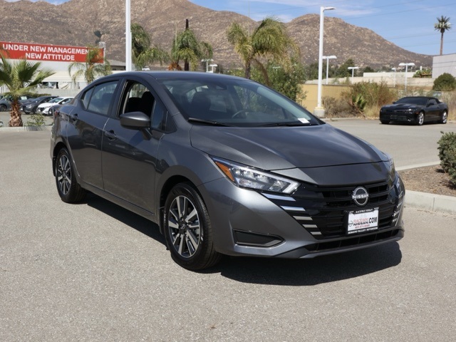 Gun Metallic 2025 Nissan Versa 1.6 SV FWD CVT 1.6L I4 DOHC 16V Automatic Climate Control, Backup Camera.This 2025 Gun Metallic Nissan Versa 1.6 SV FWD is well equipped and includes these features and benefits: Trunk Package (Shopping Bag Hooks and Trunk Net), 16″ Aluminum Alloy Wheels, 4 Speakers, ABS brakes, Air Conditioning, Alloy wheels, Apple CarPlay/Android Auto, Auto High-beam Headlights, Blind Spot Warning, Brake assist, Bumpers: body-color, Carpeted Floor Mats & Trunk Mat (5-Piece Set), Delay-off headlights, Driver door bin, Driver vanity mirror, Dual front impact airbags, Dual front side impact airbags, Electronic Stability Control, Front anti-roll bar, Front Bucket Seats, Front Center Armrest, Front reading lights, Front wheel independent suspension, Fully automatic headlights, Heated door mirrors, Illuminated entry, Knee airbag, Low tire pressure warning, Occupant sensing airbag, Outside temperature display, Overhead airbag, Panic alarm, Passenger door bin, Passenger vanity mirror, Power door mirrors, Power steering, Power windows, Radio data system, Radio: AM/FM Audio System, Rear Parking Sensors, Rear side impact airbag, Rear window defroster, Remote keyless entry, Speed control, Splash Guards, Split folding rear seat, Steering wheel mounted audio controls, Tachometer, Telescoping steering wheel, Tilt steering wheel, Traction control, Trip computer, Upgraded Cloth Seat Trim, and Variably intermittent wipers. 32/40 City/Highway MPGWe have many different makes and models available including a wide selection of cars, trucks, vans, and SUVs. Raceway Nissan in Riverside County has access to thousands of new and used vehicles which means we can find the right vehicle for you and your family. We are proud to serve the city of Riverside, all of the Metro Riverside County area, and the Inland Empire from our location in Moreno Valley. We are conveniently located in Riverside near the cities of San Bernardino, Redlands, Ontario, Corona, Perris, Beaumont, Temecula, Hemet and many others. We offer military discounts and work with many Credit Unions. Price includes: $500 – Nissan Conditional Offer – Military Discount. Exp. 12/01/2025 $750 – Nissan MY25 Versa Bonus Cash (All Markets) – November. Exp. 12/01/2025