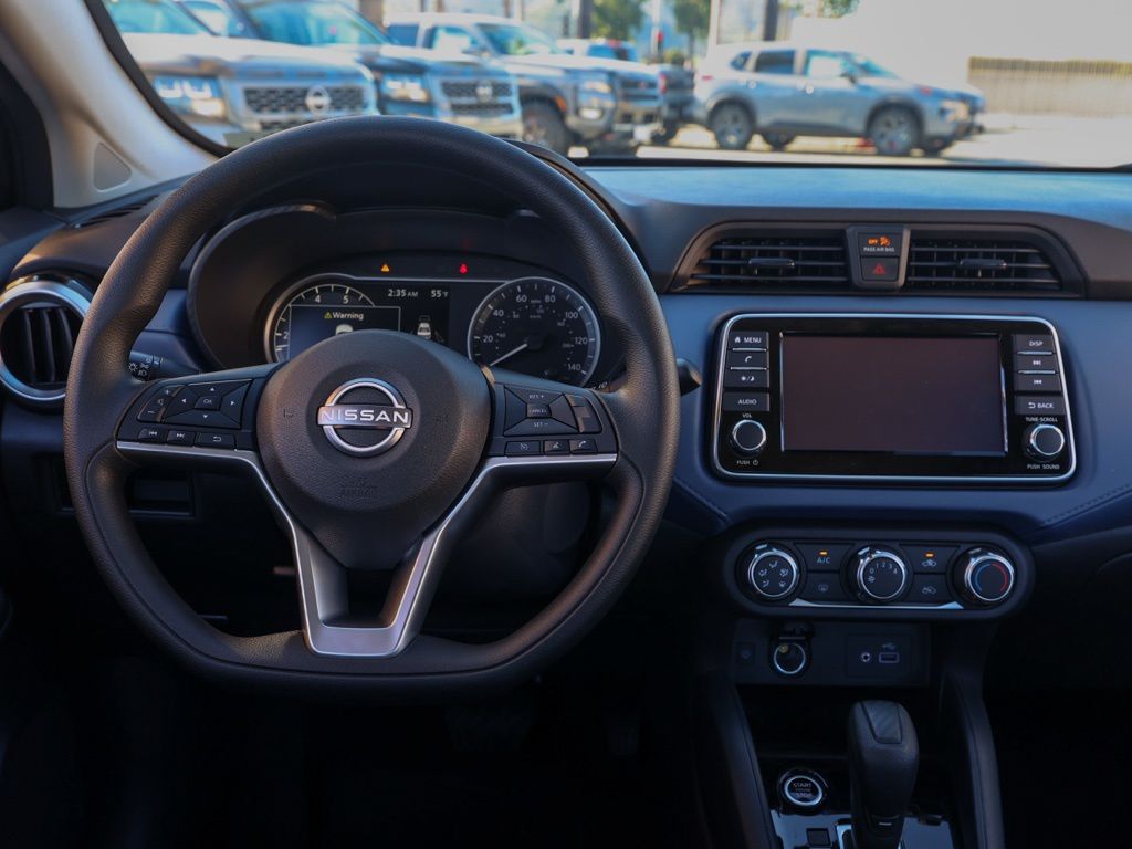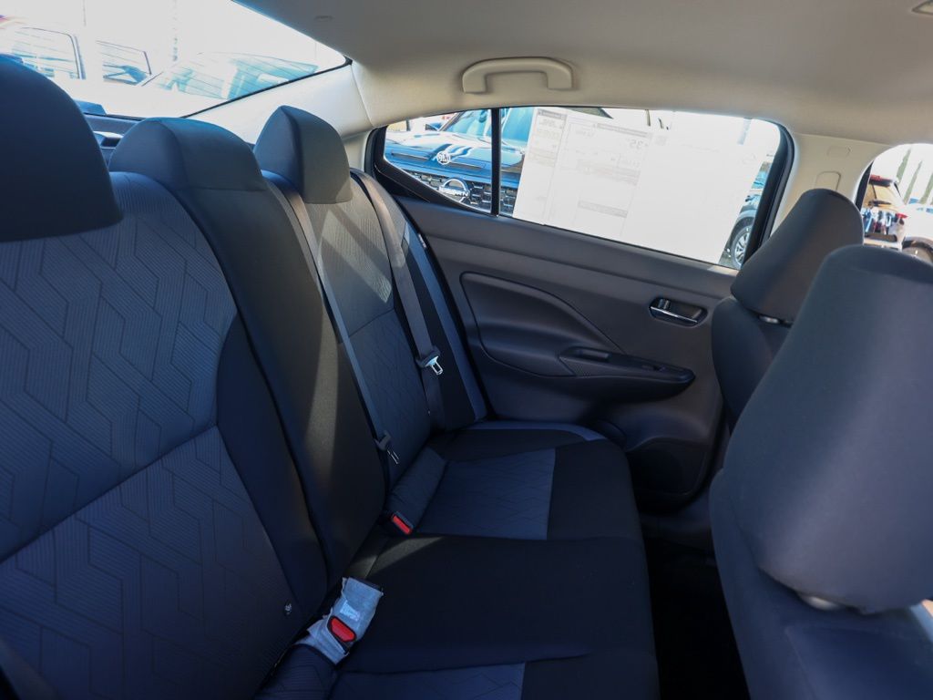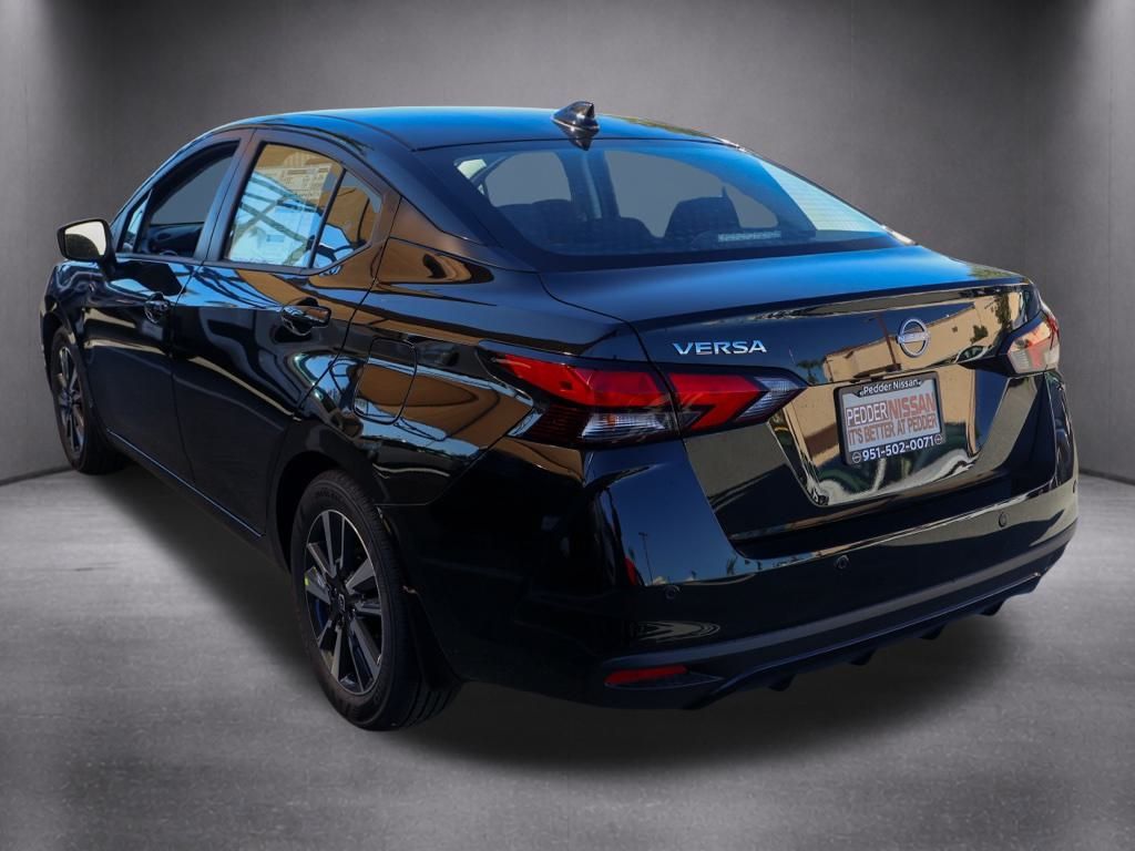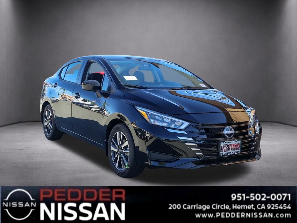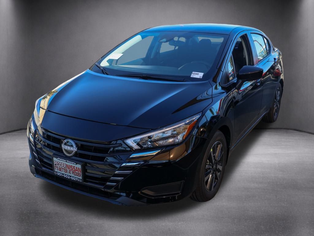 NewThis 2025 Super Black Metallic Nissan Versa 1.6 SV FWD is well equipped and includes these features and benefits: Trunk Package (Shopping Bag Hooks and Trunk Net), 16″ Aluminum Alloy Wheels, 4 Speakers, ABS brakes, Air Conditioning, Alloy wheels, Apple CarPlay/Android Auto, Auto High-beam Headlights, Blind Spot Warning, Brake assist, Bumpers: body-color, Carpeted Floor Mats & Trunk Mat (5-Piece Set), Delay-off headlights, Driver door bin, Driver vanity mirror, Dual front impact airbags, Dual front side impact airbags, Electronic Stability Control, Front anti-roll bar, Front Bucket Seats, Front Center Armrest, Front reading lights, Front wheel independent suspension, Fully automatic headlights, Heated door mirrors, Illuminated entry, Knee airbag, Low tire pressure warning, Occupant sensing airbag, Outside temperature display, Overhead airbag, Panic alarm, Passenger door bin, Passenger vanity mirror, Power door mirrors, Power steering, Power windows, Radio data system, Radio: AM/FM Audio System, Rear Parking Sensors, Rear side impact airbag, Rear window defroster, Remote keyless entry, Speed control, Splash Guards, Split folding rear seat, Steering wheel mounted audio controls, Tachometer, Telescoping steering wheel, Tilt steering wheel, Traction control, Trip computer, Upgraded Cloth Seat Trim, and Variably intermittent wipers Plus 3 Month 3000 Mile Warranty. See Dealer For Details. Apple Car Play/Android Auto, Automatic Climate Control, Backup Camera.32/40 City/Highway MPG• MSRP is the Manufacturer’s Suggested Retail Price, which is not necessarily the sale price and is not the advertised price. For specific pricing information, please contact Pedder Nissan at (951) 766-1446. Price does include: • The Advertised Price for any/all vehicles offered for sale does not include dealer installed accessories. These accessories can be purchased for an additional cost. Price does include: • All vehicles subject to prior sale. All prices plus government fees and taxes, any finance charges, any dealer document processing charges ($85), any electronic filing charge, and any emission testing charge. Offers and prices not available to other dealers, wholesalers, or brokers. For out of state purchase customers, customers must be present to purchase. If shipping is required, dealership must facilitate; no exceptions. Special financing in lieu of any rebates. This price may not be combined with any other offer. Price does include: • All information is believed to be accurate but is not guaranteed. For accurate pricing, mileage, availability, options, etc, please contact Pedder Nissan at (951) 766-1446. The sales price includes factory rebates and trade in incentives on this vehicle that are valid on a cash or financed purchase only by an individual for their personal use. All prices will be honored as cash. The sale price does not apply to a lease. The factory rebates may not be available on this vehicle if you elect to take advantage of a Special Alternative APR or Special Lease program. Some Factory Rebates and trade in incentives are California Resident specific and may be qualifying based and they may also vary for residents of other states. Applicable Trade in Incentives and Manufacturer Rebate and Expiration Breakdown’s for this vehicle are as follows. Price does include:$500 – Nissan Conditional Offer – Military Discount. Exp. 02/02/2026 $750 – Nissan MY25 Versa Bonus Cash. Exp. 02/02/2026