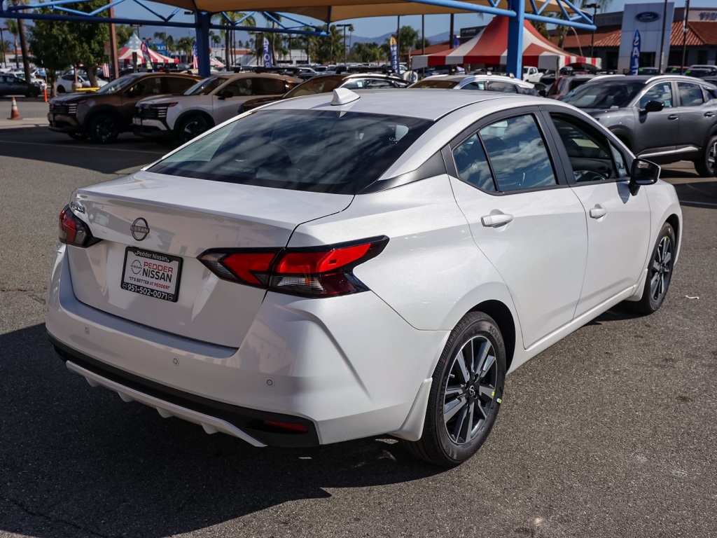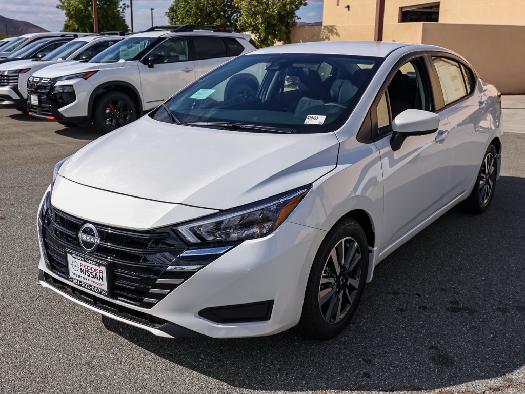 NewThis 2025 Aspen White Tricoat Nissan Versa 1.6 SV FWD is well equipped and includes these features and benefits: Trunk Package (Shopping Bag Hooks and Trunk Net), 16″ Aluminum Alloy Wheels, 4 Speakers, ABS brakes, Air Conditioning, Alloy wheels, Apple CarPlay/Android Auto, Auto High-beam Headlights, Blind Spot Warning, Brake assist, Bumpers: body-color, Carpeted Floor Mats & Trunk Mat (5-Piece Set), Delay-off headlights, Driver door bin, Driver vanity mirror, Dual front impact airbags, Dual front side impact airbags, Electronic Stability Control, Front anti-roll bar, Front Bucket Seats, Front Center Armrest, Front reading lights, Front wheel independent suspension, Fully automatic headlights, Heated door mirrors, Illuminated entry, Knee airbag, Low tire pressure warning, Occupant sensing airbag, Outside temperature display, Overhead airbag, Panic alarm, Passenger door bin, Passenger vanity mirror, Power door mirrors, Power steering, Power windows, Premium Paint, Radio data system, Radio: AM/FM Audio System, Rear Parking Sensors, Rear side impact airbag, Rear window defroster, Remote keyless entry, Speed control, Splash Guards, Split folding rear seat, Steering wheel mounted audio controls, Tachometer, Telescoping steering wheel, Tilt steering wheel, Traction control, Trip computer, Upgraded Cloth Seat Trim, and Variably intermittent wipers Plus 3 Month 3000 Mile Warranty. See Dealer For Details. Apple Car Play/Android Auto, Automatic Climate Control, Backup Camera.32/40 City/Highway MPG• MSRP is the Manufacturer’s Suggested Retail Price, which is not necessarily the sale price and is not the advertised price. For specific pricing information, please contact Pedder Nissan at (951) 766-1446. Price does include: • The Advertised Price for any/all vehicles offered for sale does not include dealer installed accessories. These accessories can be purchased for an additional cost. Price does include: • All vehicles subject to prior sale. All prices plus government fees and taxes, any finance charges, any dealer document processing charges ($85), any electronic filing charge, and any emission testing charge. Offers and prices not available to other dealers, wholesalers, or brokers. For out of state purchase customers, customers must be present to purchase. If shipping is required, dealership must facilitate; no exceptions. Special financing in lieu of any rebates. This price may not be combined with any other offer. Price does include: • All information is believed to be accurate but is not guaranteed. For accurate pricing, mileage, availability, options, etc, please contact Pedder Nissan at (951) 766-1446. The sales price includes factory rebates and trade in incentives on this vehicle that are valid on a cash or financed purchase only by an individual for their personal use. All prices will be honored as cash. The sale price does not apply to a lease. The factory rebates may not be available on this vehicle if you elect to take advantage of a Special Alternative APR or Special Lease program. Some Factory Rebates and trade in incentives are California Resident specific and may be qualifying based and they may also vary for residents of other states. Applicable Trade in Incentives and Manufacturer Rebate and Expiration Breakdown’s for this vehicle are as follows. Price does include:$750 – Nissan MY25 Versa Bonus Cash (All Markets) – November. Exp. 12/01/2025