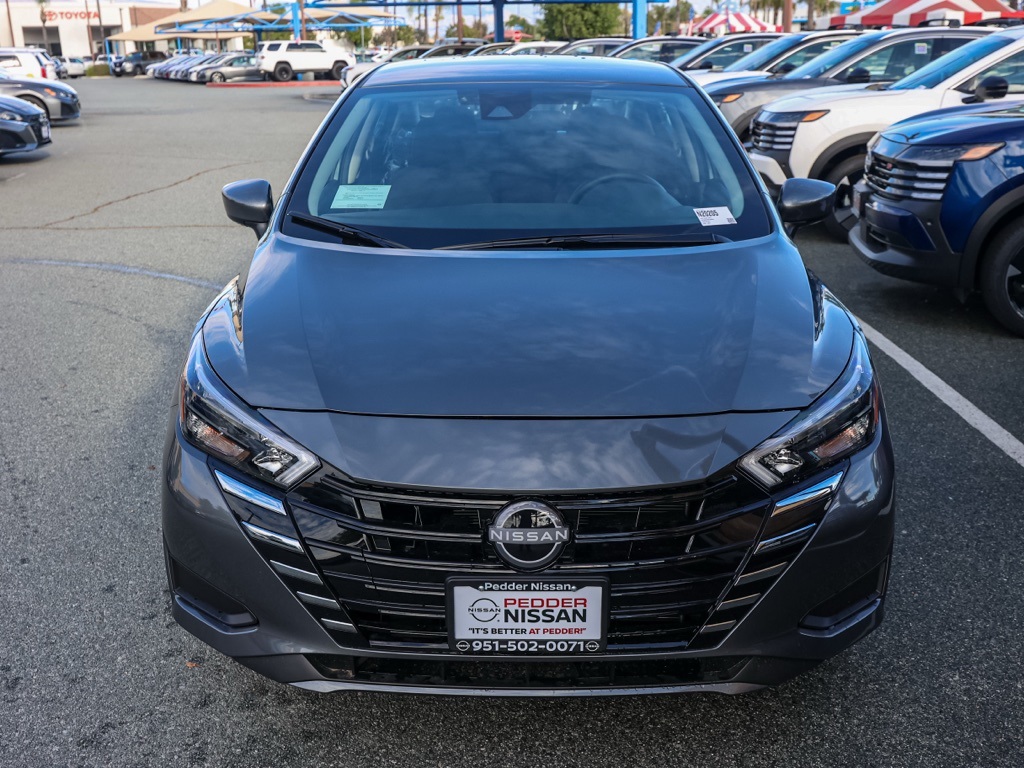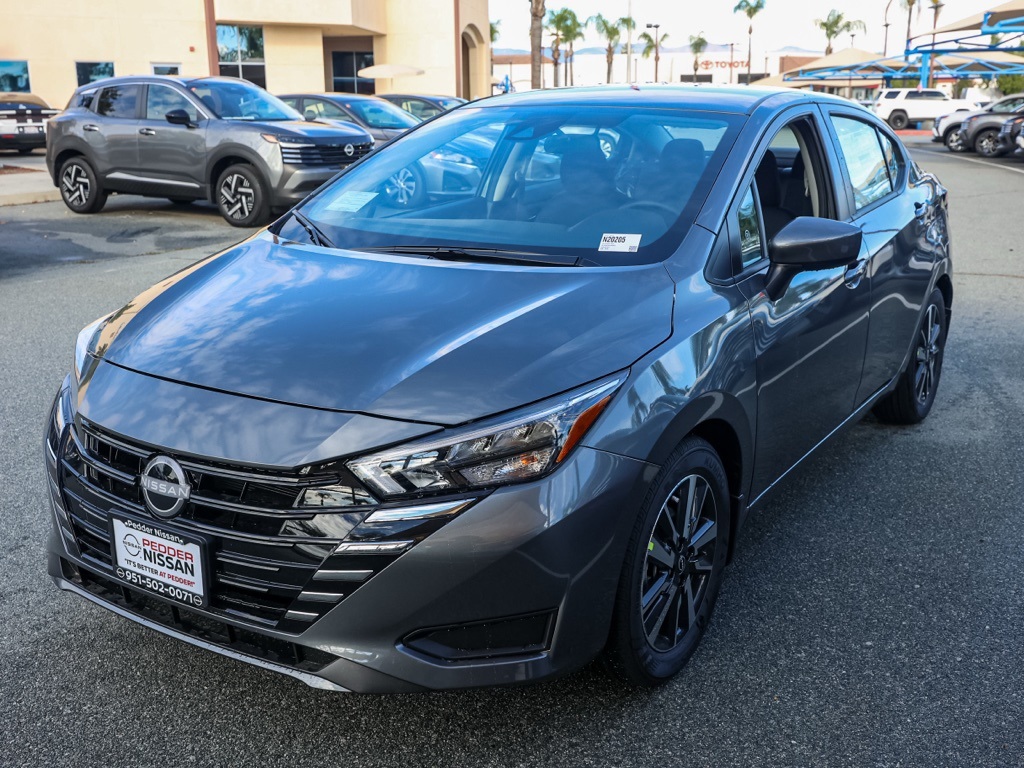 This 2025 Gun Metallic Nissan Versa 1.6 SV FWD is well equipped and includes these features and benefits: Trunk Package (Shopping Bag Hooks and Trunk Net), 16″ Aluminum Alloy Wheels, 4 Speakers, ABS brakes, Air Conditioning, Alloy wheels, Apple CarPlay/Android Auto, Auto High-beam Headlights, Blind Spot Warning, Brake assist, Bumpers: body-color, Carpeted Floor Mats & Trunk Mat (5-Piece Set), Delay-off headlights, Driver door bin, Driver vanity mirror, Dual front impact airbags, Dual front side impact airbags, Electronic Stability Control, Front anti-roll bar, Front Bucket Seats, Front Center Armrest, Front reading lights, Front wheel independent suspension, Fully automatic headlights, Heated door mirrors, Illuminated entry, Knee airbag, Low tire pressure warning, Occupant sensing airbag, Outside temperature display, Overhead airbag, Panic alarm, Passenger door bin, Passenger vanity mirror, Power door mirrors, Power steering, Power windows, Radio data system, Radio: AM/FM Audio System, Rear Parking Sensors, Rear side impact airbag, Rear window defroster, Remote keyless entry, Speed control, Splash Guards, Split folding rear seat, Steering wheel mounted audio controls, Tachometer, Telescoping steering wheel, Tilt steering wheel, Traction control, Trip computer, Upgraded Cloth Seat Trim, and Variably intermittent wipers Plus 3 Month 3000 Mile Warranty. See Dealer For Details. Apple Car Play/Android Auto, Automatic Climate Control, Backup Camera.32/40 City/Highway MPG• MSRP is the Manufacturer’s Suggested Retail Price, which is not necessarily the sale price and is not the advertised price. For specific pricing information, please contact Pedder Nissan at (951) 766-1446. Price does include: • The Advertised Price for any/all vehicles offered for sale does not include dealer installed accessories. These accessories can be purchased for an additional cost. Price does include: • All vehicles subject to prior sale. All prices plus government fees and taxes, any finance charges, any dealer document processing charges ($85), any electronic filing charge, and any emission testing charge. Offers and prices not available to other dealers, wholesalers, or brokers. For out of state purchase customers, customers must be present to purchase. If shipping is required, dealership must facilitate; no exceptions. Special financing in lieu of any rebates. This price may not be combined with any other offer. Price does include: • All information is believed to be accurate but is not guaranteed. For accurate pricing, mileage, availability, options, etc, please contact Pedder Nissan at (951) 766-1446. The sales price includes factory rebates and trade in incentives on this vehicle that are valid on a cash or financed purchase only by an individual for their personal use. All prices will be honored as cash. The sale price does not apply to a lease. The factory rebates may not be available on this vehicle if you elect to take advantage of a Special Alternative APR or Special Lease program. Some Factory Rebates and trade in incentives are California Resident specific and may be qualifying based and they may also vary for residents of other states. Applicable Trade in Incentives and Manufacturer Rebate and Expiration Breakdown’s for this vehicle are as follows.  Price does include:$750 – Nissan MY25 Versa Bonus Cash (All Markets) – November. Exp. 12/01/2025