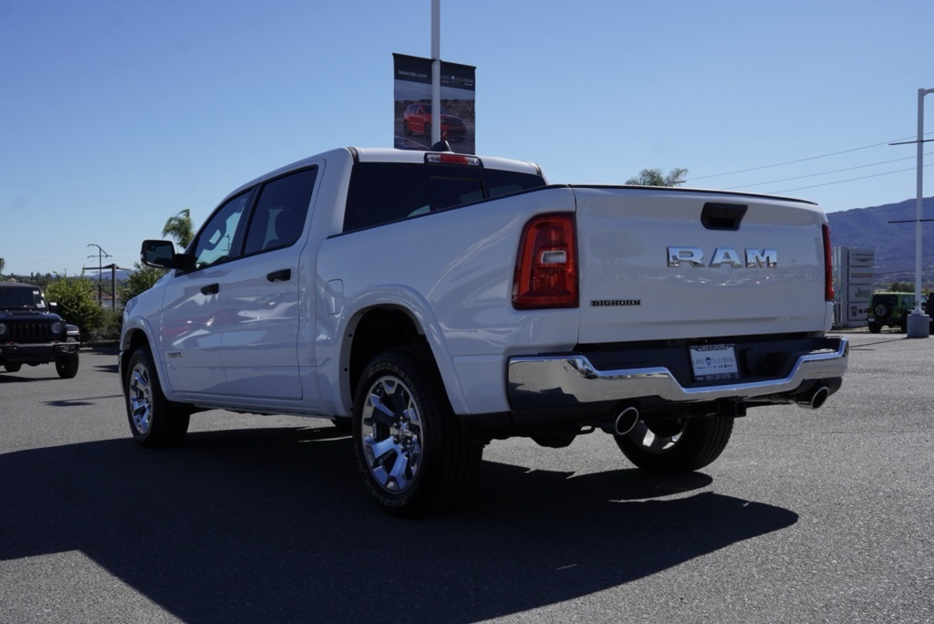 New2025 Bright White Clearcoat Ram 1500 Big Horn 4D Crew Cab $15,598 off MSRP!All vehicles subject to prior sale. New vehicle pricing includes all offers and incentives. The estimated selling price that appears after calculating dealer offers is for informational purposes, only. You may not qualify for all the offers, incentives, discounts, or financing on this page. Offers, incentives, discounts, or financing are subject to expiration and other restrictions. See Lake Elsinore Chrysler Dodge Jeep Ram for qualifications and complete details or by calling (951) 291-9777. All prices plus government fees and taxes, any finance charges, $85 documentary fee, $33 electronic vehicle registration fee, any emission testing charge and $1.75 per new tire state tire fee. The advertised sale price does not apply to a lease. Offers and prices are not available to other dealers, wholesalers, or brokers. For out-of-state purchase customers, customers must be present to purchase. If shipping is required, dealership must facilitate, no exceptions. The sales price may not be combined with any other offer. The Factory Rebates may not be available on this vehicle if you elect to take advantage of a Special Alternative APR or Special Lease program. Some Factory Rebates are California Resident specific and may vary for residents of other states. The Advertised Price for any/all vehicles offered for sale does not include optional dealer pre-installed accessories or commercial upfits or aftermarket lift kit packages which can be purchased for an additional cost. Contact us for additional information at (951) 291-9773. The sales price includes factory rebates and trade in incentives on this vehicle that are valid on a cash or financed purchase only by an individual for their personal use. All prices will be honored as cash. Some Factory Rebates and trade in incentives are California Resident specific and may be qualifying based and they may also vary for residents of other states.115V Auxiliary Power Outlet, 115V Auxiliary Rear Power Outlet, 12″ Touchscreen Display, 2nd Row In Floor Storage Bins, 400W Inverter, 4G LTE Wi-Fi Hot Spot, 9 Amplified Speakers w/Subwoofer, ABS brakes, Active Cruise Control, Air Conditioning ATC w/Dual Zone Control, Alloy wheels, Apple CarPlay, Auto Power-Folding Mirrors, Auto-Dimming Exterior Driver Mirror, Auto-Dimming Rear-View Mirror, Big Horn Level 2 Equipment Group, Black Exterior Mirrors, Black Premium Power Mirrors, Cluster 7.0″ TFT Color Display, Compass, Configurable Drive Mode, Connected Travel & Traffic Services, Connectivity – US/Canada, Convex Wide-Angle Exterior Mirror Insert, Electronic Stability Control, Exterior Mirrors Courtesy Lamps, Exterior Mirrors w/Heating Element, Exterior Mirrors w/Supplemental Signals, Glove Box Lamp, Google Android Auto, GPS Antenna Input, GPS Navigation, HD Radio, Heated door mirrors, Heated Front Seats, Heated Steering Wheel, Illuminated entry, Integrated Voice Command w/Bluetooth, Leather Wrapped Steering Wheel, LED Dome Lamp w/On/Off Switch, The equipment and photo display is intended to be used as an informational listing of the factory stock equipment and features for this vehicle. Equipment and features may have changed for this vehicle since its original digitally uploaded listing. All information is believed to be accurate but is not guaranteed. For specific accurate pricing information, mileage, availability, options, etc., please contact Lake Elsinore Chrysler Dodge Jeep Ram at (951) 291-9777. Applicable Incentives and Manufacturer Rebate and Expiration Breakdown’s for this vehicle are as follows. Net Cost Price does include:$1000 – 2025 West BC SFS Bonus Cash . Exp. 11/03/2025 $1000 – 2025 West BC SFS Retail Bonus Cash . Exp. 11/03/2025 $500 – 2025 National 2025 Military Bonus Cash. Exp. 01/05/2026 10% Msrp – 2025 National 10% Below MSRP . Exp. 11/03/2025 $2,000 – Preferred Lender Savings Bonus . Exp. 11/03/2025 $2,500 – Retail Trade in Savings Bonus . Exp. 11/03/2025
