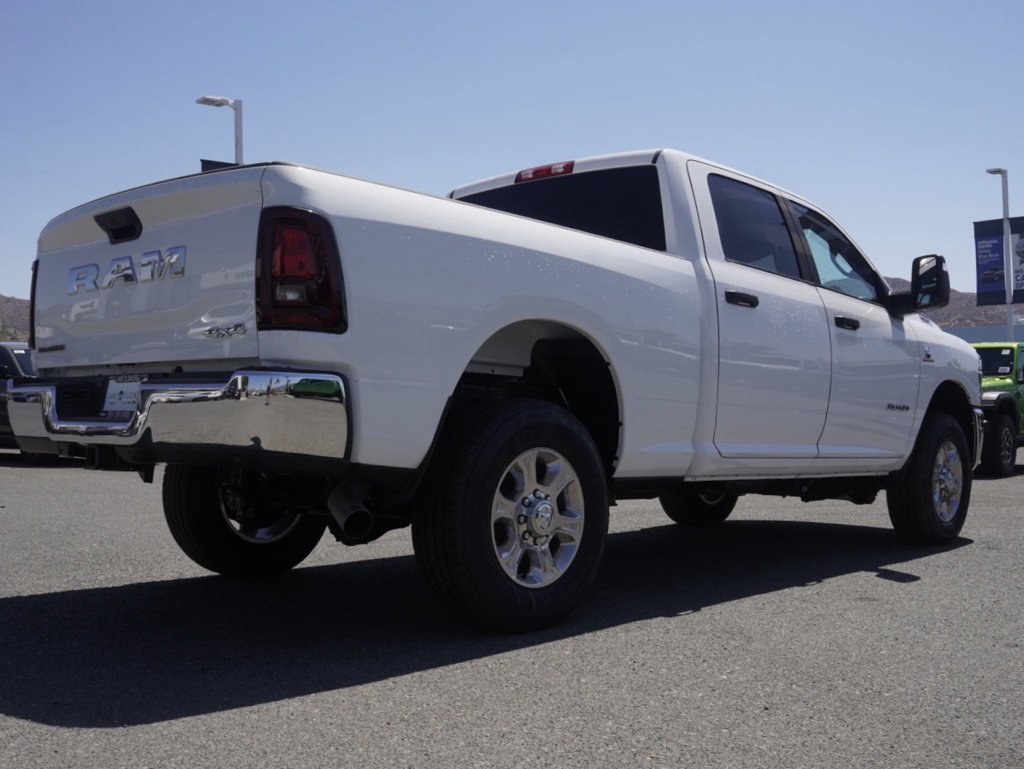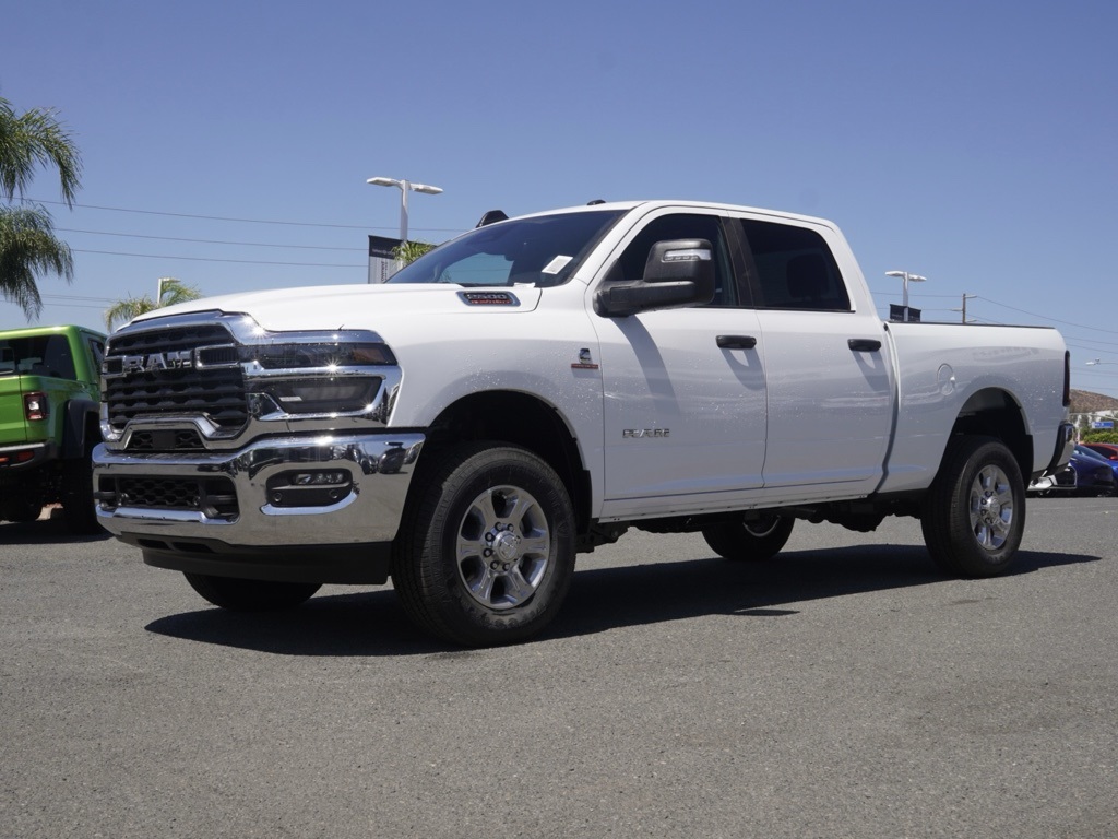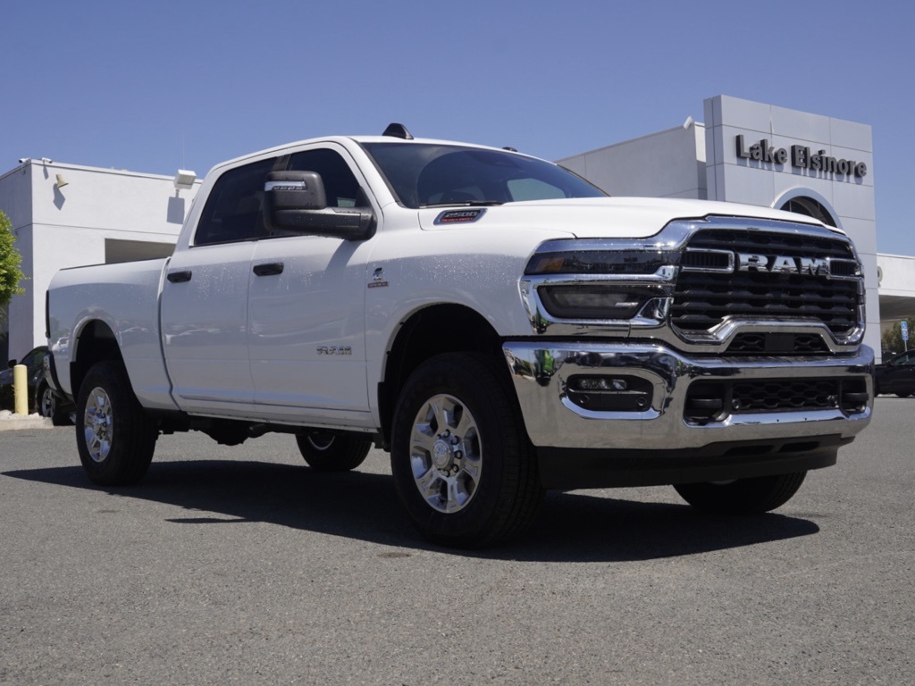 New2025 Bright White Clearcoat Ram 2500 Big Horn 4D Crew Cab $22,455 off MSRP!All vehicles subject to prior sale. New vehicle pricing includes all offers and incentives. The estimated selling price that appears after calculating dealer offers is for informational purposes, only. You may not qualify for all the offers, incentives, discounts, or financing on this page. Offers, incentives, discounts, or financing are subject to expiration and other restrictions. See Lake Elsinore Chrysler Dodge Jeep Ram for qualifications and complete details or by calling (951) 291-9777. All prices plus government fees and taxes, any finance charges, $85 documentary fee, $33 electronic vehicle registration fee, any emission testing charge and $1.75 per new tire state tire fee. The advertised sale price does not apply to a lease. Offers and prices are not available to other dealers, wholesalers, or brokers. For out-of-state purchase customers, customers must be present to purchase. If shipping is required, dealership must facilitate, no exceptions. The sales price may not be combined with any other offer. The Factory Rebates may not be available on this vehicle if you elect to take advantage of a Special Alternative APR or Special Lease program. Some Factory Rebates are California Resident specific and may vary for residents of other states. The Advertised Price for any/all vehicles offered for sale does not include optional dealer pre-installed accessories or commercial upfits or aftermarket lift kit packages which can be purchased for an additional cost. Contact us for additional information at (951) 291-9773. The sales price includes factory rebates and trade in incentives on this vehicle that are valid on a cash or financed purchase only by an individual for their personal use. All prices will be honored as cash. Some Factory Rebates and trade in incentives are California Resident specific and may be qualifying based and they may also vary for residents of other states.KARR Bluetooth Security System Anti-Theft Vehicle Security System & Protection Program, Global Positioning Tracking System (S.W.A.T.) Guaranteed Protection & Recovery Program, Finishing Touch Complete Synthetic Paint Sealant Application & Protection Program, NitroFill Advantage Nitrogen Filled Tires & Protection Program, Genuine Mopar Wheel Locks Anti-Theft Vehicle Wheel Protection, ParkView® / Park Assist Rear Back–Up Camera, Blind–Spot and Cross–Path Detection, Bluetooth Car Audio Receiver, SiriusXM® Satelite Radio, Apple Car Play/Android Auto, Automatic Climate Control, Backup Camera.Priced to Go! Unbeatable Prices: Our dynamic pricing ensures you get unbeatable prices on vehicles that not only fit your budget but also exceed your expectations. We understand the importance of getting the most value for your hard-earned money. Schedule Your Test Drive: Don’t miss out on this opportunity. Schedule your test drive now before the vehicle you desire is gone. Call us at (951) 291-9773 or visit our dealership at lakecdjr The equipment and photo display is intended to be used as an informational listing of the factory stock equipment and features for this vehicle. Equipment and features may have changed for this vehicle since its original digitally uploaded listing. All information is believed to be accurate but is not guaranteed. For specific accurate pricing information, mileage, availability, options, etc., please contact Lake Elsinore Chrysler Dodge Jeep Ram at (951) 291-9777. Applicable Incentives and Manufacturer Rebate and Expiration Breakdown’s for this vehicle are as follows. Net Cost Price does include:$2000 – 2025 National Bonus Cash . Exp. 12/01/2025 $2000 – 2025 National Holiday Select Inventory Bonus Cash. Exp. 12/01/2025 $2000 – 2025 West BC Commercial Bonus Cash . Exp. 12/01/2025 $500 – 2025 National 2025 Military Bonus Cash. Exp. 01/05/2026 $2,000 – Preferred Lender Savings Bonus . Exp. 12/03/2025 $2,500 – Retail Trade in Savings Bonus . Exp. 12/03/2025