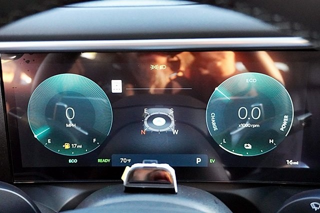 Visible through the bottom of the windscreen
