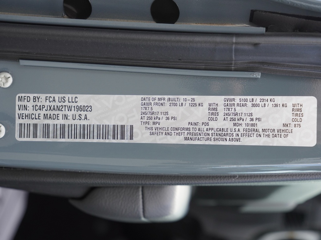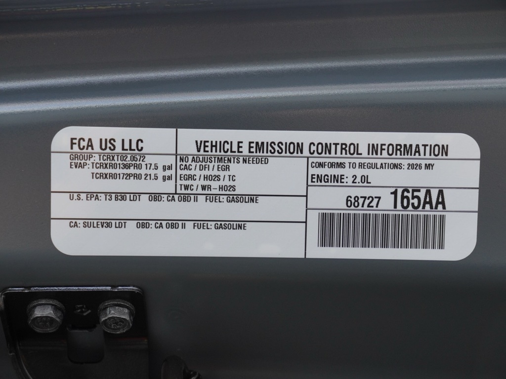 2026 Anvil Clear Coat Jeep Wrangler 2-Door Sport S 2D Sport Utility $11,276 off MSRP!All vehicles subject to prior sale. New vehicle pricing includes all offers and incentives. The estimated selling price that appears after calculating dealer offers is for informational purposes, only. You may not qualify for all the offers, incentives, discounts, or financing on this page. Offers, incentives, discounts, or financing are subject to expiration and other restrictions. See Lake Elsinore Chrysler Dodge Jeep Ram for qualifications and complete details or by calling (951) 291-9777. All prices plus government fees and taxes, any finance charges, $85 documentary fee, $33 electronic vehicle registration fee, any emission testing charge and $1.75 per new tire state tire fee. The advertised sale price does not apply to a lease. Offers and prices are not available to other dealers, wholesalers, or brokers. For out-of-state purchase customers, customers must be present to purchase. If shipping is required, dealership must facilitate, no exceptions. The sales price may not be combined with any other offer. The Factory Rebates may not be available on this vehicle if you elect to take advantage of a Special Alternative APR or Special Lease program. Some Factory Rebates are California Resident specific and may vary for residents of other states. The Advertised Price for any/all vehicles offered for sale does not include optional dealer pre-installed accessories or commercial upfits or aftermarket lift kit packages which can be purchased for an additional cost. Contact us for additional information at (951) 291-9773. The sales price includes factory rebates and trade in incentives on this vehicle that are valid on a cash or financed purchase only by an individual for their personal use. All prices will be honored as cash. Some Factory Rebates and trade in incentives are California Resident specific and may be qualifying based and they may also vary for residents of other states.Global Positioning Tracking System (S.W.A.T.) Guaranteed Protection & Recovery Program, Finishing Touch Complete Synthetic Paint Sealant Application & Protection Program, NitroFill Advantage Nitrogen Filled Tires & Protection Program, Genuine Mopar Wheel Locks Anti-Theft Vehicle Wheel Protection, ParkView® / Park Assist Rear Back–Up Camera, Blind–Spot and Cross–Path Detection, Bluetooth Car Audio Receiver, SiriusXM® Satelite Radio, Apple Car Play/Android Auto, Automatic Climate Control, Global Positioning System (S.W.A.T. Anti-Theft Vehicle Security System, Wrangler 2-Door Sport S 4X4 SUV, 2D Sport Utility, 2.0L I4 DOHC, 8-Speed Automatic, 4WD, Anvil Clear Coat, Black Cloth, ABS brakes, Compass, Electronic Stability Control, Illuminated entry, Low tire pressure warning, ParkView Rear Back-Up Camera, Remote keyless entry, Traction control.Priced to Go! Unbeatable Prices: Our dynamic pricing ensur The equipment and photo display is intended to be used as an informational listing of the factory stock equipment and features for this vehicle. Equipment and features may have changed for this vehicle since its original digitally uploaded listing. All information is believed to be accurate but is not guaranteed. For specific accurate pricing information, mileage, availability, options, etc., please contact Lake Elsinore Chrysler Dodge Jeep Ram at (951) 291-9777. Applicable Incentives and Manufacturer Rebate and Expiration Breakdown’s for this vehicle are as follows. Net Cost Price does include:$1000 – 2026 National Select Inventory Bonus Cash . Exp. 01/04/2027 $1500 – 2026 National Stellantis Loyalty Retail Bonus Cash . Exp. 02/02/2026 , $2,500 – Retail Trade in Assistance HE2000. Exp. 01/30/2026 Overaged Inventory Bonus Cash applies to specific Vin and is only applied to qualifying customers. Validate by calling dealer to see if you qualify, all customers who qualify must have proper documentation if needed in order to obtain this Rebate $2,000 – Exp. 01/31/2026