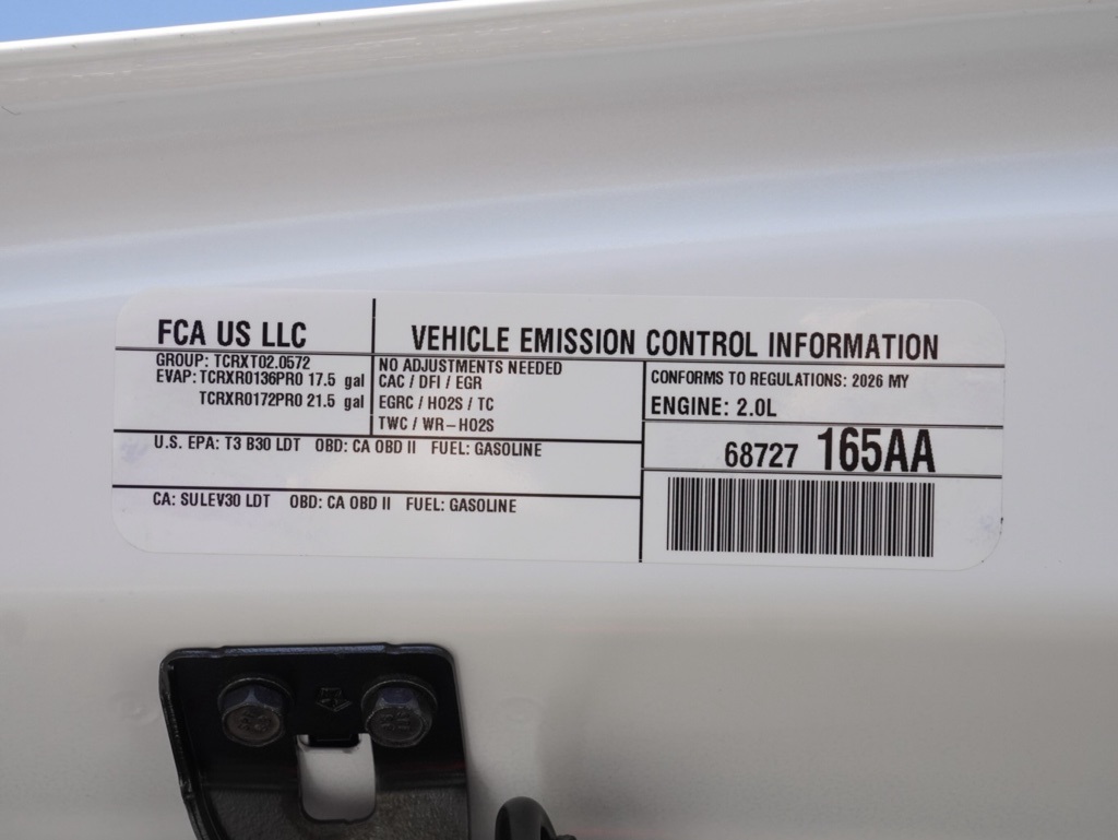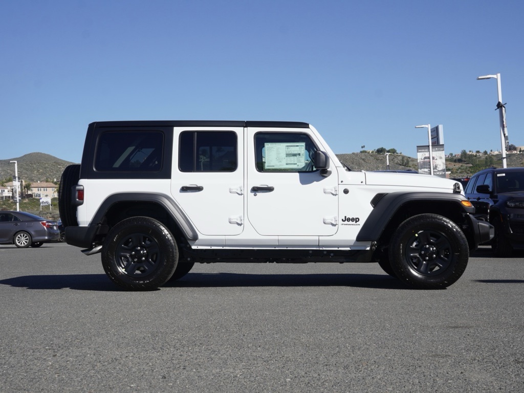 New2026 Bright White Clearcoat Jeep Wrangler 4-Door Sport S 4D Sport Utility $9,177 off MSRP!All vehicles subject to prior sale. New vehicle pricing includes all offers and incentives. The estimated selling price that appears after calculating dealer offers is for informational purposes, only. You may not qualify for all the offers, incentives, discounts, or financing on this page. Offers, incentives, discounts, or financing are subject to expiration and other restrictions. See Lake Elsinore Chrysler Dodge Jeep Ram for qualifications and complete details or by calling (951) 291-9777. All prices plus government fees and taxes, any finance charges, $85 documentary fee, $33 electronic vehicle registration fee, any emission testing charge and $1.75 per new tire state tire fee. The advertised sale price does not apply to a lease. Offers and prices are not available to other dealers, wholesalers, or brokers. For out-of-state purchase customers, customers must be present to purchase. If shipping is required, dealership must facilitate, no exceptions. The sales price may not be combined with any other offer. The Factory Rebates may not be available on this vehicle if you elect to take advantage of a Special Alternative APR or Special Lease program. Some Factory Rebates are California Resident specific and may vary for residents of other states. The Advertised Price for any/all vehicles offered for sale does not include optional dealer pre-installed accessories or commercial upfits or aftermarket lift kit packages which can be purchased for an additional cost. Contact us for additional information at (951) 291-9773. The sales price includes factory rebates and trade in incentives on this vehicle that are valid on a cash or financed purchase only by an individual for their personal use. All prices will be honored as cash. Some Factory Rebates and trade in incentives are California Resident specific and may be qualifying based and they may also vary for residents of other states.Wrangler 4-Door Sport S, 4D Sport Utility, 2.0L I4 DOHC, 8-Speed Automatic, 4WD, Bright White Clearcoat, Black Cloth, ABS brakes, Black 3-Piece Hard Top, Compass, Electronic Stability Control, Freedom Panel Storage Bag, Illuminated entry, Low tire pressure warning, ParkView Rear Back-Up Camera, Quick Order Package 22B Sport, Rear Window Defroster, Rear Window Wiper/Washer, Remote keyless entry, Traction control.Priced to Go! Unbeatable Prices: Our dynamic pricing ensures you get unbeatable prices on vehicles that not only fit your budget but also exceed your expectations. We understand the importance of getting the most value for your hard-earned money. Schedule Your Test Drive: Don’t miss out on this opportunity. Schedule your test drive now before the vehicle you desire is gone. Call us at (951) 291-9773 or visit our dealership at lakecdjr.com to experience the thrill of driving your new dream car. Join the ranks of our satisfied customers from Palm Springs, Lake Elsinore, San Jacinto, Sun City, Riverside, Menifee, Murrieta, Temecula, Moreno Valley, Perris, Escondido, Corona, and San Diego County. They’ve discovered the exceptional value we offer, and you can too.20/22 The equipment and photo display is intended to be used as an informational listing of the factory stock equipment and features for this vehicle. Equipment and features may have changed for this vehicle since its original digitally uploaded listing. All information is believed to be accurate but is not guaranteed. For specific accurate pricing information, mileage, availability, options, etc., please contact Lake Elsinore Chrysler Dodge Jeep Ram at (951) 291-9777. Applicable Incentives and Manufacturer Rebate and Expiration Breakdown’s for this vehicle are as follows. Net Cost Price does include:$1000 – 2026 West BC Conquest Bonus Cash. Exp. 01/20/2026 $1500 – 2026 National Stellantis Loyalty Retail Bonus Cash . Exp. 02/02/2026 , $2,500 – Retail Trade in Assistance HE2000. Exp. 01/30/2026