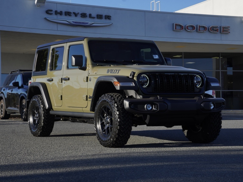 New2026 41 Jeep Wrangler Willys 4D Sport Utility $13,513 off MSRP!All vehicles subject to prior sale. New vehicle pricing includes all offers and incentives. The estimated selling price that appears after calculating dealer offers is for informational purposes, only. You may not qualify for all the offers, incentives, discounts, or financing on this page. Offers, incentives, discounts, or financing are subject to expiration and other restrictions. See Lake Elsinore Chrysler Dodge Jeep Ram for qualifications and complete details or by calling (951) 291-9777. All prices plus government fees and taxes, any finance charges, $85 documentary fee, $33 electronic vehicle registration fee, any emission testing charge and $1.75 per new tire state tire fee. The advertised sale price does not apply to a lease. Offers and prices are not available to other dealers, wholesalers, or brokers. For out-of-state purchase customers, customers must be present to purchase. If shipping is required, dealership must facilitate, no exceptions. The sales price may not be combined with any other offer. The Factory Rebates may not be available on this vehicle if you elect to take advantage of a Special Alternative APR or Special Lease program. Some Factory Rebates are California Resident specific and may vary for residents of other states. The Advertised Price for any/all vehicles offered for sale does not include optional dealer pre-installed accessories or commercial upfits or aftermarket lift kit packages which can be purchased for an additional cost. Contact us for additional information at (951) 291-9773. The sales price includes factory rebates and trade in incentives on this vehicle that are valid on a cash or financed purchase only by an individual for their personal use. All prices will be honored as cash. Some Factory Rebates and trade in incentives are California Resident specific and may be qualifying based and they may also vary for residents of other states.Global Positioning Tracking System (S.W.A.T.) Guaranteed Protection & Recovery Program, Finishing Touch Complete Synthetic Paint Sealant Application & Protection Program, NitroFill Advantage Nitrogen Filled Tires & Protection Program, Genuine Mopar Wheel Locks Anti-Theft Vehicle Wheel Protection, Apple Car Play/Android Auto, Automatic Climate Control, Backup Camera, 4-Wheel Drive Swing Gate Decal, 4.10 Rear Axle Ratio, 7 and 4 Pin Wiring Harness, Advanced Brake Assist, Automatic Headlamps, Aux The equipment and photo display is intended to be used as an informational listing of the factory stock equipment and features for this vehicle. Equipment and features may have changed for this vehicle since its original digitally uploaded listing. All information is believed to be accurate but is not guaranteed. For specific accurate pricing information, mileage, availability, options, etc., please contact Lake Elsinore Chrysler Dodge Jeep Ram at (951) 291-9777. Applicable Incentives and Manufacturer Rebate and Expiration Breakdown’s for this vehicle are as follows. Net Cost Price does include:$1500 – 2026 National Stellantis Loyalty Retail Bonus Cash . Exp. 02/02/2026 This program offers current owners/lessees of any non-commercial (personal registered only) 2023 thru current model year vehicle with 36,000 miles or less (Vehicle cannot have a salvage title, accidents or damage reported on any vehicle history reports) and must still be under the Original Factory Warranty. a Trade in Cash Retail Assistance Allowance Bonus applied toward the trade in value of said vehicle on any retail purchase. This is for any vehicle going through our partnered preferred Lender. Partner Lender for the month of January is Ally Financial Bank. Any Customer with a retail purchase financing with Ally financial will receive this discount$1,000 – Exp. 01/30/2026 This is a dealer discount for all southern California residents. must have proof of residence on any government I.D or state Document. $1,500 – Exp. 01/31/2026