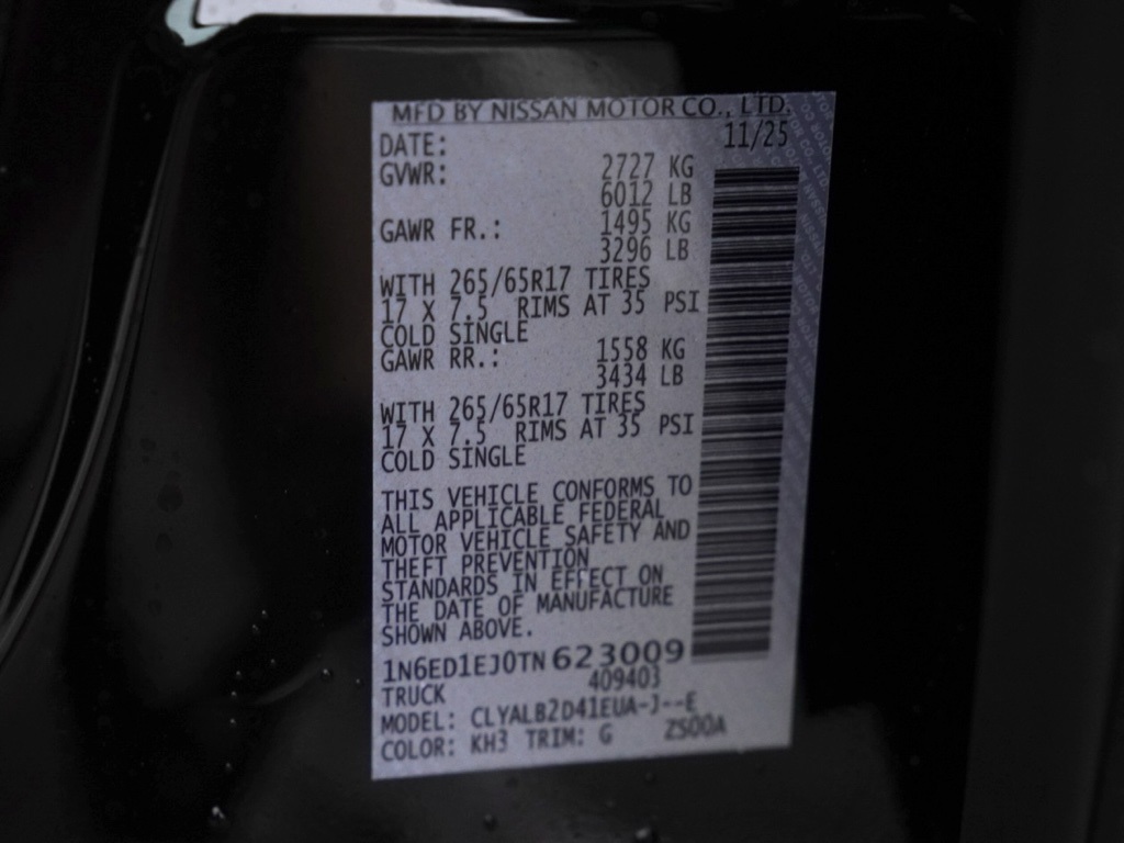 New2026 Super Black Nissan Frontier SV Dark Armor Edition 4D Crew Cab $5,155 off MSRP!Don’t Wait—Drive Today! At Temecula Nissan, we’re dedicated to helping everyone, no matter your credit situation! Bad credit? Bankruptcy? First-time buyer? No problem! Hablamos Español y Negociamos en su idioma! Our unbeatable prices ensure you receive exceptional value on vehicles that fit your budget and exceed your expectations. Priced to Go! Our dynamic pricing guarantees the best deals on vehicles designed to provide the most value for your hard-earned money. Enjoy zero to no money down and payments as low as $199 a month! Don’t miss your chance—schedule your test drive now before your dream car is gone! Call us at (951) 972-8441 or visit us online at temeculanissan.com to get started! Join the ranks of our satisfied customers from Palm Springs, Inland Empire, Riverside, Menifee, Murrieta, Temecula, Moreno Valley, Perris, Escondido, Corona, and San Diego & Imperial Counties. They’ve discovered the exceptional value we offer, and you can too! Experience the thrill of driving your new dream car today—act fast and make it yours before its gone!Frontier SV Dark Armor Edition, RWD, Super Black, Charcoal Cloth, ABS brakes, Alloy wheels, Dark Armor Package, Dark FRONTIER Tailgate Lettering, Dark Grill Surround/Mesh/Inner Fascia, Dark Mirror Caps, Electronic Stability Control, Emergency communication system, Illuminated entry, Low tire pressure warning, Remote keyless entry, Tow Package, Tow Package (T11), Traction control, Wheels: 17″ Dark.All vehicles subject to prior sale. New vehicle pricing includes all offers and incentives. The estimated selling price after dealer offers is for informational purposes only. You may not qualify for all offers, incentives, discounts, or financing. Offers, incentives, discounts, and financing are subject to expiration and other restrictions. See Temecula Nissan for qualifications and details or call (951) 972-8441. All prices plus government fees and taxes, any finance charges, $85 documentary fee, $33 electronic vehicle registration fee, emission testing charges, and $1.75 per new tire state tire fee. Advertised sale price does not apply to leases. Offers and prices not valid for other dealers, wholesalers, or brokers. For out-of-state purchases, customers must be present. If shipping is required, dealership must facilitate, no exceptions. Sales price may not be combined with other offers. Factory Rebates may not be available if you select a Special Alternative APR or Special Lease program. Some Factory Rebates are California resident-specific and may vary for residents of other states. Advertised price does not include optional dealer pre-installed accessories or aftermarket lift kits available for additional cost. Accessory Pricing: GPS (S.W.A.T. Anti-Theft Vehicle Security System): $1,980, Finishing Touch (Synthetic Paint Sealant): $895, NitroFill (Nitrogen Tires): $595, Genuine Nissan Wheel Locks: $525. Sales price includes factory rebates and trade-in incentives valid only on cash/financed purchases by individuals for personal use. All prices honored as cash.18/24 City/Highway MPG Photos & equipment shown are for informational purposes & reflect factory stock features actual vehicle features may differ. All information including pricing and availability is believed accurate but not guaranteed. Net cost price includes applicable rebates and incentives for which not all customers may qualify. Rebates and incentives may vary by residency, financing, and other factors and are subject to change or expiration without notice. For the most current details on pricing, rebates & eligibility contact Temecula Nissan at 951-972-8441. Price Includes: $2500 – Nissan Customer Cash. Exp. 02/02/2026 $1,000 – Retail Trade in Bonus. Exp. 02/04/2026 $500 – Preferred Lender Savings Bonus. Exp. 02/04/2026