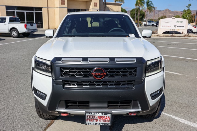 NewThis 2026 Glacier White Nissan Frontier PRO-X RWD is well equipped and includes these features and benefits: Black Accent Package, PRO-X Convenience Package (Heated Steering Wheel, Intelligent Around View Monitor (I-AVM), and Wireless Charging for Personal Devices), Tow Package (T11), 17″ Painted Alloy Wheels, 3.692 Axle Ratio, 4-Wheel Disc Brakes, 6 Speakers, ABS brakes, Air Conditioning, Alloy wheels, AM/FM radio: SiriusXM, Anti-whiplash front head restraints, Auto High-beam Headlights, Automatic temperature control, Blind Spot Warning, Brake assist, Bumpers: body-color, Carpeted Floor Mats, Delay-off headlights, Driver door bin, Driver vanity mirror, Dual front impact airbags, Dual front side impact airbags, Electronic Stability Control, Emergency communication system, Front anti-roll bar, Front Bucket Seats, Front Center Armrest, Front dual zone A/C, Front fog lights, Front reading lights, Front wheel independent suspension, Fully automatic headlights, Heated Front Bucket Seats, Heated steering wheel, Illuminated entry, Knee airbag, Leather steering wheel, Low tire pressure warning, Mud Flaps, Occupant sensing airbag, Overhead airbag, Overhead console, Panic alarm, Passenger door bin, Passenger vanity mirror, Power door mirrors, Power driver seat, Power passenger seat, Power steering, Power windows, PRO Embroidered Premium Cloth Seat Trim, Radio data system, Radio: SXM/AM/FM/AUX/USB Audio System, Rear anti-roll bar, Rear seat center armrest, Rear side impact airbag, Rear step bumper, Remote keyless entry, Security system, Speed control, Speed-sensing steering, Split folding rear seat, Steering wheel mounted audio controls, Tachometer, Telescoping steering wheel, Tilt steering wheel, Traction control, Trip computer, Variably intermittent wipers, Voltmeter, and Wireless Apple CarPlay/Wireless Android Auto Plus 3 Month 3000 Mile Warranty. See Dealer For Details. Apple Car Play/Android Auto, Automatic Climate Control, Backup Camera.• MSRP is the Manufacturer’s Suggested Retail Price, which is not necessarily the sale price and is not the advertised price. For specific pricing information, please contact Pedder Nissan at (951) 766-1446. Price does include: • The Advertised Price for any/all vehicles offered for sale does not include dealer installed accessories. These accessories can be purchased for an additional cost. Price does include: • All vehicles subject to prior sale. All prices plus government fees and taxes, any finance charges, any dealer document processing charges ($85), any electronic filing charge, and any emission testing charge. Offers and prices not available to other dealers, wholesalers, or brokers. For out of state purchase customers, customers must be present to purchase. If shipping is required, dealership must facilitate; no exceptions. Special financing in lieu of any rebates. This price may not be combined with any other offer. Price does include: • All information is believed to be accurate but is not guaranteed. For accurate pricing, mileage, availability, options, etc, please contact Pedder Nissan at (951) 766-1446. The sales price includes factory rebates and trade in incentives on this vehicle that are valid on a cash or financed purchase only by an individual for their personal use. All prices will be honored as cash. The sale price does not apply to a lease. The factory rebates may not be available on this vehicle if you elect to take advantage of a Special Alternative APR or Special Lease program. Some Factory Rebates and trade in incentives are California Resident specific and may be qualifying based and they may also vary for residents of other states. Applicable Trade in Incentives and Manufacturer Rebate and Expiration Breakdown’s for this vehicle are as follows. Price does include:$2000 – Nissan Customer Cash. Exp. 12/01/2025