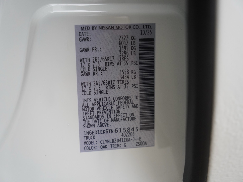 New2026 Glacier White Nissan Frontier SV Dark Armor Edition 4D Crew Cab $5,265 off MSRP!Don’t Wait—Drive Today! At Temecula Nissan, we’re dedicated to helping everyone, no matter your credit situation! Bad credit? Bankruptcy? First-time buyer? No problem! Hablamos Español y Negociamos en su idioma! Our unbeatable prices ensure you receive exceptional value on vehicles that fit your budget and exceed your expectations. Priced to Go! Our dynamic pricing guarantees the best deals on vehicles designed to provide the most value for your hard-earned money. Enjoy zero to no money down and payments as low as $199 a month! Don’t miss your chance—schedule your test drive now before your dream car is gone! Call us at (951) 972-8441 or visit us online at temeculanissan.com to get started! Join the ranks of our satisfied customers from Palm Springs, Inland Empire, Riverside, Menifee, Murrieta, Temecula, Moreno Valley, Perris, Escondido, Corona, and San Diego & Imperial Counties. They’ve discovered the exceptional value we offer, and you can too! Experience the thrill of driving your new dream car today—act fast and make it yours before its gone!Apple Car Play/Android Auto, Automatic Climate Control, Backup Camera, Frontier SV Dark Armor Edition, 9-Speed Automatic with Overdrive, 4WD, Glacier White, Charcoal Cloth, Dark Armor Package, Tow Package, Tow Package (T11).All vehicles subject to prior sale. New vehicle pricing includes all offers and incentives. The estimated selling price after dealer offers is for informational purposes only. You may not qualify for all offers, incentives, discounts, or financing. Offers, incentives, discounts, and financing are subject to expiration and other restrictions. See Temecula Nissan for qualifications and details or call (951) 972-8441. All prices plus government fees and taxes, any finance charges, $85 documentary fee, $33 electronic vehicle registration fee, emission testing charges, and $1.75 per new tire state tire fee. Advertised sale price does not apply to leases. Offers and prices not valid for other dealers, wholesalers, or brokers. For out-of-state purchases, customers must be present. If shipping is required, dealership must facilitate, no exceptions. Sales price may not be combined with other offers. Factory Rebates may not be available if you select a Special Alternative APR or Special Lease program. Some Factory Rebates are California resident-specific and may vary for residents of other states. Advertised price does not include optional dealer pre-installed accessories or aftermarket lift kits available for additional cost. Accessory Pricing: GPS (S.W.A.T. Anti-Theft Vehicle Security System): $1,980, Finishing Touch (Synthetic Paint Sealant): $895, NitroFill (Nitrogen Tires): $595, Genuine Nissan Wheel Locks: $525. Sales price includes factory rebates and trade-in incentives valid only on cash/financed purchases by individuals for personal use. All prices honored as cash.18/23 City/Highway MPG Photos & equipment shown are for informational purposes & reflect factory stock features actual vehicle features may differ. All information including pricing and availability is believed accurate but not guaranteed. Net cost price includes applicable rebates and incentives for which not all customers may qualify. Rebates and incentives may vary by residency, financing, and other factors and are subject to change or expiration without notice. For the most current details on pricing, rebates & eligibility contact Temecula Nissan at 951-972-8441. Price Includes: $2500 – Nissan Customer Cash. Exp. 02/02/2026