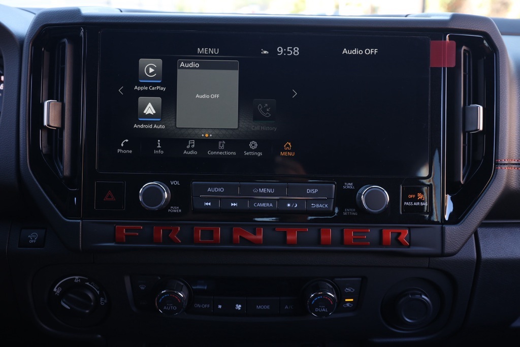 NewCitrus Strike 2026 Nissan Frontier PRO-4X 4WD 9-Speed Automatic with Overdrive 3.8L DI DOHC 24V V6 Automatic Climate Control, Backup Camera, 4WD.This 2026 Citrus Strike Nissan Frontier PRO-4X 4WD is well equipped and includes these features and benefits: PRO-4X Convenience Package, 4WD, 17″ Painted Alloy Wheels, 3.692 Axle Ratio, 4-Wheel Disc Brakes, 6 Speakers, ABS brakes, Air Conditioning, Alloy wheels, AM/FM radio: SiriusXM, Anti-whiplash front head restraints, Auto High-beam Headlights, Automatic temperature control, Blind Spot Warning, Brake assist, Bumpers: body-color, Delay-off headlights, Driver door bin, Driver vanity mirror, Dual front impact airbags, Dual front side impact airbags, Electronic Stability Control, Electronic Tailgate Lock, Emergency communication system, Essentials Kit, Front anti-roll bar, Front Bucket Seats, Front Center Armrest, Front dual zone A/C, Front fog lights, Front reading lights, Front wheel independent suspension, Fully automatic headlights, Heated Front Bucket Seats, Heated front seats, Heated steering wheel, Illuminated entry, Knee airbag, Leather steering wheel, Low tire pressure warning, Mud Flaps, Occupant sensing airbag, Off-Road Style Step Rails, Overhead airbag, Overhead console, Panic alarm, Passenger door bin, Passenger vanity mirror, Power door mirrors, Power driver seat, Power passenger seat, Power steering, Power windows, Premium Paint, PRO Embroidered Premium Cloth Seat Trim, Radio data system, Radio: SXM/AM/FM/AUX/USB Audio System, Rear anti-roll bar, Rear seat center armrest, Rear side impact airbag, Rear step bumper, Remote keyless entry, Security system, Speed control, Speed-sensing steering, Split folding rear seat, Steering wheel mounted audio controls, Tachometer, Telescoping steering wheel, Tilt steering wheel, Traction control, Trip computer, Variably intermittent wipers, Voltmeter, and Wireless Apple CarPlay/Wireless Android Auto.We have many different makes and models available including a wide selection of cars, trucks, vans, and SUVs. Raceway Nissan in Riverside County has access to thousands of new and used vehicles which means we can find the right vehicle for you and your family. We are proud to serve the city of Riverside, all of the Metro Riverside County area, and the Inland Empire from our location in Moreno Valley. We are conveniently located in Riverside near the cities of San Bernardino, Redlands, Ontario, Corona, Perris, Beaumont, Temecula, Hemet and many others. We offer military discounts and work with many Credit Unions. Price includes: $2000 – Nissan Customer Cash. Exp. 12/01/2025