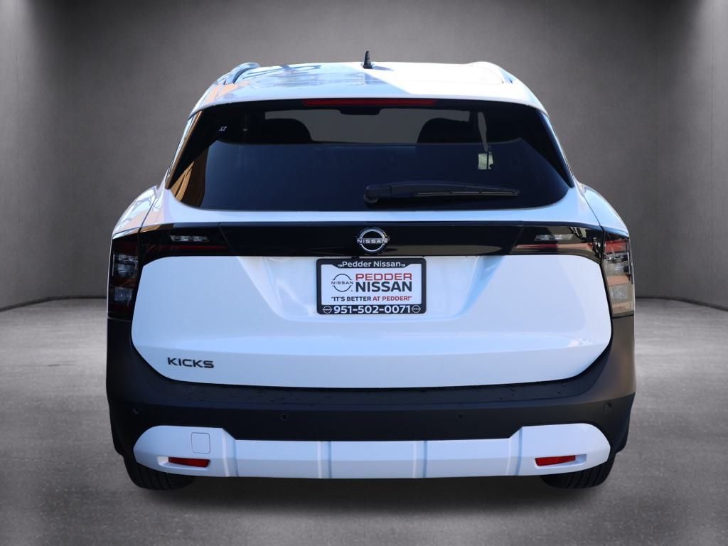 NewThis 2026 Fresh Powder Nissan Kicks SV FWD is well equipped and includes these features and benefits: Cold Weather Package (Heated Front Seats, Heated Mirrors, and Rear Floor Heater Ducts), SV Premium Package (Illuminated Driver & Passenger Sun Visors, Panoramic Moonroof, and Sunglass Holder), 4 Speakers, 4-Wheel Disc Brakes, ABS brakes, Air Conditioning, AM/FM radio, Auto High-beam Headlights, Automatic temperature control, Blind Spot Warning, Brake assist, Bumpers: body-color, Carpeted Floor Mats & Underfloor Protector, Cloth Seat Trim, Driver door bin, Driver vanity mirror, Dual front impact airbags, Dual front side impact airbags, Electronic Stability Control, Emergency communication system, Exterior Parking Camera Rear, Front anti-roll bar, Front Bucket Seats, Front Center Armrest, Front reading lights, Front wheel independent suspension, Fully automatic headlights, Illuminated entry, Knee airbag, Low tire pressure warning, NissanConnect featuring Apple CarPlay and Android Auto, Occupant sensing airbag, Outside temperature display, Overhead airbag, Panic alarm, Panoramic Headliner Illumination, Passenger door bin, Passenger vanity mirror, Power door mirrors, Power steering, Power windows, Radio data system, Radio: AM/FM/SiriusXM Audio System, Rear anti-roll bar, Rear reading lights, Rear side impact airbag, Rear window defroster, Rear window wiper, Remote keyless entry, Security system, Speed control, Speed-sensing steering, Splash Guards, Split folding rear seat, Spoiler, Sport steering wheel, Steering wheel mounted audio controls, Tachometer, Telescoping steering wheel, Tilt steering wheel, Traction control, Trip computer, Variably intermittent wipers, and Wheels: 17″ Steel Flex w/Full Covers Plus 3 Month 3000 Mile Warranty. See Dealer For Details. Apple Car Play/Android Auto, Automatic Climate Control, Backup Camera.28/35 City/Highway MPG• MSRP is the Manufacturer’s Suggested Retail Price, which is not necessarily the sale price and is not the advertised price. For specific pricing information, please contact Pedder Nissan at (951) 766-1446. Price does include: • The Advertised Price for any/all vehicles offered for sale does not include dealer installed accessories. These accessories can be purchased for an additional cost. Price does include: • All vehicles subject to prior sale. All prices plus government fees and taxes, any finance charges, any dealer document processing charges ($85), any electronic filing charge, and any emission testing charge. Offers and prices not available to other dealers, wholesalers, or brokers. For out of state purchase customers, customers must be present to purchase. If shipping is required, dealership must facilitate; no exceptions. Special financing in lieu of any rebates. This price may not be combined with any other offer. Price does include: • All information is believed to be accurate but is not guaranteed. For accurate pricing, mileage, availability, options, etc, please contact Pedder Nissan at (951) 766-1446. The sales price includes factory rebates and trade in incentives on this vehicle that are valid on a cash or financed purchase only by an individual for their personal use. All prices will be honored as cash. The sale price does not apply to a lease. The factory rebates may not be available on this vehicle if you elect to take advantage of a Special Alternative APR or Special Lease program. Some Factory Rebates and trade in incentives are California Resident specific and may be qualifying based and they may also vary for residents of other states. Applicable Trade in Incentives and Manufacturer Rebate and Expiration Breakdown’s for this vehicle are as follows. Price does include:$1000 – Nissan Customer Cash. Exp. 02/02/2026