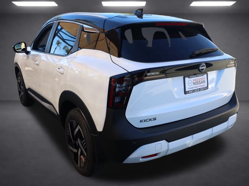 NewThis 2026 Aspen White Tricoat/Super Black Nissan Kicks SV FWD is well equipped and includes these features and benefits: Cold Weather Package (Heated Front Seats, Heated Mirrors, and Rear Floor Heater Ducts), SV Premium Package (Illuminated Driver & Passenger Sun Visors, Panoramic Moonroof, and Sunglass Holder), 2-Tone Premium Paint, 4 Speakers, 4-Wheel Disc Brakes, ABS brakes, Air Conditioning, AM/FM radio, Auto High-beam Headlights, Automatic temperature control, Blind Spot Warning, Brake assist, Bumpers: body-color, Carpeted Floor Mats & Underfloor Protector, Cloth Seat Trim, Driver door bin, Driver vanity mirror, Dual front impact airbags, Dual front side impact airbags, Electronic Stability Control, Emergency communication system, Exterior Parking Camera Rear, Front anti-roll bar, Front Bucket Seats, Front Center Armrest, Front reading lights, Front wheel independent suspension, Fully automatic headlights, Illuminated entry, Knee airbag, Low tire pressure warning, NissanConnect featuring Apple CarPlay and Android Auto, Occupant sensing airbag, Outside temperature display, Overhead airbag, Panic alarm, Passenger door bin, Passenger vanity mirror, Power door mirrors, Power steering, Power windows, Radio data system, Radio: AM/FM/SiriusXM Audio System, Rear anti-roll bar, Rear reading lights, Rear side impact airbag, Rear window defroster, Rear window wiper, Remote keyless entry, Security system, Speed control, Speed-sensing steering, Splash Guards, Split folding rear seat, Spoiler, Sport steering wheel, Steering wheel mounted audio controls, Tachometer, Telescoping steering wheel, Tilt steering wheel, Traction control, Trip computer, Variably intermittent wipers, and Wheels: 17″ Steel Flex w/Full Covers Plus 3 Month 3000 Mile Warranty. See Dealer For Details. Apple Car Play/Android Auto, Automatic Climate Control, Backup Camera.28/35 City/Highway MPG• MSRP is the Manufacturer’s Suggested Retail Price, which is not necessarily the sale price and is not the advertised price. For specific pricing information, please contact Pedder Nissan at (951) 766-1446. Price does include: • The Advertised Price for any/all vehicles offered for sale does not include dealer installed accessories. These accessories can be purchased for an additional cost. Price does include: • All vehicles subject to prior sale. All prices plus government fees and taxes, any finance charges, any dealer document processing charges ($85), any electronic filing charge, and any emission testing charge. Offers and prices not available to other dealers, wholesalers, or brokers. For out of state purchase customers, customers must be present to purchase. If shipping is required, dealership must facilitate; no exceptions. Special financing in lieu of any rebates. This price may not be combined with any other offer. Price does include: • All information is believed to be accurate but is not guaranteed. For accurate pricing, mileage, availability, options, etc, please contact Pedder Nissan at (951) 766-1446. The sales price includes factory rebates and trade in incentives on this vehicle that are valid on a cash or financed purchase only by an individual for their personal use. All prices will be honored as cash. The sale price does not apply to a lease. The factory rebates may not be available on this vehicle if you elect to take advantage of a Special Alternative APR or Special Lease program. Some Factory Rebates and trade in incentives are California Resident specific and may be qualifying based and they may also vary for residents of other states. Applicable Trade in Incentives and Manufacturer Rebate and Expiration Breakdown’s for this vehicle are as follows. Price does include:$1000 – Nissan Customer Cash. Exp. 03/02/2026 $500 – Nissan WR MY26 Kicks Customer Cash – February. Exp. 03/02/2026