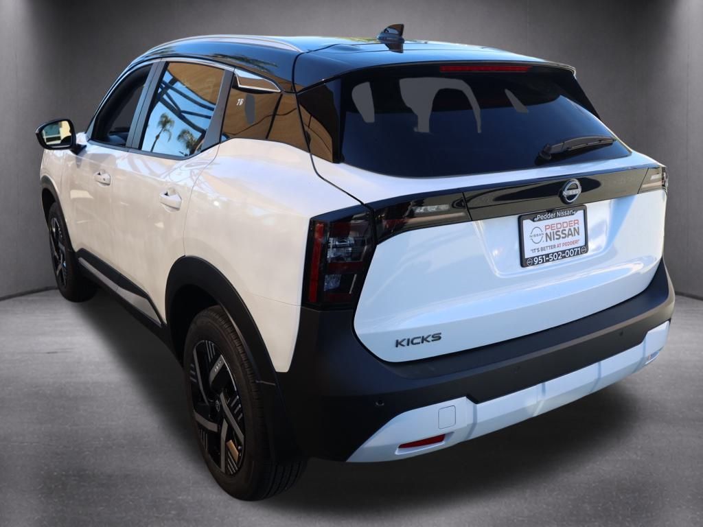 NewThis 2026 Aspen White Tricoat/Super Black Nissan Kicks SV FWD is well equipped and includes these features and benefits: Cold Weather Package (Heated Front Seats, Heated Mirrors, and Rear Floor Heater Ducts), SV Premium Package (Illuminated Driver & Passenger Sun Visors, Panoramic Moonroof, and Sunglass Holder), 2-Tone Premium Paint, 4 Speakers, 4-Wheel Disc Brakes, ABS brakes, Air Conditioning, AM/FM radio, Auto High-beam Headlights, Automatic temperature control, Blind Spot Warning, Brake assist, Bumpers: body-color, Carpeted Floor Mats & Underfloor Protector, Cloth Seat Trim, Driver door bin, Driver vanity mirror, Dual front impact airbags, Dual front side impact airbags, Electronic Stability Control, Emergency communication system, Exterior Parking Camera Rear, Front anti-roll bar, Front Bucket Seats, Front Center Armrest, Front reading lights, Front wheel independent suspension, Fully automatic headlights, Illuminated entry, Knee airbag, Low tire pressure warning, NissanConnect featuring Apple CarPlay and Android Auto, Occupant sensing airbag, Outside temperature display, Overhead airbag, Panic alarm, Passenger door bin, Passenger vanity mirror, Power door mirrors, Power steering, Power windows, Radio data system, Radio: AM/FM/SiriusXM Audio System, Rear anti-roll bar, Rear reading lights, Rear side impact airbag, Rear window defroster, Rear window wiper, Remote keyless entry, Security system, Speed control, Speed-sensing steering, Splash Guards, Split folding rear seat, Spoiler, Sport steering wheel, Steering wheel mounted audio controls, Tachometer, Telescoping steering wheel, Tilt steering wheel, Traction control, Trip computer, Variably intermittent wipers, and Wheels: 17″ Steel Flex w/Full Covers Plus 3 Month 3000 Mile Warranty. See Dealer For Details. Apple Car Play/Android Auto, Automatic Climate Control, Backup Camera.28/35 City/Highway MPG• MSRP is the Manufacturer’s Suggested Retail Price, which is not necessarily the sale price and is not the advertised price. For specific pricing information, please contact Pedder Nissan at (951) 766-1446. Price does include: • The Advertised Price for any/all vehicles offered for sale does not include dealer installed accessories. These accessories can be purchased for an additional cost. Price does include: • All vehicles subject to prior sale. All prices plus government fees and taxes, any finance charges, any dealer document processing charges ($85), any electronic filing charge, and any emission testing charge. Offers and prices not available to other dealers, wholesalers, or brokers. For out of state purchase customers, customers must be present to purchase. If shipping is required, dealership must facilitate; no exceptions. Special financing in lieu of any rebates. This price may not be combined with any other offer. Price does include: • All information is believed to be accurate but is not guaranteed. For accurate pricing, mileage, availability, options, etc, please contact Pedder Nissan at (951) 766-1446. The sales price includes factory rebates and trade in incentives on this vehicle that are valid on a cash or financed purchase only by an individual for their personal use. All prices will be honored as cash. The sale price does not apply to a lease. The factory rebates may not be available on this vehicle if you elect to take advantage of a Special Alternative APR or Special Lease program. Some Factory Rebates and trade in incentives are California Resident specific and may be qualifying based and they may also vary for residents of other states. Applicable Trade in Incentives and Manufacturer Rebate and Expiration Breakdown’s for this vehicle are as follows. Price does include:$1000 – Nissan Customer Cash. Exp. 02/02/2026