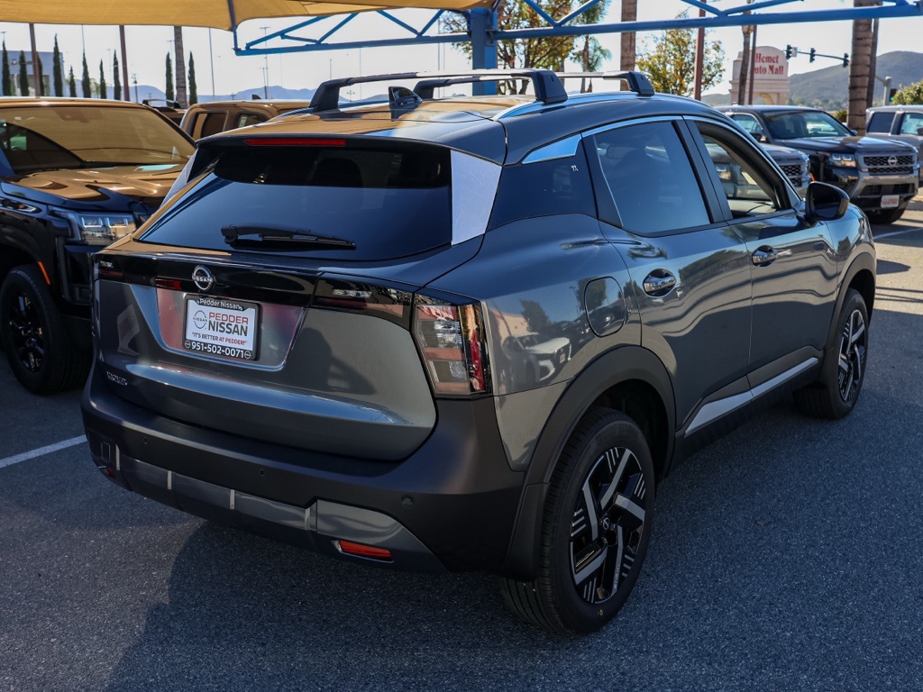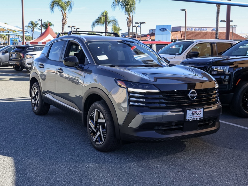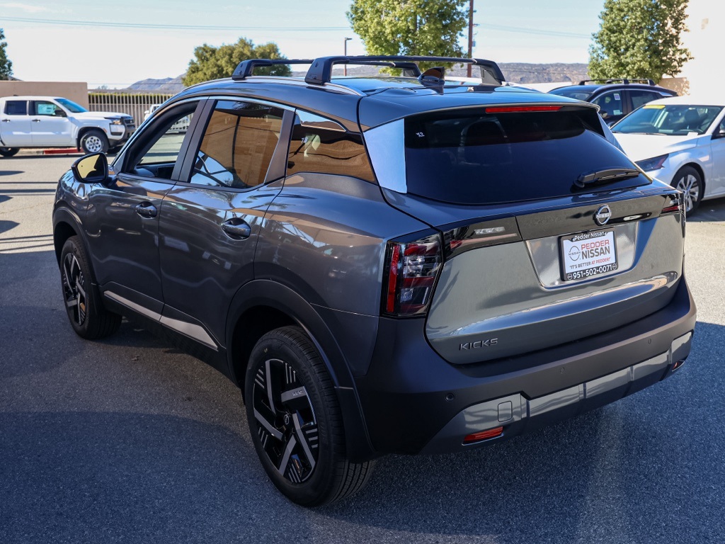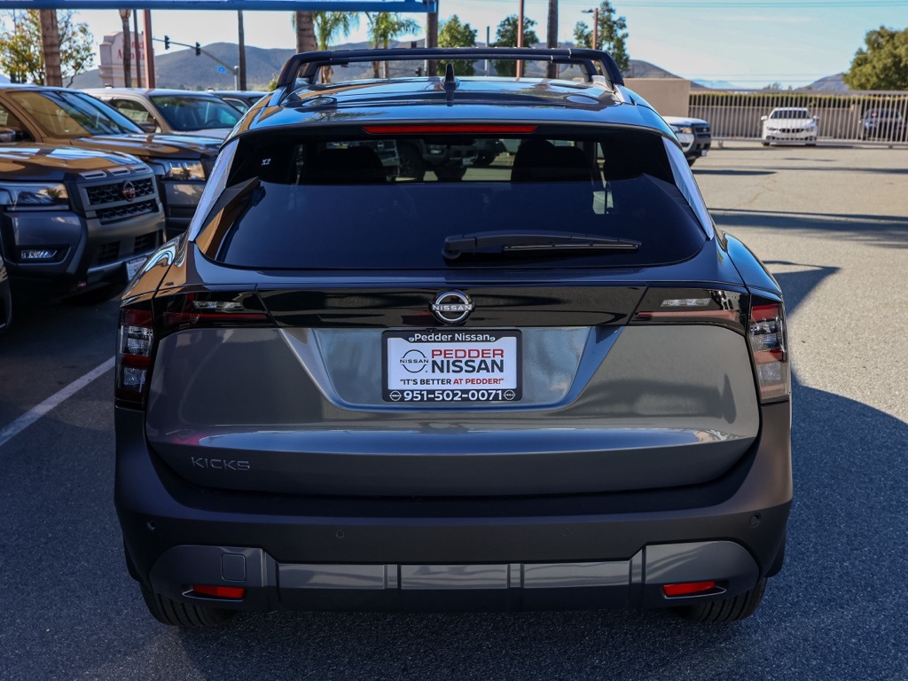 NewThis 2026 Gun Metallic Nissan Kicks SV FWD is well equipped and includes these features and benefits: Cold Weather Package (Heated Front Seats, Heated Mirrors, and Rear Floor Heater Ducts), 4 Speakers, 4-Wheel Disc Brakes, ABS brakes, Air Conditioning, AM/FM radio, Auto High-beam Headlights, Automatic temperature control, Blind Spot Warning, Brake assist, Bumpers: body-color, Carpeted Floor Mats & Underfloor Protector, Cloth Seat Trim, Crossbars, Driver door bin, Driver vanity mirror, Dual front impact airbags, Dual front side impact airbags, Electronic Stability Control, Emergency communication system, Exterior Parking Camera Rear, Front anti-roll bar, Front Bucket Seats, Front Center Armrest, Front reading lights, Front wheel independent suspension, Fully automatic headlights, Illuminated entry, Knee airbag, Low tire pressure warning, NissanConnect featuring Apple CarPlay and Android Auto, Occupant sensing airbag, Outside temperature display, Overhead airbag, Panic alarm, Passenger door bin, Passenger vanity mirror, Power door mirrors, Power steering, Power windows, Radio data system, Radio: AM/FM/SiriusXM Audio System, Rear anti-roll bar, Rear reading lights, Rear side impact airbag, Rear window defroster, Rear window wiper, Remote keyless entry, Security system, Speed control, Speed-sensing steering, Splash Guards, Split folding rear seat, Spoiler, Sport steering wheel, Steering wheel mounted audio controls, Tachometer, Telescoping steering wheel, Tilt steering wheel, Traction control, Trip computer, Variably intermittent wipers, and Wheels: 17″ Steel Flex w/Full Covers Plus 3 Month 3000 Mile Warranty. See Dealer For Details. Apple Car Play/Android Auto, Automatic Climate Control, Backup Camera.28/35 City/Highway MPG• MSRP is the Manufacturer’s Suggested Retail Price, which is not necessarily the sale price and is not the advertised price. For specific pricing information, please contact Pedder Nissan at (951) 766-1446. Price does include: • The Advertised Price for any/all vehicles offered for sale does not include dealer installed accessories. These accessories can be purchased for an additional cost. Price does include: • All vehicles subject to prior sale. All prices plus government fees and taxes, any finance charges, any dealer document processing charges ($85), any electronic filing charge, and any emission testing charge. Offers and prices not available to other dealers, wholesalers, or brokers. For out of state purchase customers, customers must be present to purchase. If shipping is required, dealership must facilitate; no exceptions. Special financing in lieu of any rebates. This price may not be combined with any other offer. Price does include: • All information is believed to be accurate but is not guaranteed. For accurate pricing, mileage, availability, options, etc, please contact Pedder Nissan at (951) 766-1446. The sales price includes factory rebates and trade in incentives on this vehicle that are valid on a cash or financed purchase only by an individual for their personal use. All prices will be honored as cash. The sale price does not apply to a lease. The factory rebates may not be available on this vehicle if you elect to take advantage of a Special Alternative APR or Special Lease program. Some Factory Rebates and trade in incentives are California Resident specific and may be qualifying based and they may also vary for residents of other states. Applicable Trade in Incentives and Manufacturer Rebate and Expiration Breakdown’s for this vehicle are as follows. Price does include:$1000 – Nissan Customer Cash. Exp. 01/05/2026