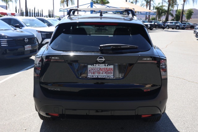 NewThis 2026 Super Black Nissan Kicks SR FWD is well equipped and includes these features and benefits: 17″ Alloy Wheels, 19″ Alloy Wheels, 4-Wheel Disc Brakes, 6 Speakers, ABS brakes, Air Conditioning, Alloy wheels, AM/FM radio, Auto High-beam Headlights, Automatic temperature control, Brake assist, Bumpers: body-color, Carpeted Floor Mats & Underfloor Protector, Crossbars, Delay-off headlights, Driver door bin, Driver vanity mirror, Dual front impact airbags, Dual front side impact airbags, Electronic Stability Control, Emergency communication system: NissanConnect Services, Exterior Parking Camera Rear, Front anti-roll bar, Front Bucket Seats, Front Center Armrest, Front reading lights, Front wheel independent suspension, Fully automatic headlights, Garage door transmitter: myQ Connected Garage, Illuminated entry, Knee airbag, Leather Shift Knob, Leather steering wheel, Low tire pressure warning, NissanConnect featuring Apple CarPlay and Android Auto, Occupant sensing airbag, Outside temperature display, Overhead airbag, Overhead console, Panic alarm, Passenger door bin, Passenger vanity mirror, Power door mirrors, Power steering, Power windows, Radio data system, Radio: AM/FM/SiriusXM Audio System, Rear anti-roll bar, Rear reading lights, Rear seat center armrest, Rear side impact airbag, Rear window defroster, Rear window wiper, Remote keyless entry, Security system, Speed control, Speed-sensing steering, Splash Guards, Split folding rear seat, Spoiler, Sport Leatherette w/Cloth Insert Seat Trim, Sport steering wheel, Steering wheel mounted audio controls, Tachometer, Telescoping steering wheel, Tilt steering wheel, Traction control, Trip computer, Turn signal indicator mirrors, and Variably intermittent wipers Plus 3 Month 3000 Mile Warranty. See Dealer For Details. Apple Car Play/Android Auto, Automatic Climate Control, Backup Camera.28/35 City/Highway MPG• MSRP is the Manufacturer’s Suggested Retail Price, which is not necessarily the sale price and is not the advertised price. For specific pricing information, please contact Pedder Nissan at (951) 766-1446. Price does include: • The Advertised Price for any/all vehicles offered for sale does not include dealer installed accessories. These accessories can be purchased for an additional cost. Price does include: • All vehicles subject to prior sale. All prices plus government fees and taxes, any finance charges, any dealer document processing charges ($85), any electronic filing charge, and any emission testing charge. Offers and prices not available to other dealers, wholesalers, or brokers. For out of state purchase customers, customers must be present to purchase. If shipping is required, dealership must facilitate; no exceptions. Special financing in lieu of any rebates. This price may not be combined with any other offer. Price does include: • All information is believed to be accurate but is not guaranteed. For accurate pricing, mileage, availability, options, etc, please contact Pedder Nissan at (951) 766-1446. The sales price includes factory rebates and trade in incentives on this vehicle that are valid on a cash or financed purchase only by an individual for their personal use. All prices will be honored as cash. The sale price does not apply to a lease. The factory rebates may not be available on this vehicle if you elect to take advantage of a Special Alternative APR or Special Lease program. Some Factory Rebates and trade in incentives are California Resident specific and may be qualifying based and they may also vary for residents of other states. Applicable Trade in Incentives and Manufacturer Rebate and Expiration Breakdown’s for this vehicle are as follows. Price does include:$1000 – Nissan Customer Cash. Exp. 12/01/2025