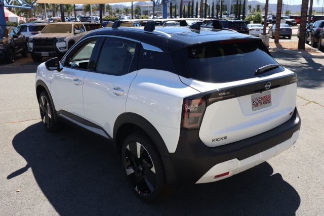 NewThis 2026 Aspen White Tricoat/Super Black Nissan Kicks SR FWD is well equipped and includes these features and benefits: 17″ Alloy Wheels, 19″ Alloy Wheels, 2-Tone Premium Paint, 4-Wheel Disc Brakes, 6 Speakers, ABS brakes, Air Conditioning, Alloy wheels, AM/FM radio, Auto High-beam Headlights, Automatic temperature control, Brake assist, Bumpers: body-color, Carpeted Floor Mats & Underfloor Protector, Crossbars, Delay-off headlights, Driver door bin, Driver vanity mirror, Dual front impact airbags, Dual front side impact airbags, Electronic Stability Control, Emergency communication system: NissanConnect Services, Exterior Parking Camera Rear, Front anti-roll bar, Front Bucket Seats, Front Center Armrest, Front reading lights, Front wheel independent suspension, Fully automatic headlights, Garage door transmitter: myQ Connected Garage, Illuminated entry, Knee airbag, Leather Shift Knob, Leather steering wheel, Low tire pressure warning, NissanConnect featuring Apple CarPlay and Android Auto, Occupant sensing airbag, Outside temperature display, Overhead airbag, Overhead console, Panic alarm, Passenger door bin, Passenger vanity mirror, Power door mirrors, Power steering, Power windows, Radio data system, Radio: AM/FM/SiriusXM Audio System, Rear anti-roll bar, Rear reading lights, Rear seat center armrest, Rear side impact airbag, Rear window defroster, Rear window wiper, Remote keyless entry, Security system, Speed control, Speed-sensing steering, Splash Guards, Split folding rear seat, Spoiler, Sport Leatherette w/Cloth Insert Seat Trim, Sport steering wheel, Steering wheel mounted audio controls, Tachometer, Telescoping steering wheel, Tilt steering wheel, Traction control, Trip computer, Turn signal indicator mirrors, and Variably intermittent wipers Plus 3 Month 3000 Mile Warranty. See Dealer For Details. Apple Car Play/Android Auto, Automatic Climate Control, Backup Camera.28/35 City/Highway MPG• MSRP is the Manufacturer’s Suggested Retail Price, which is not necessarily the sale price and is not the advertised price. For specific pricing information, please contact Pedder Nissan at (951) 766-1446. Price does include: • The Advertised Price for any/all vehicles offered for sale does not include dealer installed accessories. These accessories can be purchased for an additional cost. Price does include: • All vehicles subject to prior sale. All prices plus government fees and taxes, any finance charges, any dealer document processing charges ($85), any electronic filing charge, and any emission testing charge. Offers and prices not available to other dealers, wholesalers, or brokers. For out of state purchase customers, customers must be present to purchase. If shipping is required, dealership must facilitate; no exceptions. Special financing in lieu of any rebates. This price may not be combined with any other offer. Price does include: • All information is believed to be accurate but is not guaranteed. For accurate pricing, mileage, availability, options, etc, please contact Pedder Nissan at (951) 766-1446. The sales price includes factory rebates and trade in incentives on this vehicle that are valid on a cash or financed purchase only by an individual for their personal use. All prices will be honored as cash. The sale price does not apply to a lease. The factory rebates may not be available on this vehicle if you elect to take advantage of a Special Alternative APR or Special Lease program. Some Factory Rebates and trade in incentives are California Resident specific and may be qualifying based and they may also vary for residents of other states. Applicable Trade in Incentives and Manufacturer Rebate and Expiration Breakdown’s for this vehicle are as follows. Price does include:$1000 – Nissan Customer Cash. Exp. 12/01/2025
