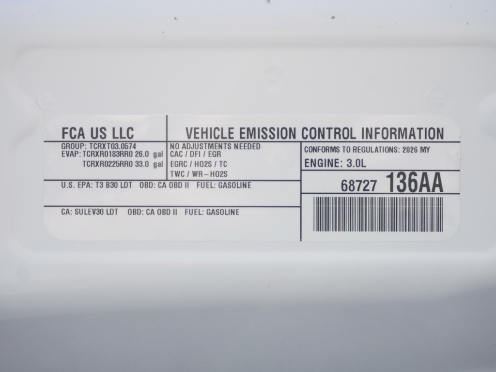 New2026 Bright White Clearcoat Ram 1500 Big Horn Sport Appearance Edition 4D Crew Cab $19,891 off MSRP!All vehicles subject to prior sale. New vehicle pricing includes all offers and incentives. The estimated selling price that appears after calculating dealer offers is for informational purposes, only. You may not qualify for all the offers, incentives, discounts, or financing on this page. Offers, incentives, discounts, or financing are subject to expiration and other restrictions. See Lake Elsinore Chrysler Dodge Jeep Ram for qualifications and complete details or by calling (951) 291-9777. All prices plus government fees and taxes, any finance charges, $85 documentary fee, $33 electronic vehicle registration fee, any emission testing charge and $1.75 per new tire state tire fee. The advertised sale price does not apply to a lease. Offers and prices are not available to other dealers, wholesalers, or brokers. For out-of-state purchase customers, customers must be present to purchase. If shipping is required, dealership must facilitate, no exceptions. The sales price may not be combined with any other offer. The Factory Rebates may not be available on this vehicle if you elect to take advantage of a Special Alternative APR or Special Lease program. Some Factory Rebates are California Resident specific and may vary for residents of other states. The Advertised Price for any/all vehicles offered for sale does not include optional dealer pre-installed accessories or commercial upfits or aftermarket lift kit packages which can be purchased for an additional cost. Contact us for additional information at (951) 291-9773. The sales price includes factory rebates and trade in incentives on this vehicle that are valid on a cash or financed purchase only by an individual for their personal use. All prices will be honored as cash. Some Factory Rebates and trade in incentives are California Resident specific and may be qualifying based and they may also vary for residents of other states.Global Positioning Tracking System (S.W.A.T.) Guaranteed Protection & Recovery Program, Finishing Touch Complete Synthetic Paint Sealant Application & Protection Program, NitroFill Advantage Nitrogen Filled Tires & Protection Program, Genuine Mopar Wheel Locks Anti-Theft Vehicle Wheel Protection, ParkView® / Park Assist Rear Back–Up Camera, Blind–Spot and Cross–Path Detection, Bluetooth Car Audio Receiver, SiriusXM® Satelite Radio, Apple Car Play/Android Auto, Automatic Climate Control, Backup Camera, 20–Inch Aluminum Painted/Polished Wheels, Trailer Tow Package, Global Positioning System (S.W.A.T. Anti-Theft Vehicle Security System, 1500 Big Horn Sport Appearance Edition Crew Cab 4X4, 4D Crew Cab, 3.0L I6 Hurricane SO Twin Turbo with Stop/Start, 8-Speed Automatic, 4WD, Bright White Clearcoat, Black w/Deluxe Cloth Bucket Seats, 115V Auxiliary Power O The equipment and photo display is intended to be used as an informational listing of the factory stock equipment and features for this vehicle. Equipment and features may have changed for this vehicle since its original digitally uploaded listing. All information is believed to be accurate but is not guaranteed. For specific accurate pricing information, mileage, availability, options, etc., please contact Lake Elsinore Chrysler Dodge Jeep Ram at (951) 291-9777. Applicable Incentives and Manufacturer Rebate and Expiration Breakdown’s for this vehicle are as follows. Net Cost Price does include:$1000 – 2026 West BC Regional Bonus Cash . Exp. 01/20/2026 $1000 – 2026 West BC SFS Bonus Cash . Exp. 01/20/2026 $3500 – 2026 National Retail Consumer Cash . Exp. 02/02/2026 , $2,500 – Retail Trade in Assistance HE2000. Exp. 01/30/2026 Overaged Inventory Bonus Cash applies to specific Vin and is only applied to qualifying customers. Validate by calling dealer to see if you qualify, all customers who qualify must have proper documentation if needed in order to obtain this Rebate $2,000 – Exp. 01/31/2026