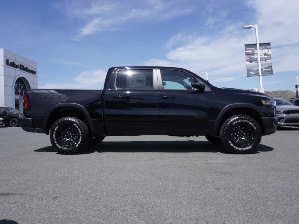New2026 Diamond Black Crystal Pearlcoat Ram 1500 Rebel 4D Crew Cab $17,592 off MSRP!All vehicles subject to prior sale. New vehicle pricing includes all offers and incentives. The estimated selling price that appears after calculating dealer offers is for informational purposes, only. You may not qualify for all the offers, incentives, discounts, or financing on this page. Offers, incentives, discounts, or financing are subject to expiration and other restrictions. See Lake Elsinore Chrysler Dodge Jeep Ram for qualifications and complete details or by calling (951) 291-9777. All prices plus government fees and taxes, any finance charges, $85 documentary fee, $33 electronic vehicle registration fee, any emission testing charge and $1.75 per new tire state tire fee. The advertised sale price does not apply to a lease. Offers and prices are not available to other dealers, wholesalers, or brokers. For out-of-state purchase customers, customers must be present to purchase. If shipping is required, dealership must facilitate, no exceptions. The sales price may not be combined with any other offer. The Factory Rebates may not be available on this vehicle if you elect to take advantage of a Special Alternative APR or Special Lease program. Some Factory Rebates are California Resident specific and may vary for residents of other states. The Advertised Price for any/all vehicles offered for sale does not include optional dealer pre-installed accessories or commercial upfits or aftermarket lift kit packages which can be purchased for an additional cost. Contact us for additional information at (951) 291-9773. The sales price includes factory rebates and trade in incentives on this vehicle that are valid on a cash or financed purchase only by an individual for their personal use. All prices will be honored as cash. Some Factory Rebates and trade in incentives are California Resident specific and may be qualifying based and they may also vary for residents of other states.KARR Bluetooth Security System Anti-Theft Vehicle Security System & Protection Program, Global Positioning Tracking System (S.W.A.T.) Guaranteed Protection & Recovery Program, Finishing Touch Complete Synthetic Paint Sealant Application & Protection Program, NitroFill Advantage Nitrogen Filled Tires & Protection Program, Genuine Mopar Wheel Locks Anti-Theft Vehicle Wheel Protection, ParkView® / Park Assist Rear Back–Up Camera, Blind–Spot and Cross–Path Detection, Bluetooth Car Audio Receiver, SiriusXM® Satelite Radio, Apple Car Play/Android Auto, Automatic Climate Control, Backup Camera, 1500 Rebel Crew Cab 4X4, 4D Crew Cab, 3.0L I6, 8-Speed Automatic, 4WD, Diamond Black Crystal Pearlcoat, Black w/Lux Leather Trimmed Bucket Seats, 115V Auxiliary Rear Power Outlet, 14.4″ Touchscreen Display, 2-Door Passive Entry, Front Door Locks, 4G LTE Wi-Fi Hot Spot, Accent Color Door Handles, Accent Color Premium Power Mirrors, Accent Color Tailgate Handle, Apple CarPlay, Auto Power-Folding Mirrors, Auto-Dimming Exterior Driver Mirror, Black Painted Exterior Mirrors Caps, Connected Travel & Traffic Services, Connectivity – US/Canada, Convex Wide-Ang The equipment and photo display is intended to be used as an informational listing of the factory stock equipment and features for this vehicle. Equipment and features may have changed for this vehicle since its original digitally uploaded listing. All information is believed to be accurate but is not guaranteed. For specific accurate pricing information, mileage, availability, options, etc., please contact Lake Elsinore Chrysler Dodge Jeep Ram at (951) 291-9777. Applicable Incentives and Manufacturer Rebate and Expiration Breakdown’s for this vehicle are as follows. Net Cost Price does include:$3500 – 2026 National Retail Consumer Cash . Exp. 11/03/2025 $500 – 2026 National 2026 Military Bonus Cash . Exp. 01/05/2026 $2,000 – Preferred Lender Savings Bonus . Exp. 11/03/2025 $2,500 – Retail Trade in Savings Bonus . Exp. 11/03/2025